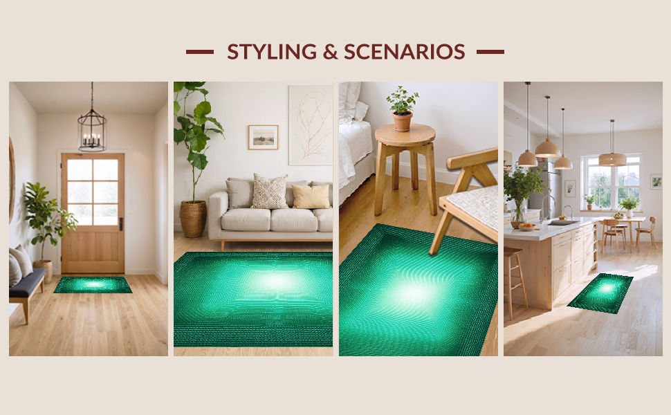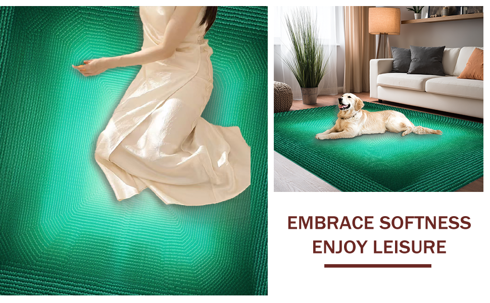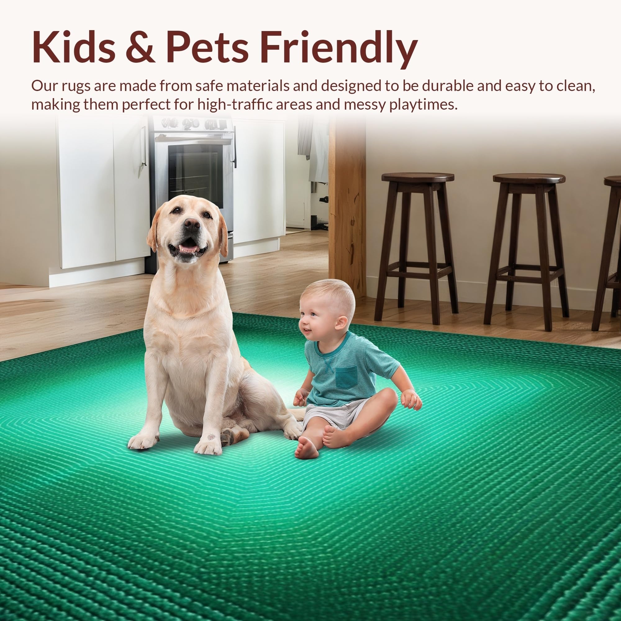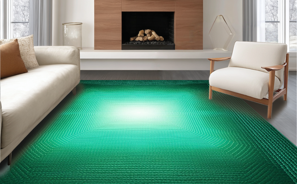 Ultra Soft Area Rug, Non Slip, Stain Resistant, Washable Area Rugs for Living Room, Bedroom, Chic UV Reactive Circular Motif(Green) Overview: