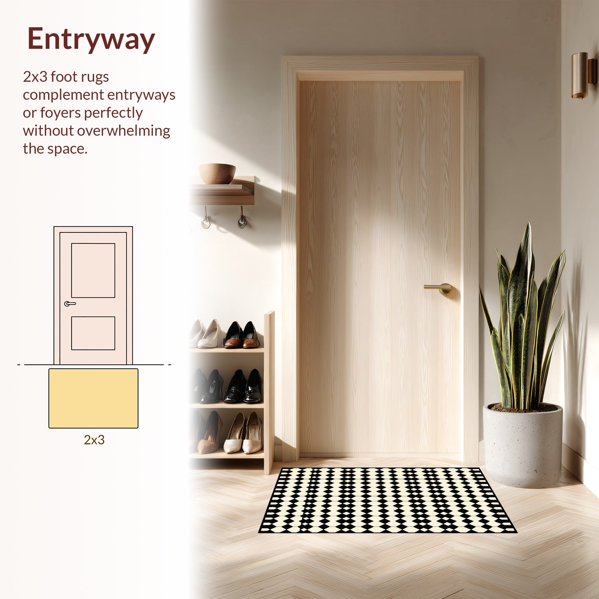 Flatwoven High Traffic Area Rug, Chic Vintage Geometric Design, Non Slip, Stain Resistant, Washable Area Rugs for Living Room, Bedroom (Black) Overview:
