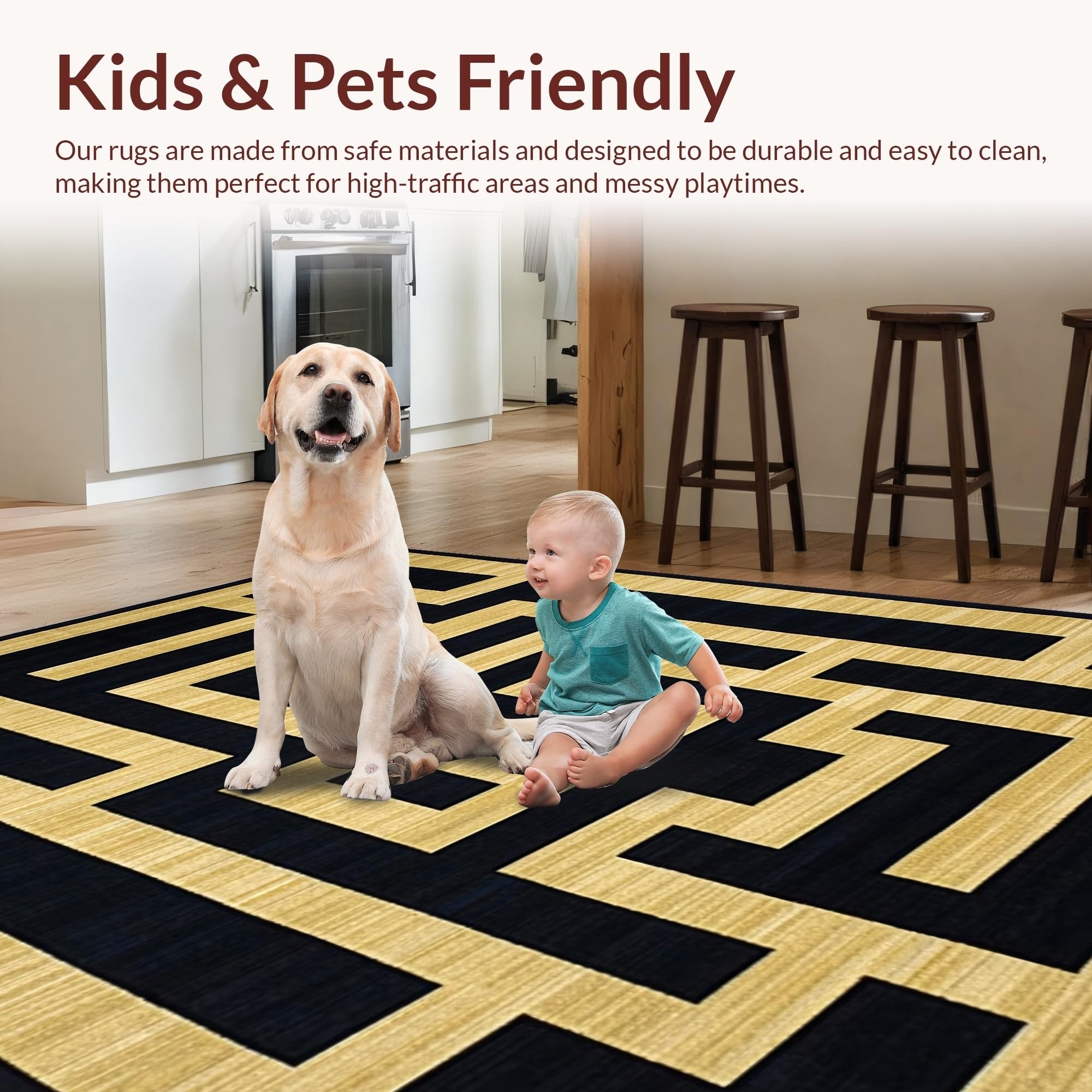 Ultra Soft Area Rug, Non Slip, Stain Resistant, Washable Area Rugs for Living Room, Bedroom, Chic Vintage Gold Pattern(Beige) Overview: