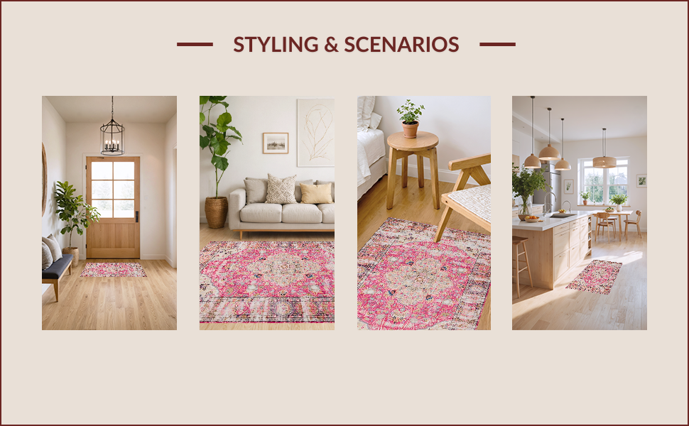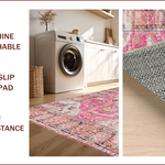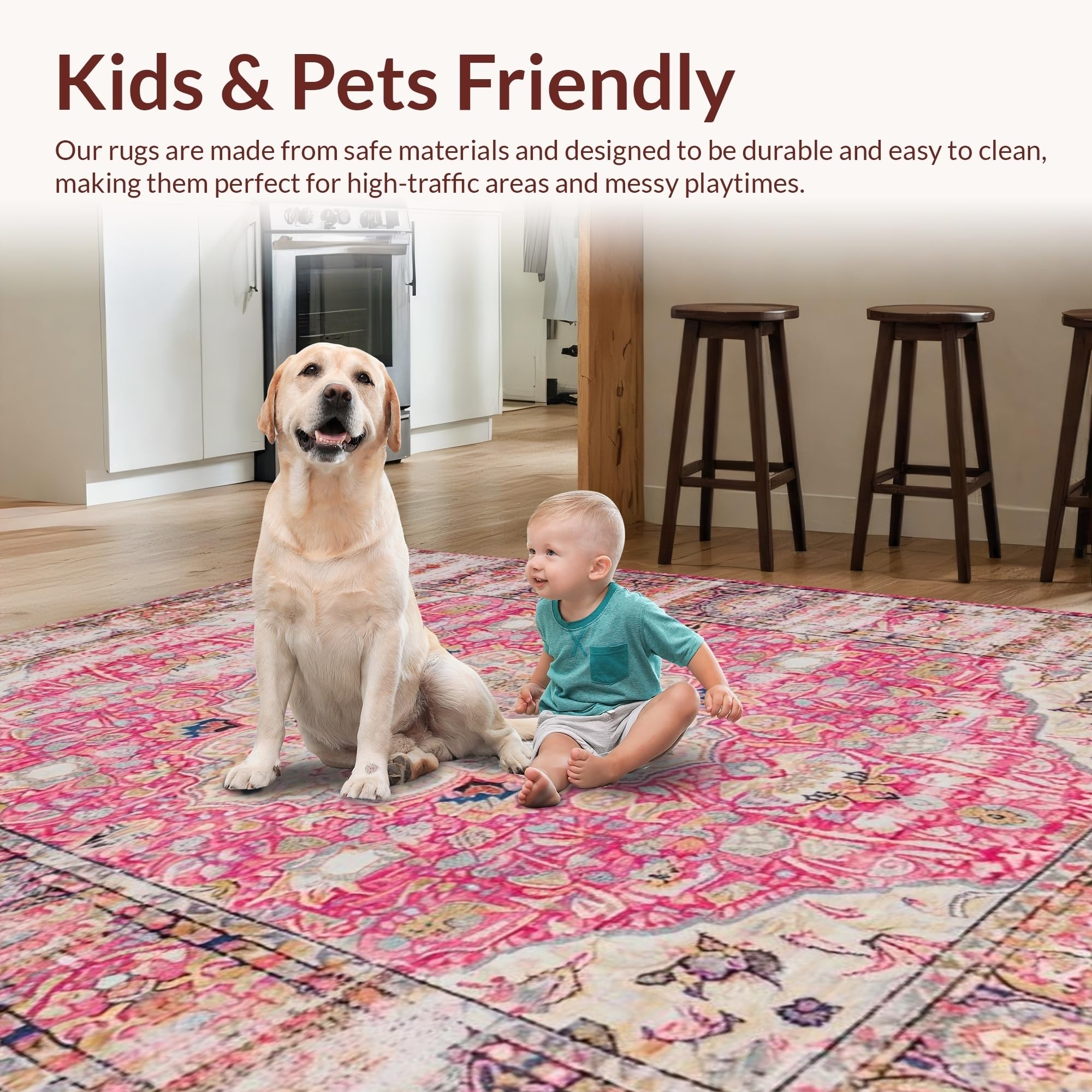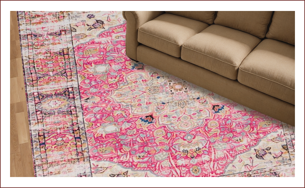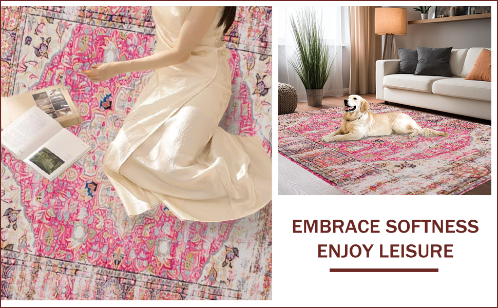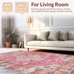 Ultra Soft Area Rug, Non Slip, Stain Resistant, Washable Area Rugs for Living Room, Bedroom, Chic Vintage Ogee Aesthetic(Pink) Overview: