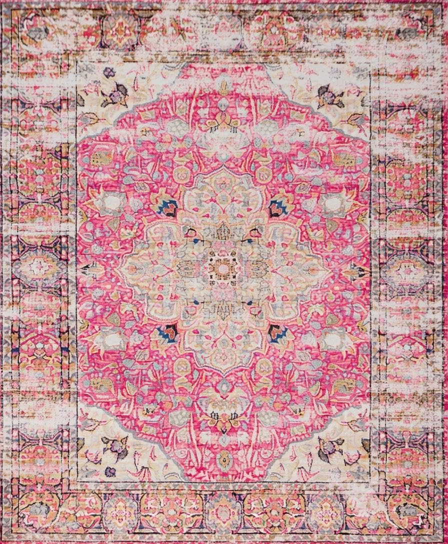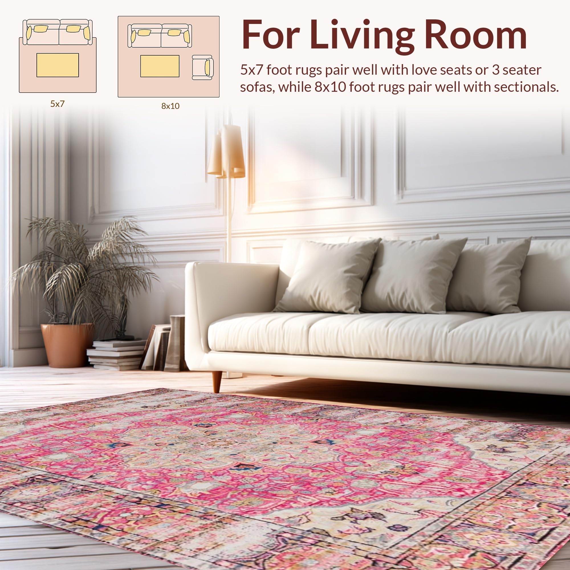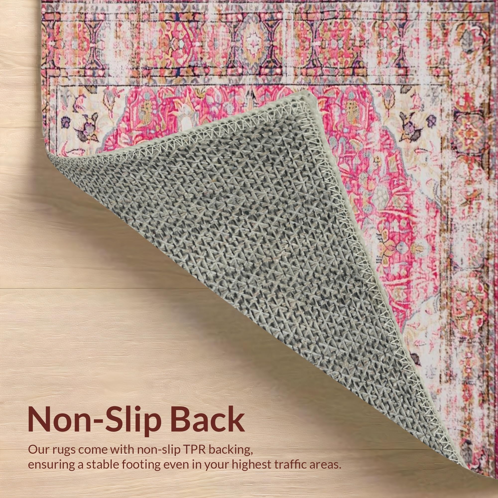 Ultra Soft Area Rug, Non Slip, Stain Resistant, Washable Area Rugs for Living Room, Bedroom, Chic Vintage Ogee Aesthetic(Pink) Overview: