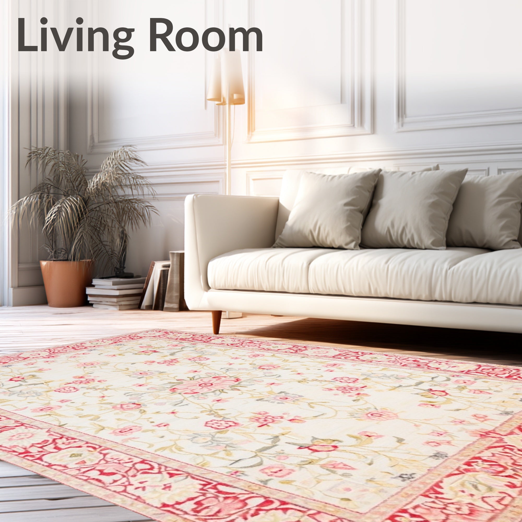Ultra Soft Area Rug, Non Slip, Stain Resistant, Washable Area Rugs for Living Room, Bedroom, Chic Washable Area Rug Featuring Delicate Flower Design(Beige) Overview: