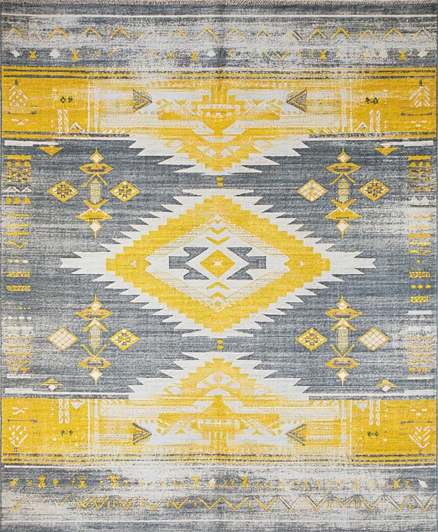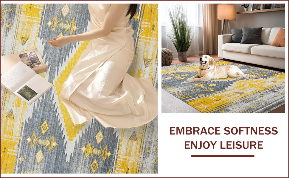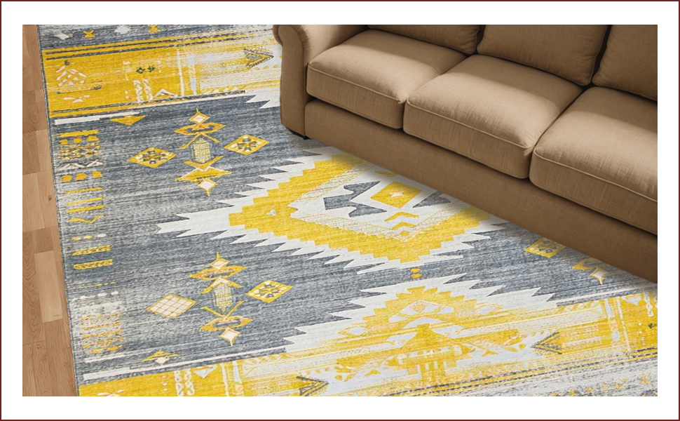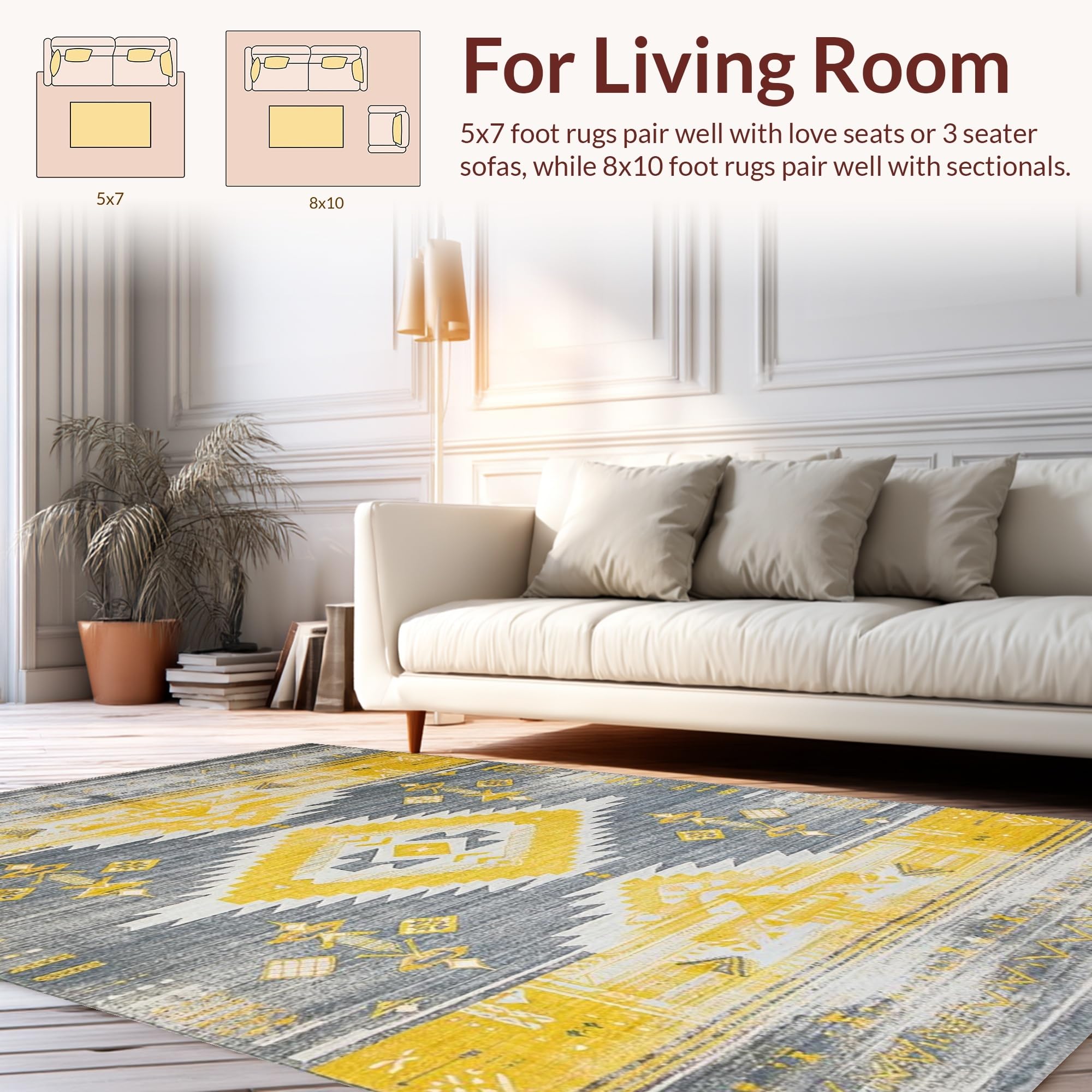 Ultra Soft Area Rug, Non Slip, Stain Resistant, Washable Area Rugs for Living Room, Bedroom, Chic Yellow and Grey Geometric Fusion(Gray) Overview: