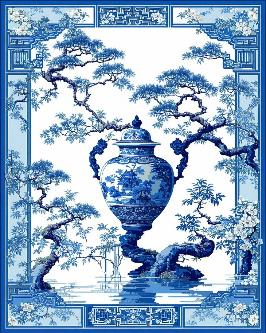 Chinoiserie Floral Elegance Motif(Blue)