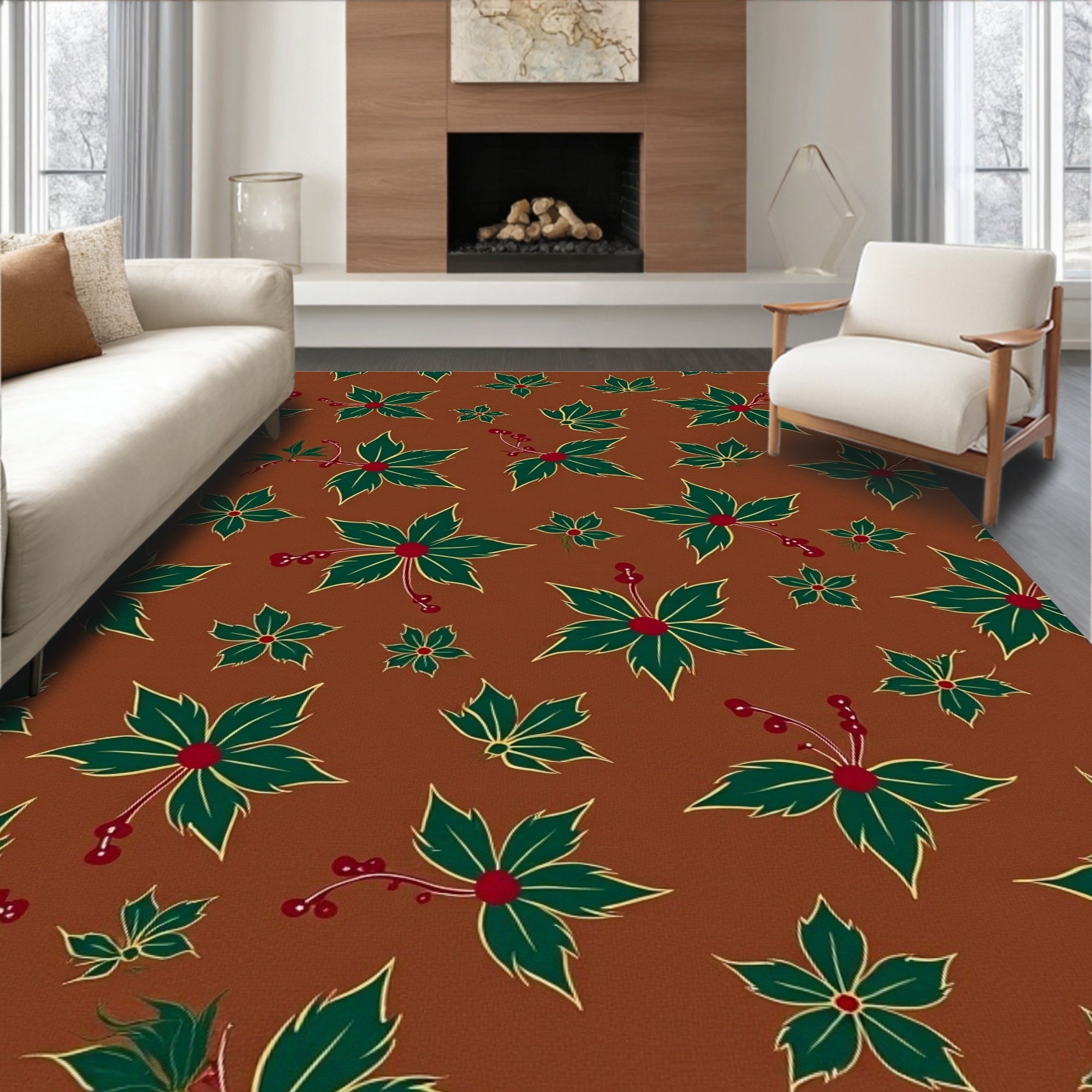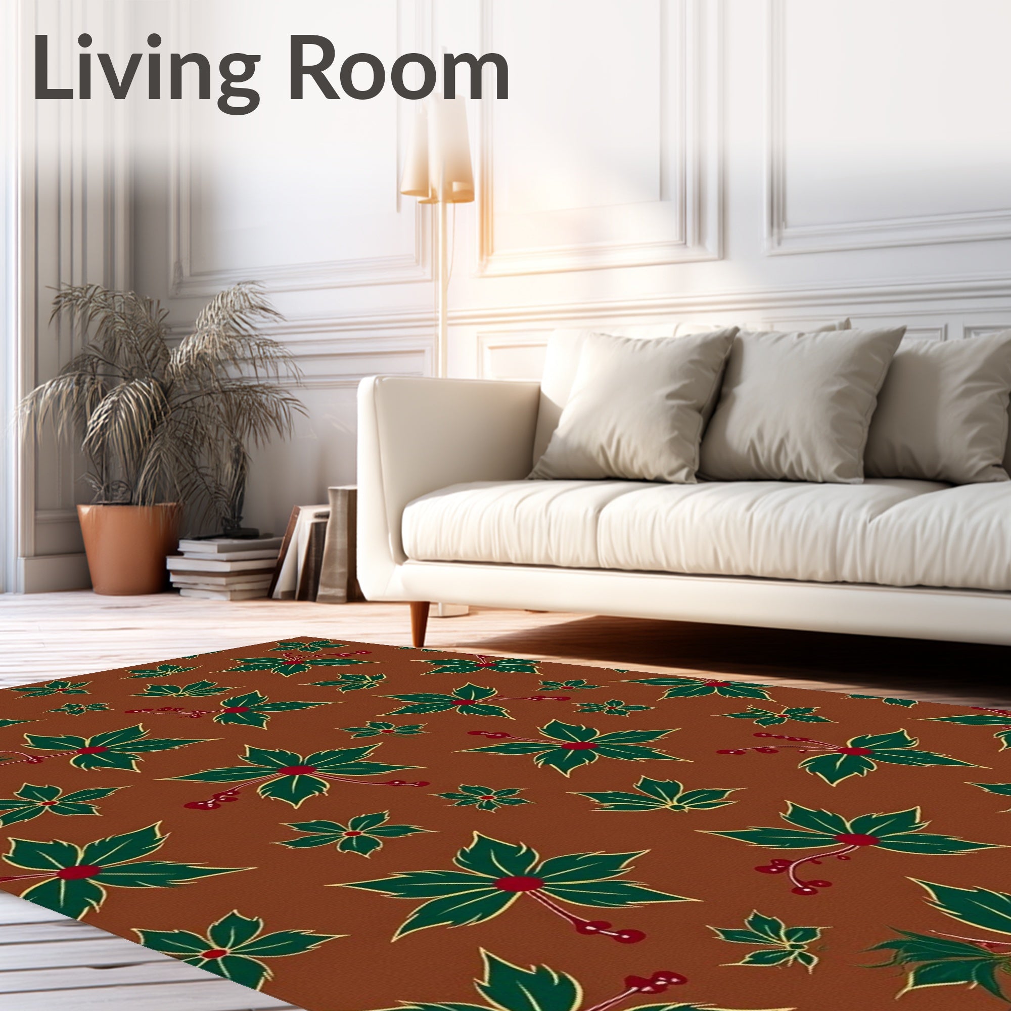 Ultra Soft Area Rug, Non Slip, Stain Resistant, Washable Area Rugs for Living Room, Bedroom, Christmas Holly Leaf Area Festive Botanical Print(Brown) Overview: