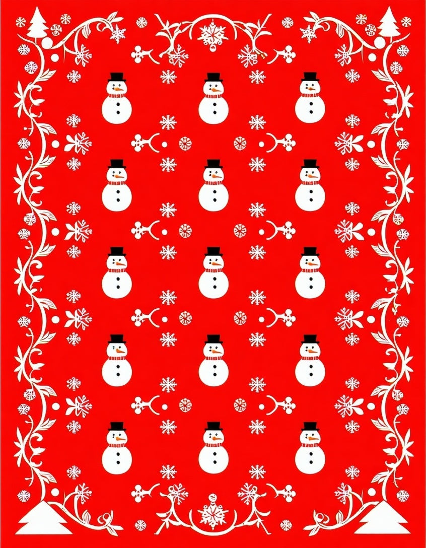 Christmas Spirit Featuring Stylized Snowman and Festive Flourishes(Red)