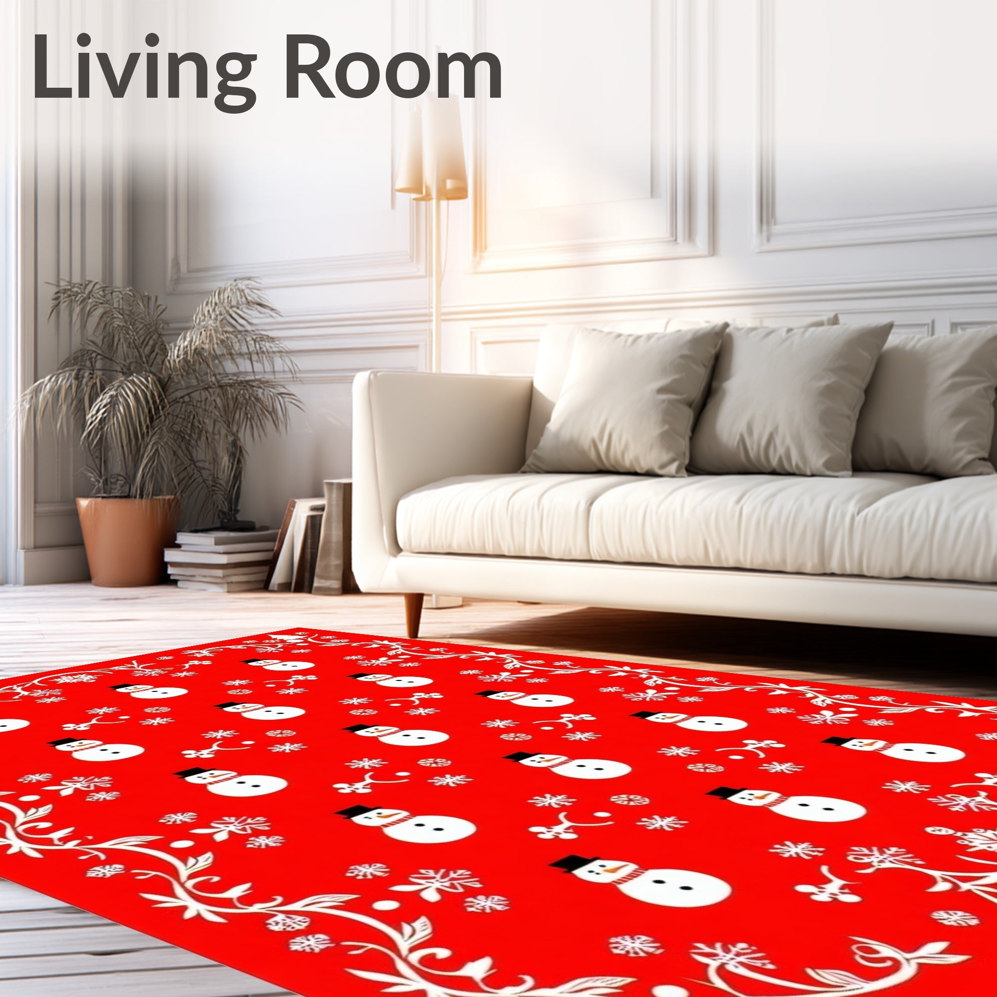 Ultra Soft Area Rug, Non Slip, Stain Resistant, Washable Area Rugs for Living Room, Bedroom, Christmas Spirit Featuring Stylized Snowman and Festive Flourishes(Red) Overview: