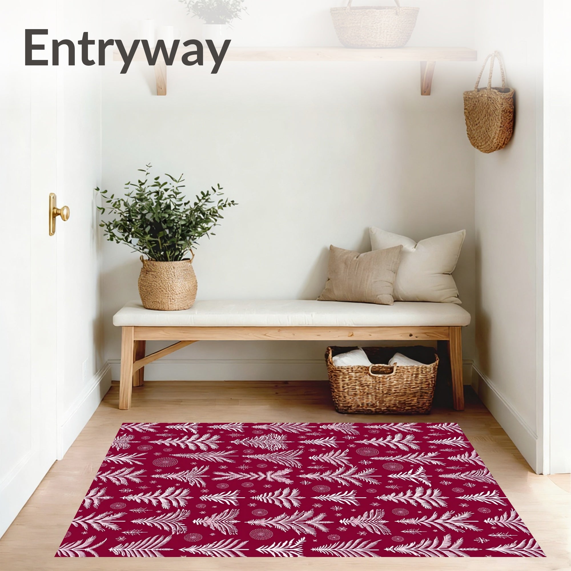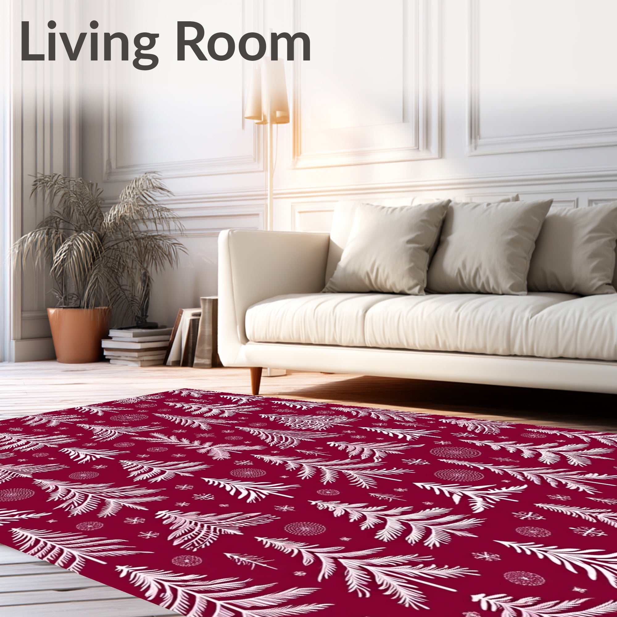 Ultra Soft Area Rug, Non Slip, Stain Resistant, Washable Area Rugs for Living Room, Bedroom, Christmas Tree Branch Pine Needle Festive(Red) Overview:
