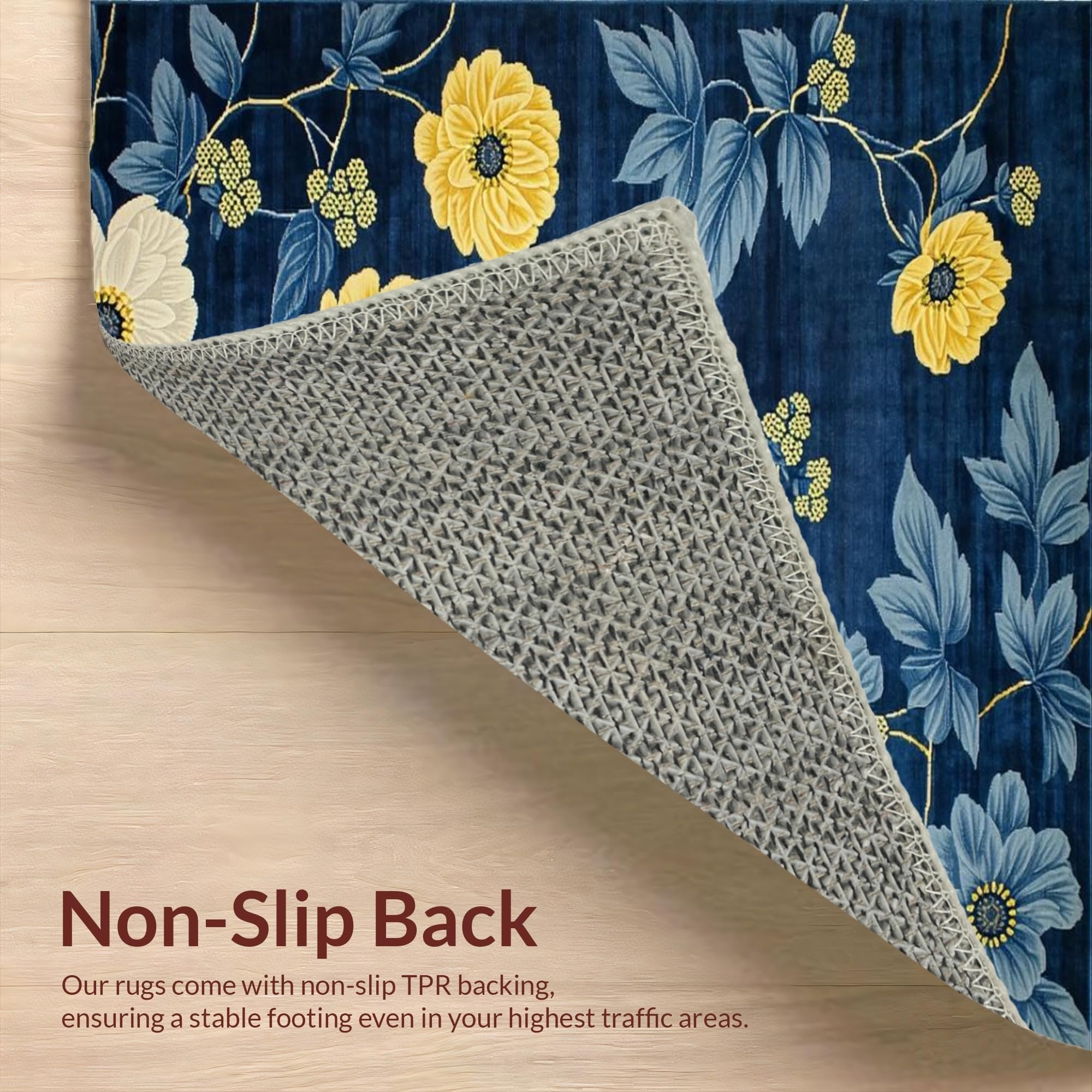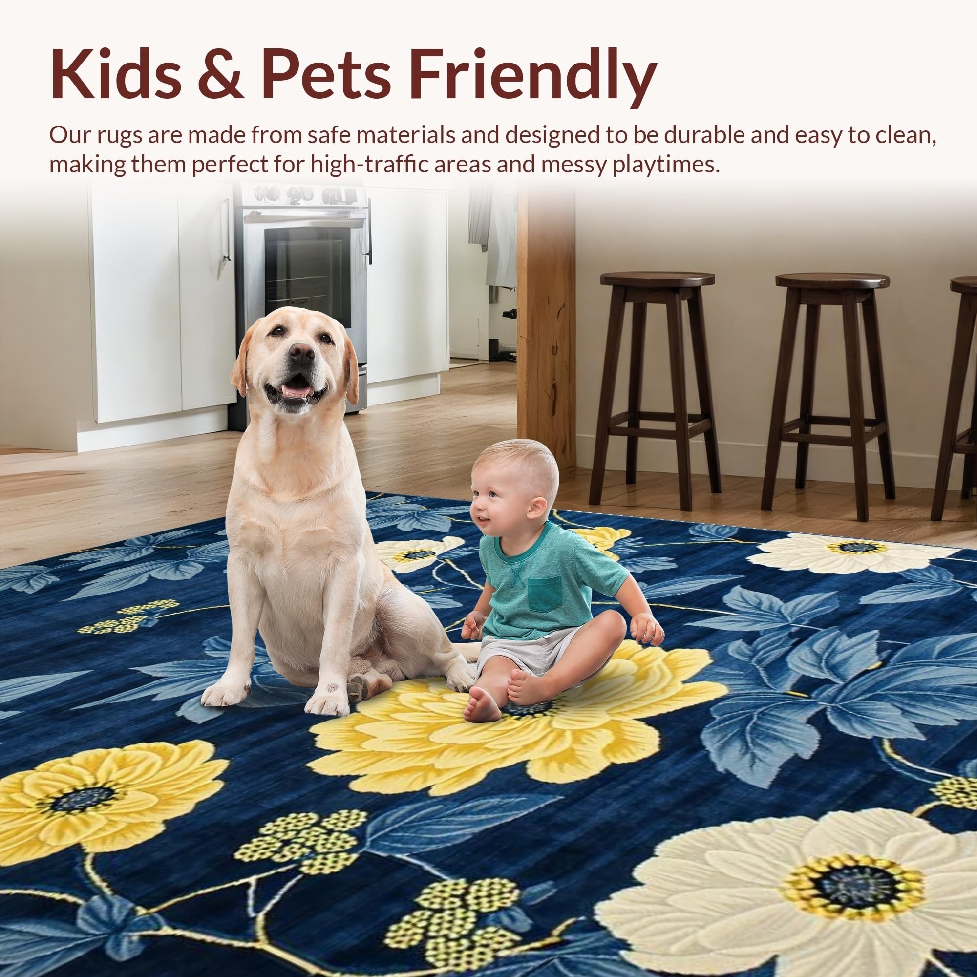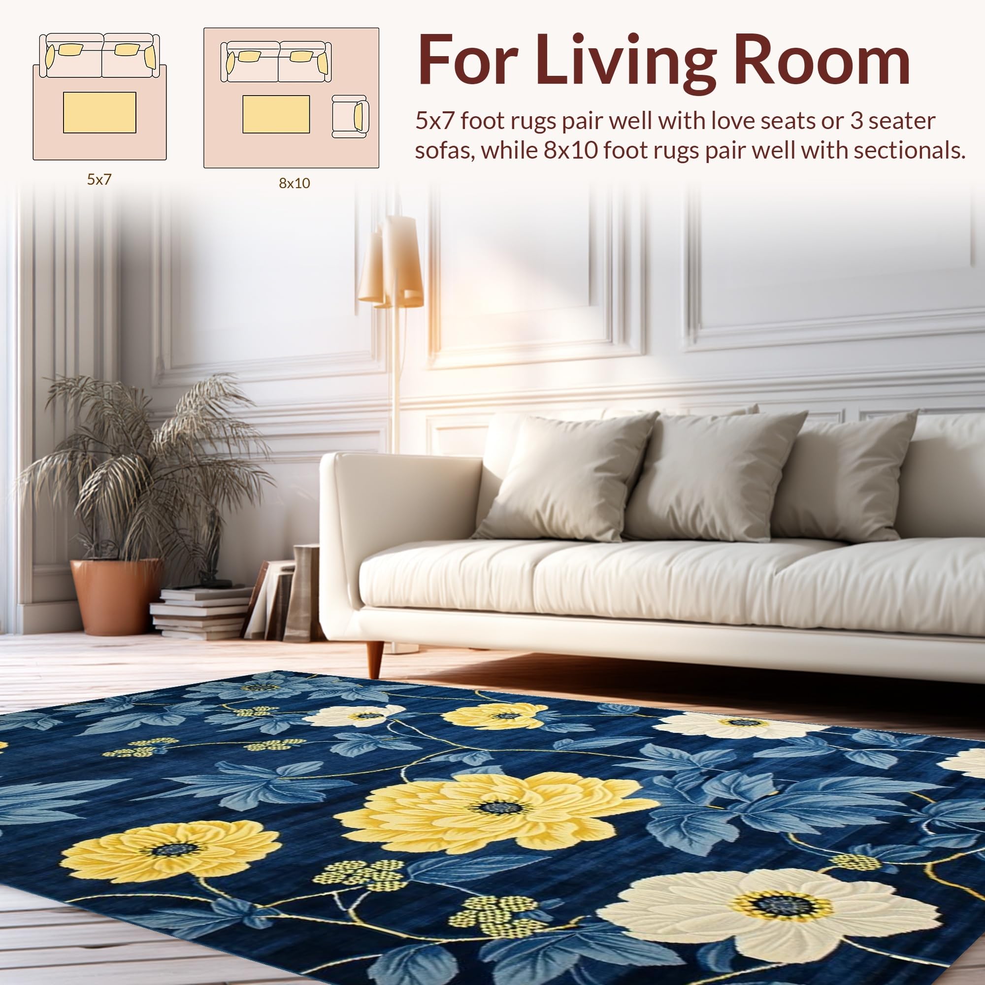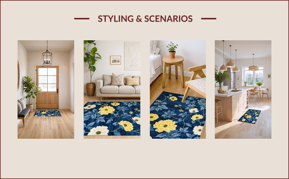 Ultra Soft Area Rug, Non Slip, Stain Resistant, Washable Area Rugs for Living Room, Bedroom, Chrysanthemum Floral Elegance(Blue) Overview: