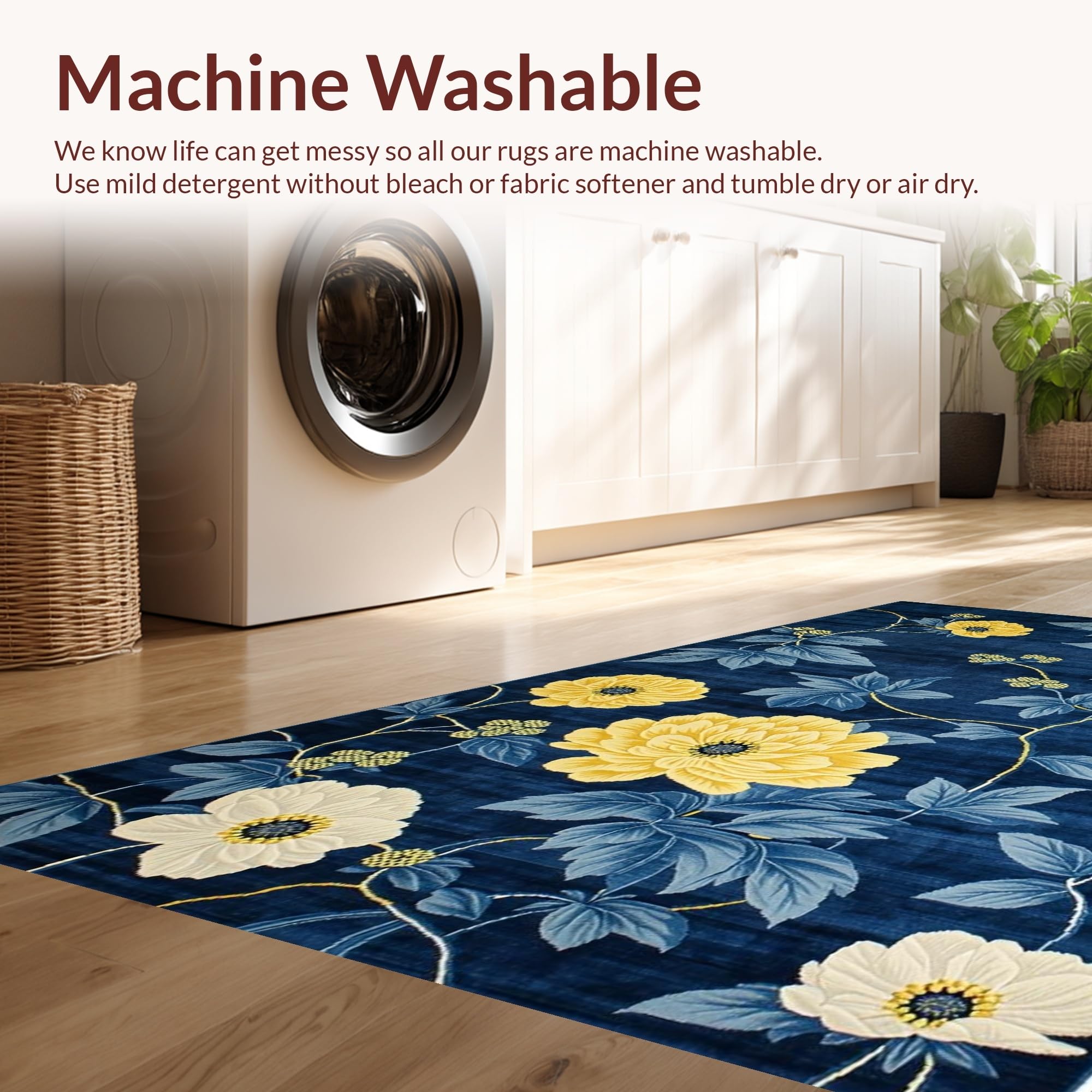 - Machine Washable: Our rugs can be easily thrown in the wash machine.