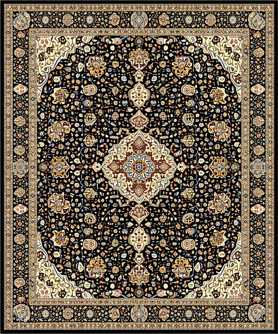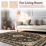 Flatwoven High Traffic Area Rug, Circular Medallion Elegant Geometric, Non Slip, Stain Resistant, Washable Area Rugs for Living Room, Bedroom (Black) Overview: