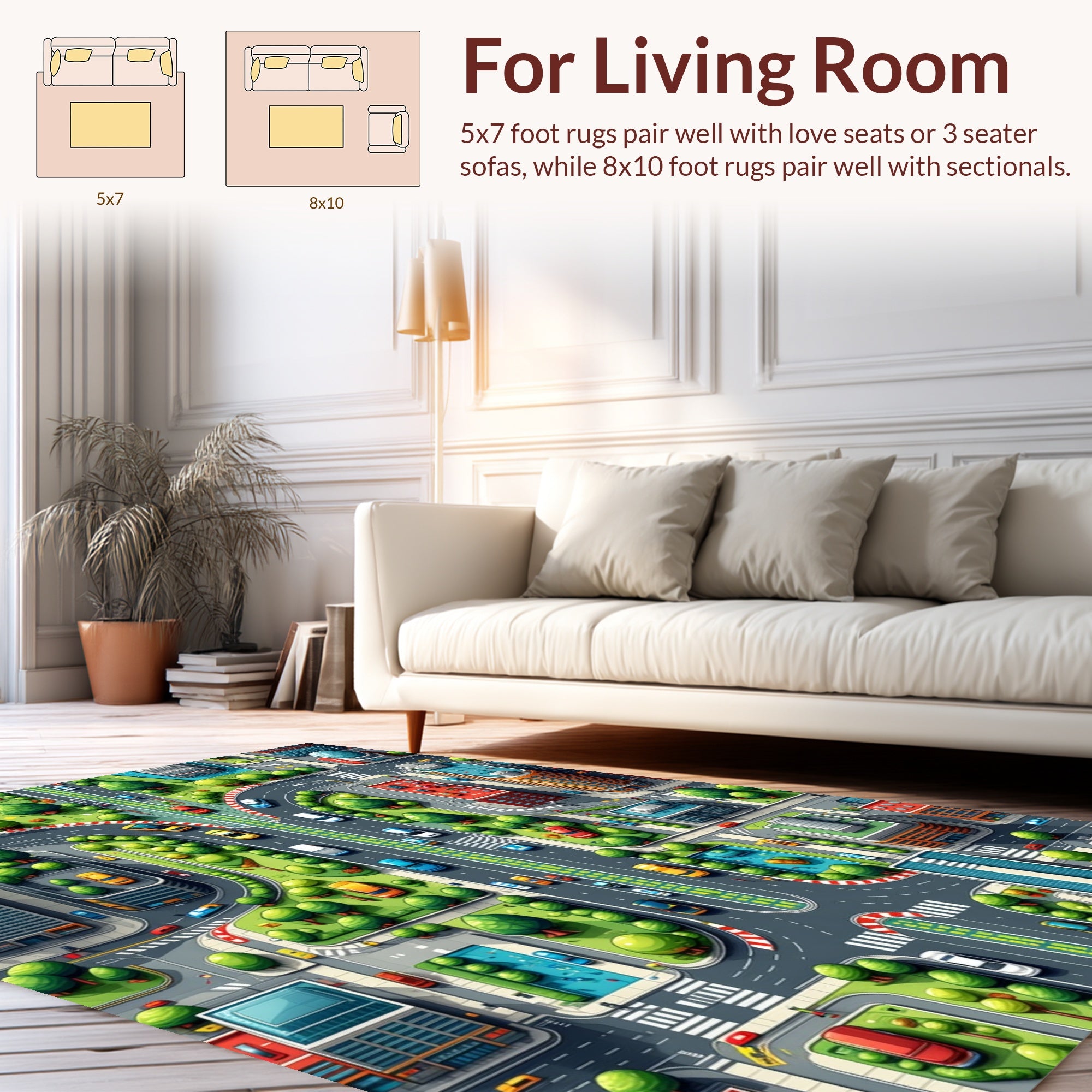 Flatwoven High Traffic Area Rug, City Road Traffic Play, Non Slip, Stain Resistant, Washable Area Rugs for Living Room, Bedroom (Blue) Overview: