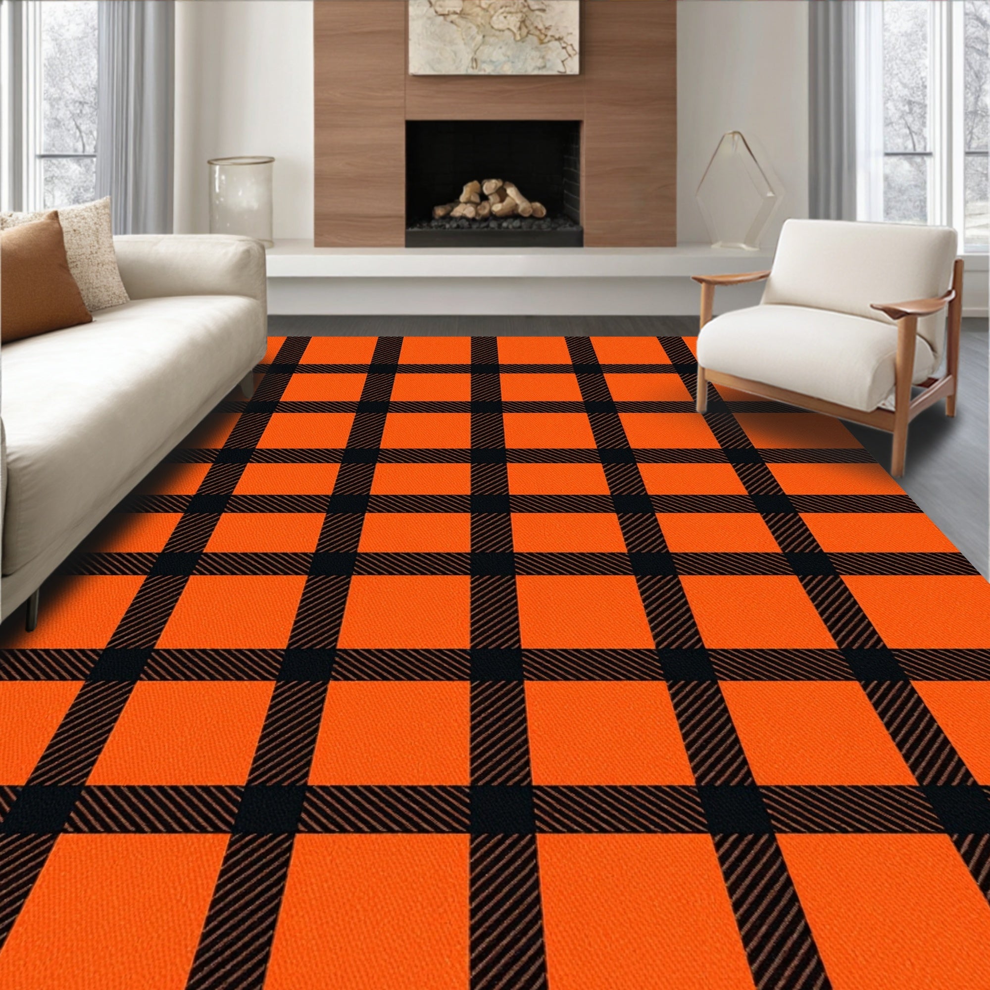 Ultra Soft Area Rug, Non Slip, Stain Resistant, Washable Area Rugs for Living Room, Bedroom, Classic Buffalo Plaid Revival with Crisp Contrasting Stripes(Orange) Overview: