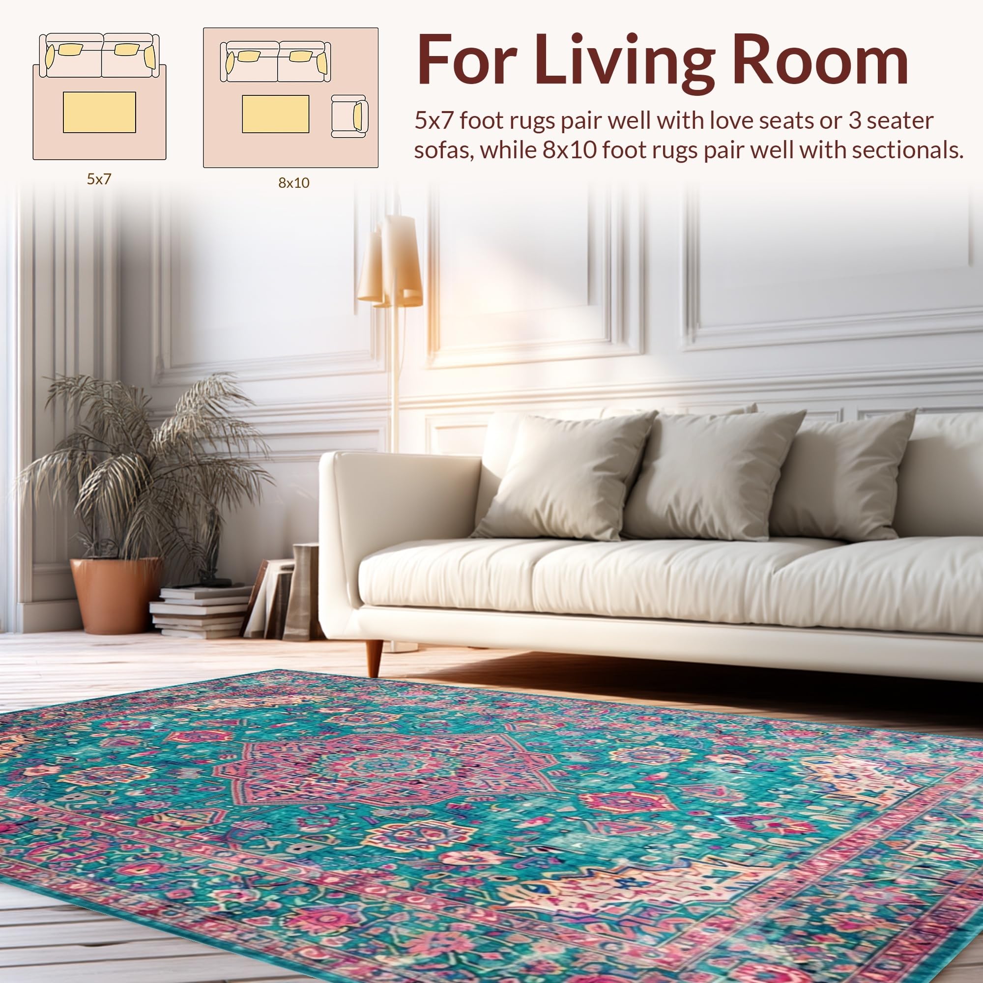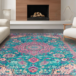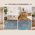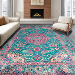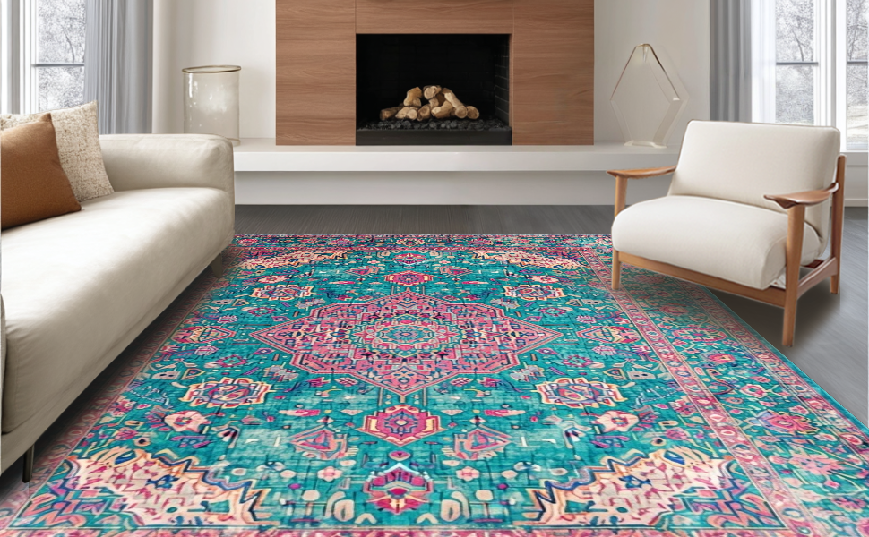 Ultra Soft Area Rug, Non Slip, Stain Resistant, Washable Area Rugs for Living Room, Bedroom, Classic Distressed Trellis Feature(Blue) Overview: