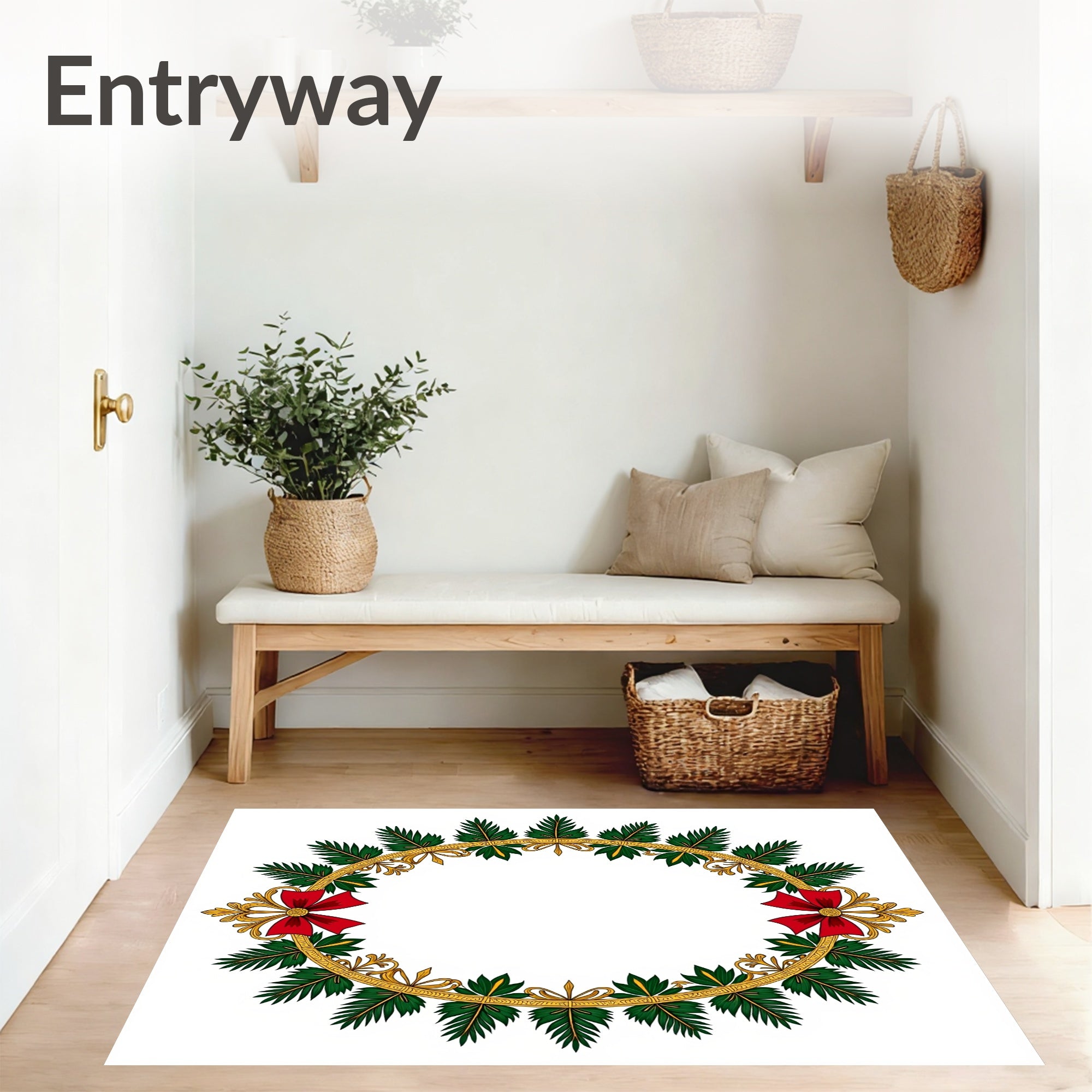 Ultra Soft Area Rug, Non Slip, Stain Resistant, Washable Area Rugs for Living Room, Bedroom, Classic Evergreen Motif with Baroque Filigree Accents(Green) Overview:
