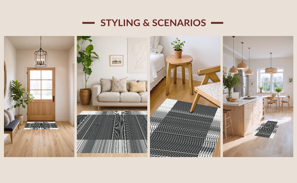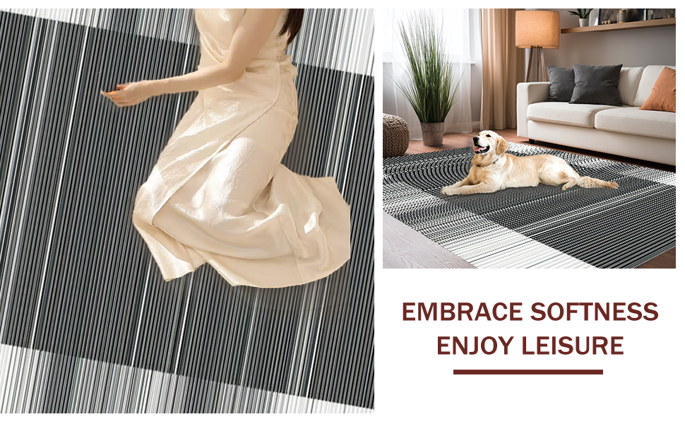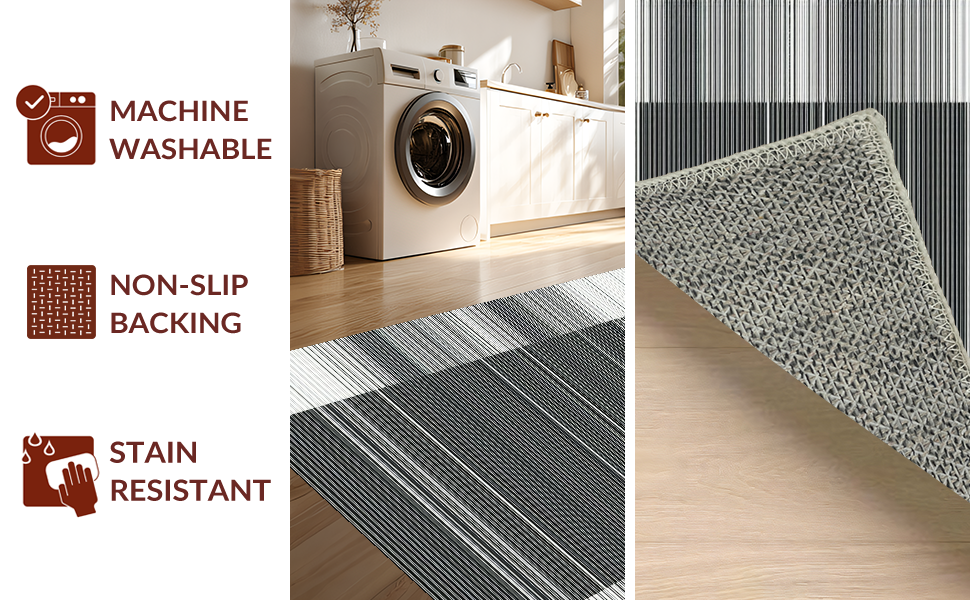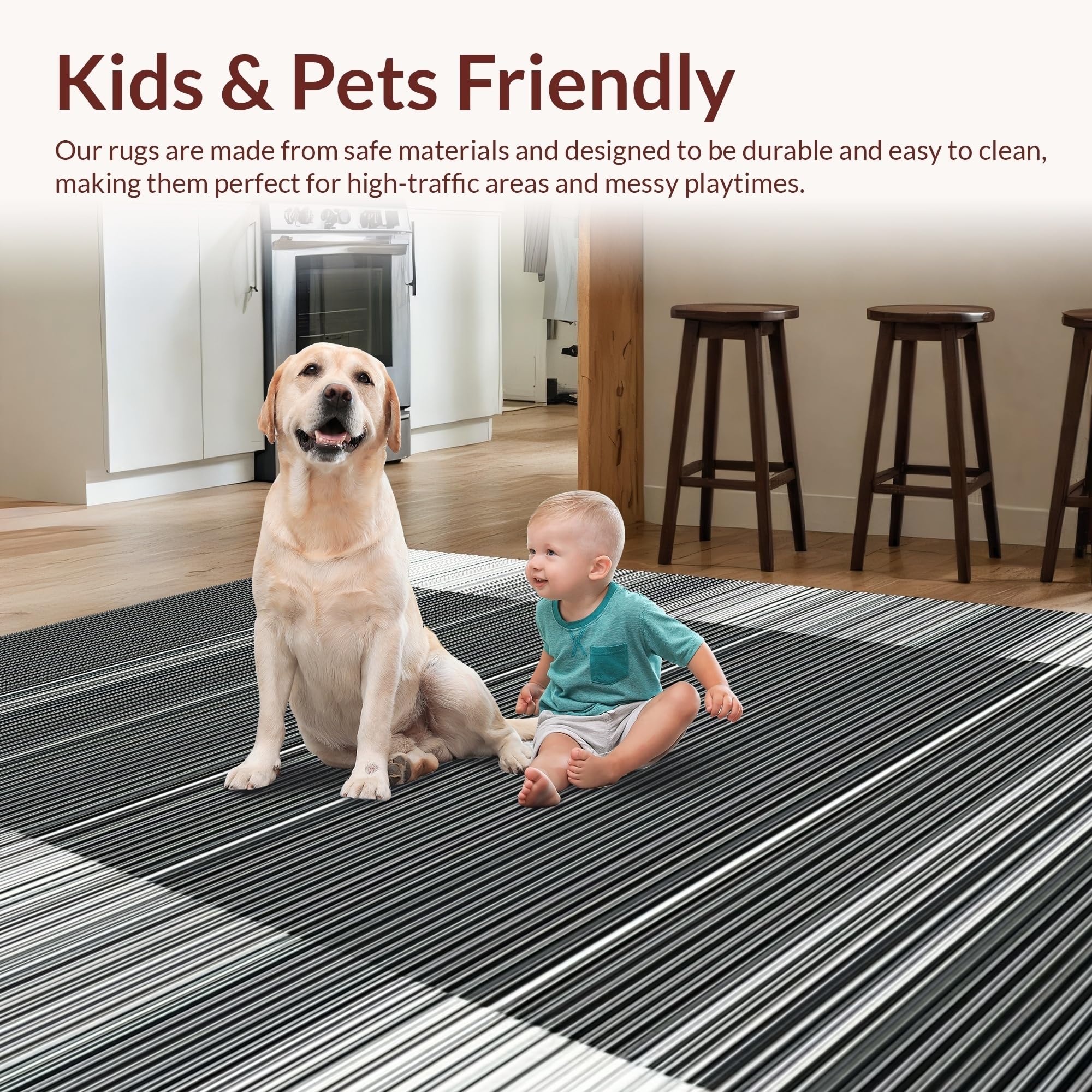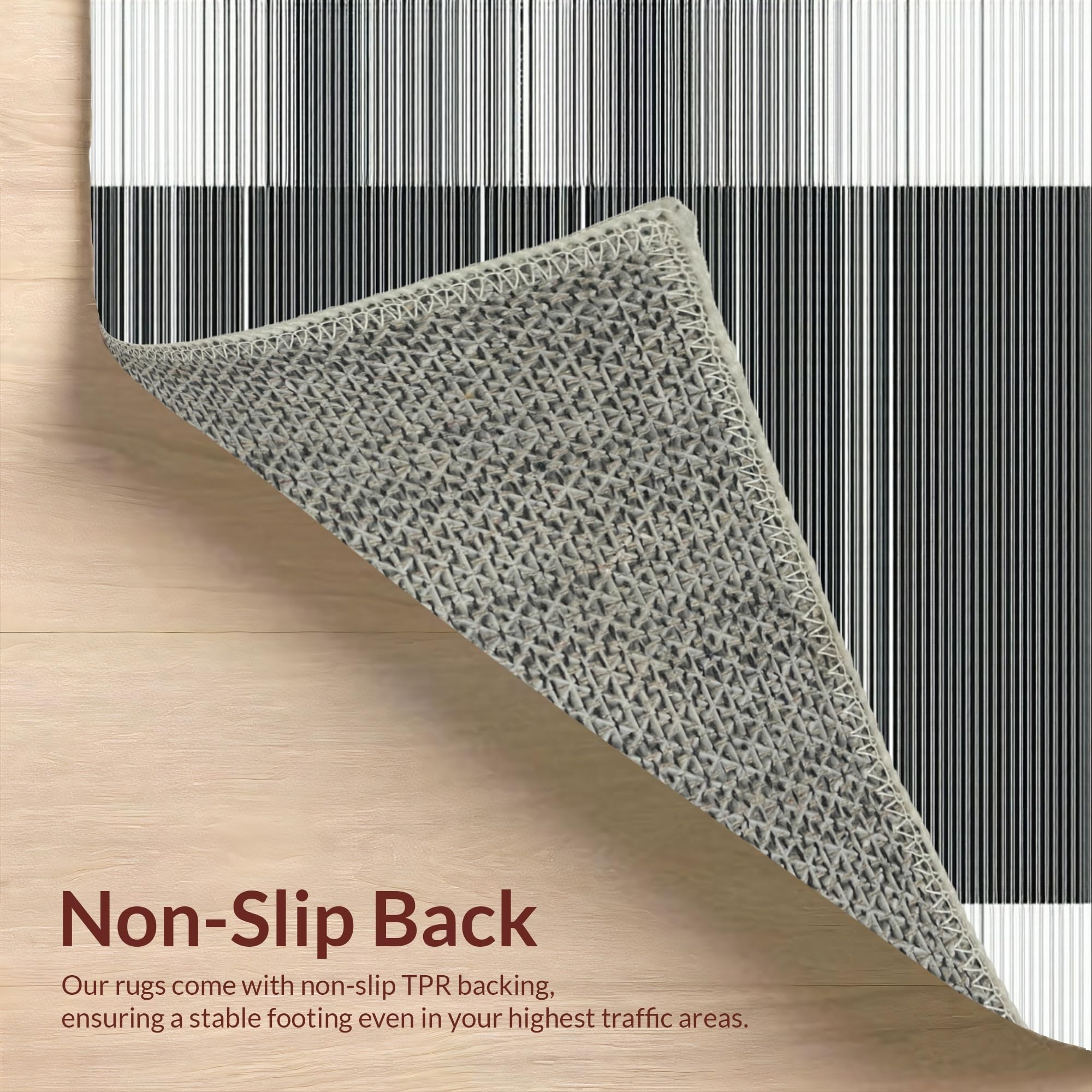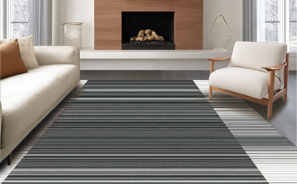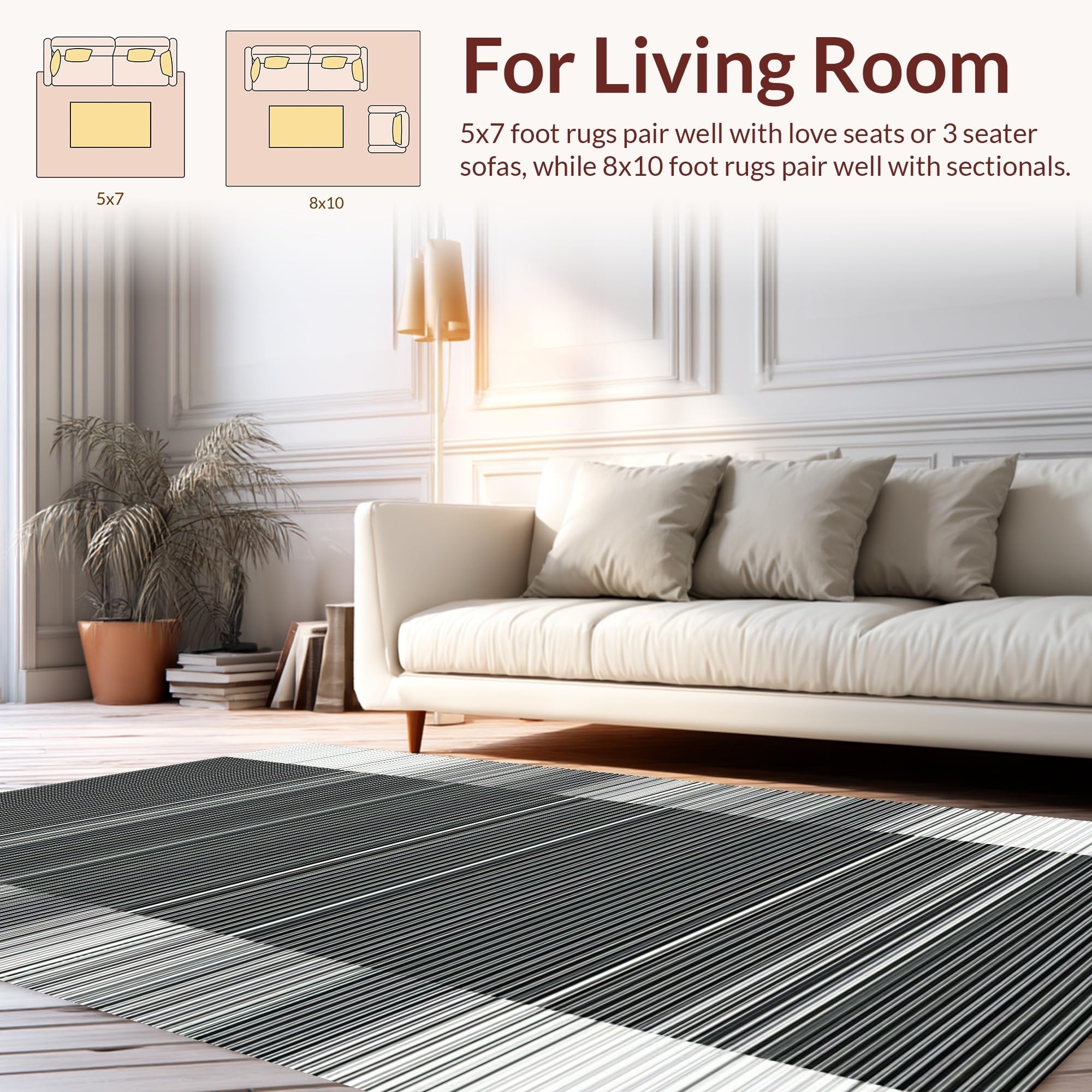 Ultra Soft Area Rug, Non Slip, Stain Resistant, Washable Area Rugs for Living Room, Bedroom, Classic Farmhouse Striped Elegance(Black) Overview: