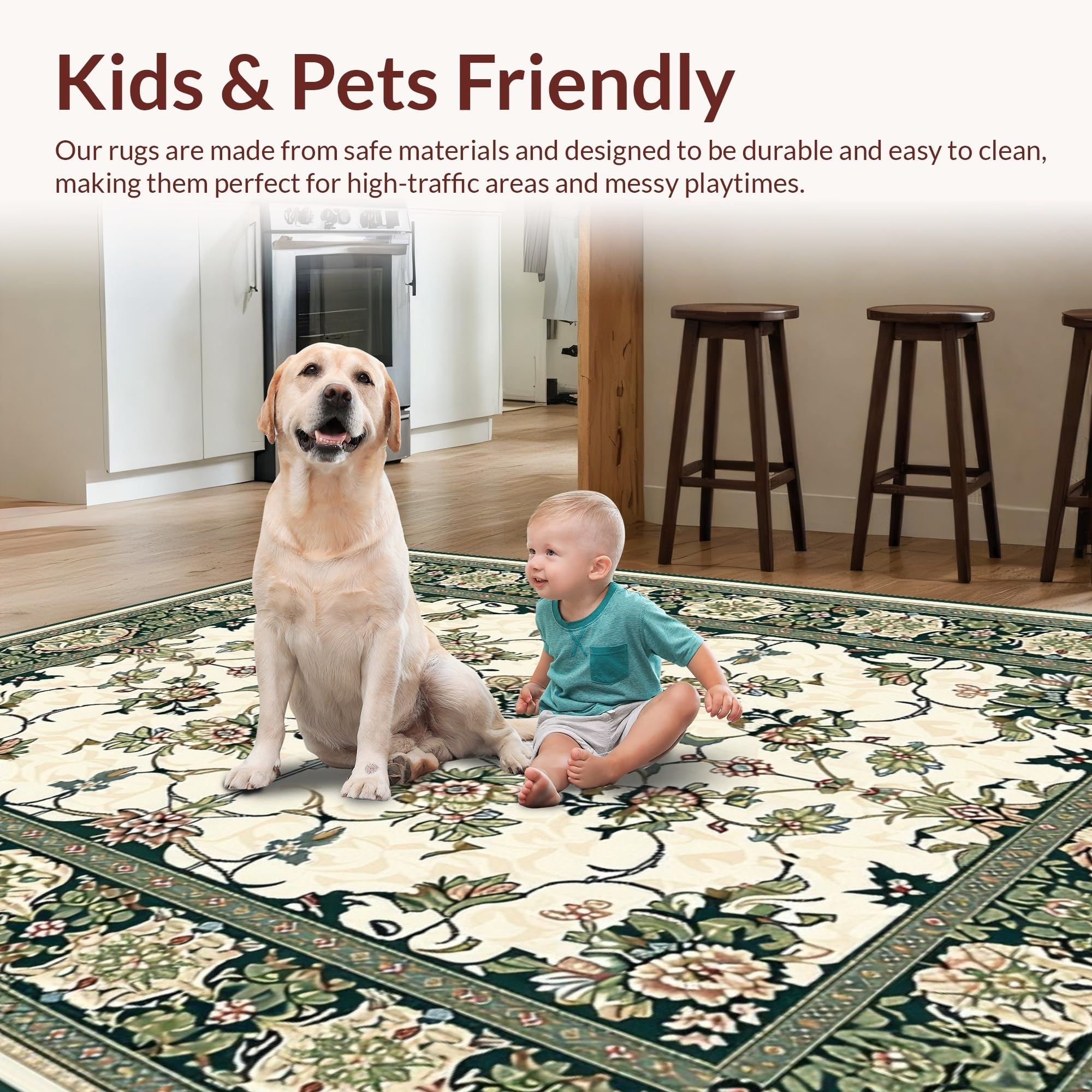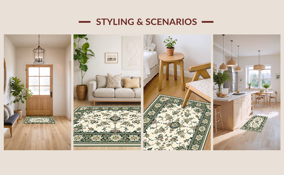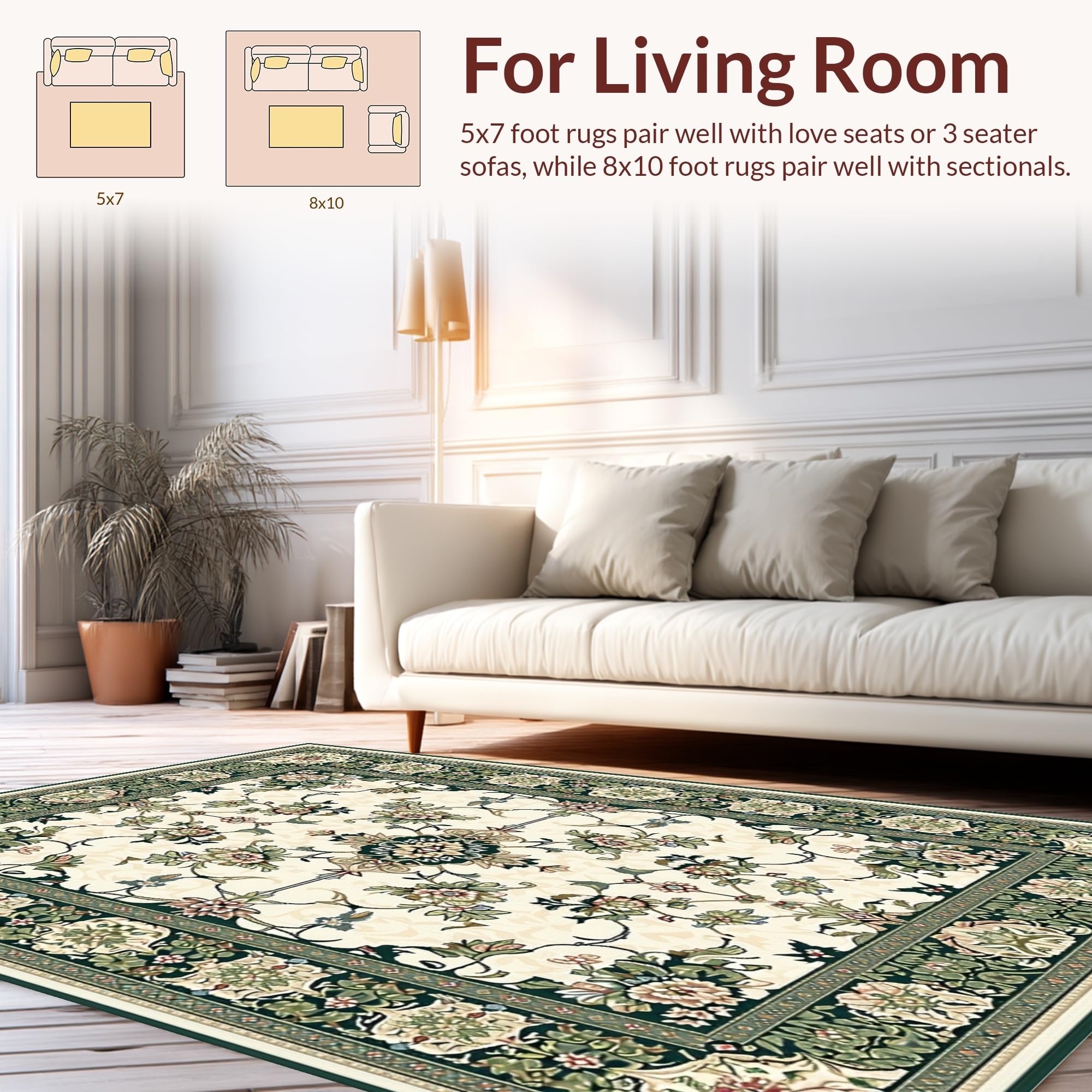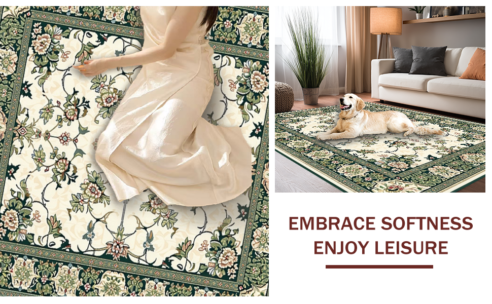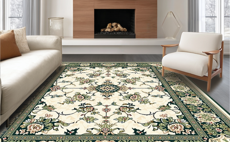 Ultra Soft Area Rug, Non Slip, Stain Resistant, Washable Area Rugs for Living Room, Bedroom, Classic Floral Tiled Arrangement(Ivory) Overview: