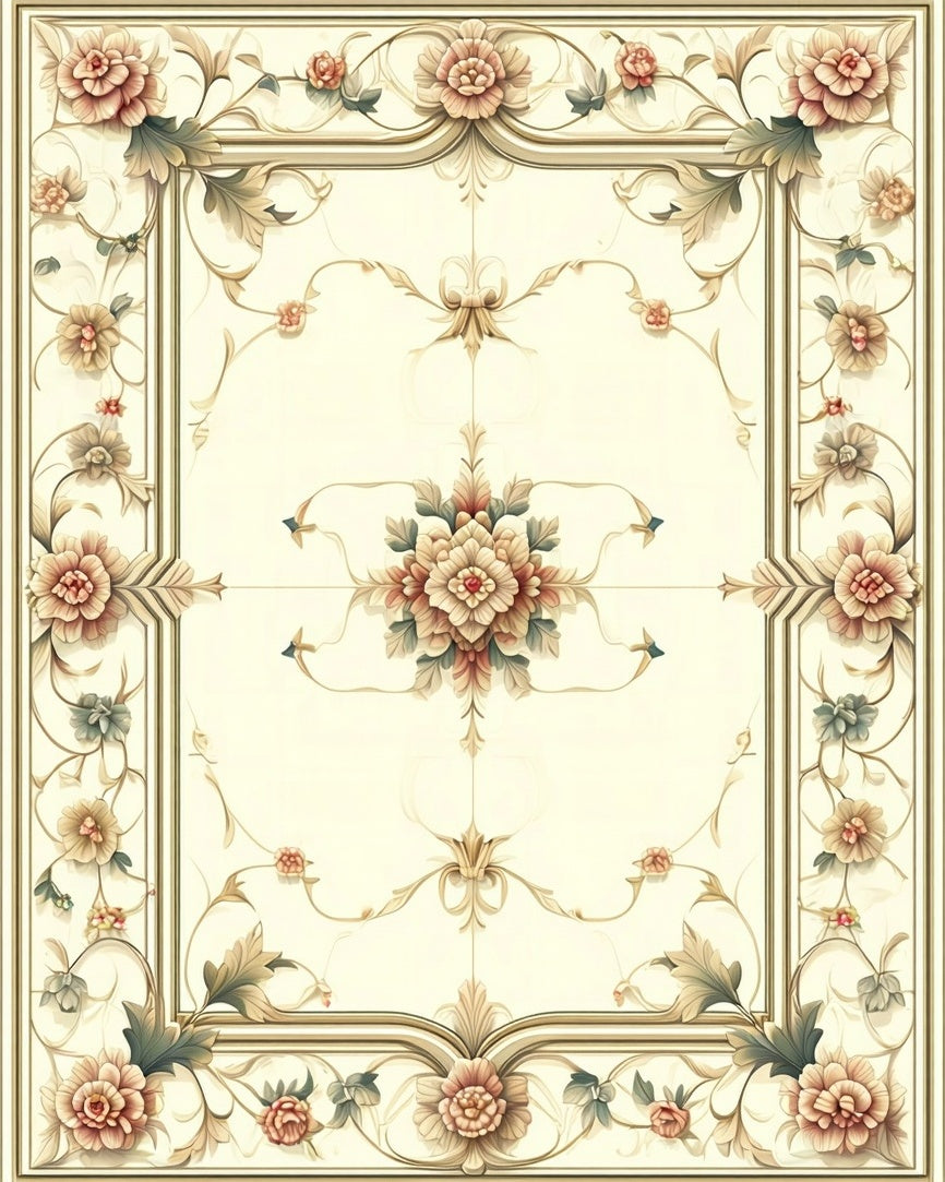Classic Medallion with Flourishing Vines and Ornate Scrollwork Motifs(Beige)
