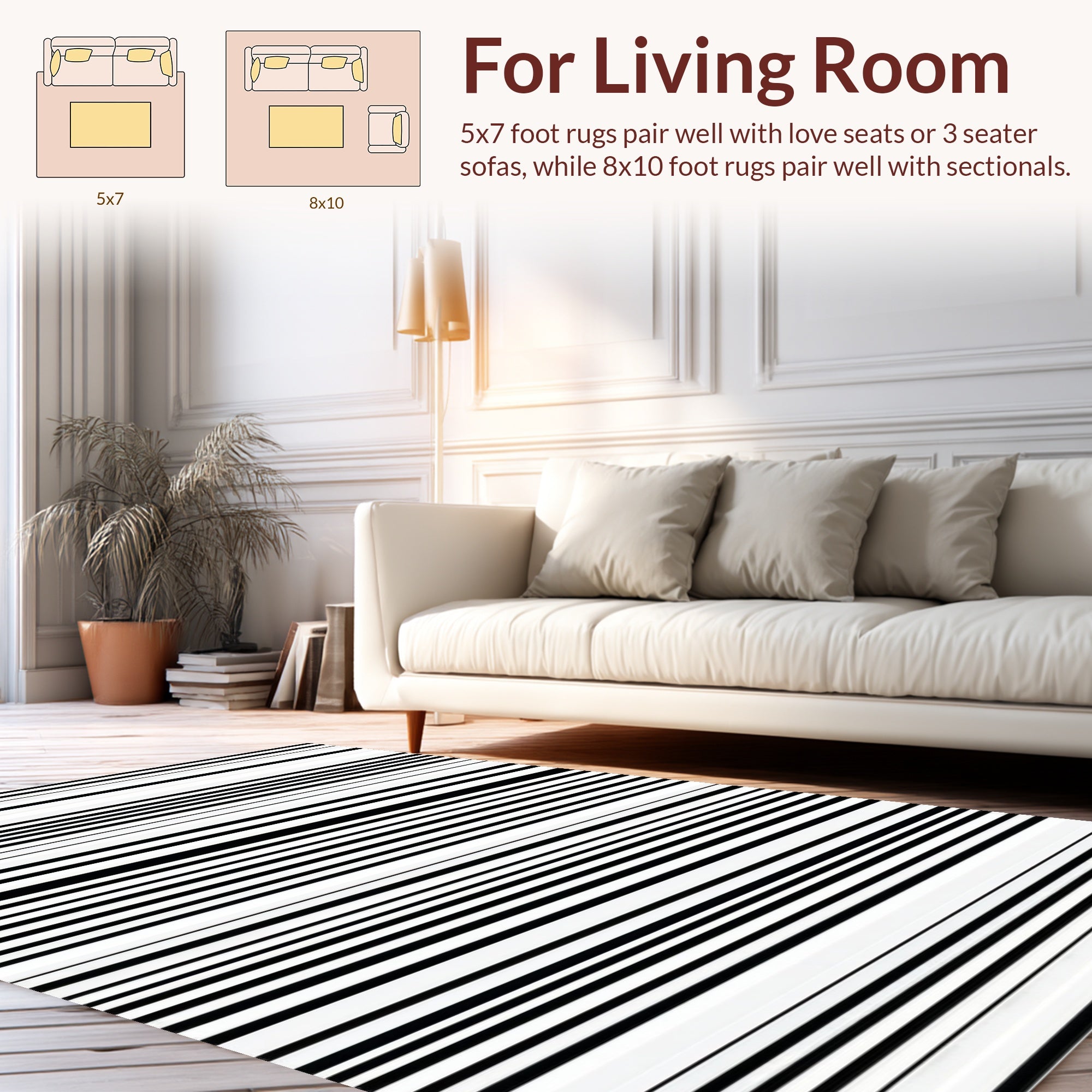 Flatwoven High Traffic Area Rug, Classic Monochrome Striped with Reversible Farmhouse Design, Non Slip, Stain Resistant, Washable Area Rugs for Living Room, Bedroom (Black) Overview: