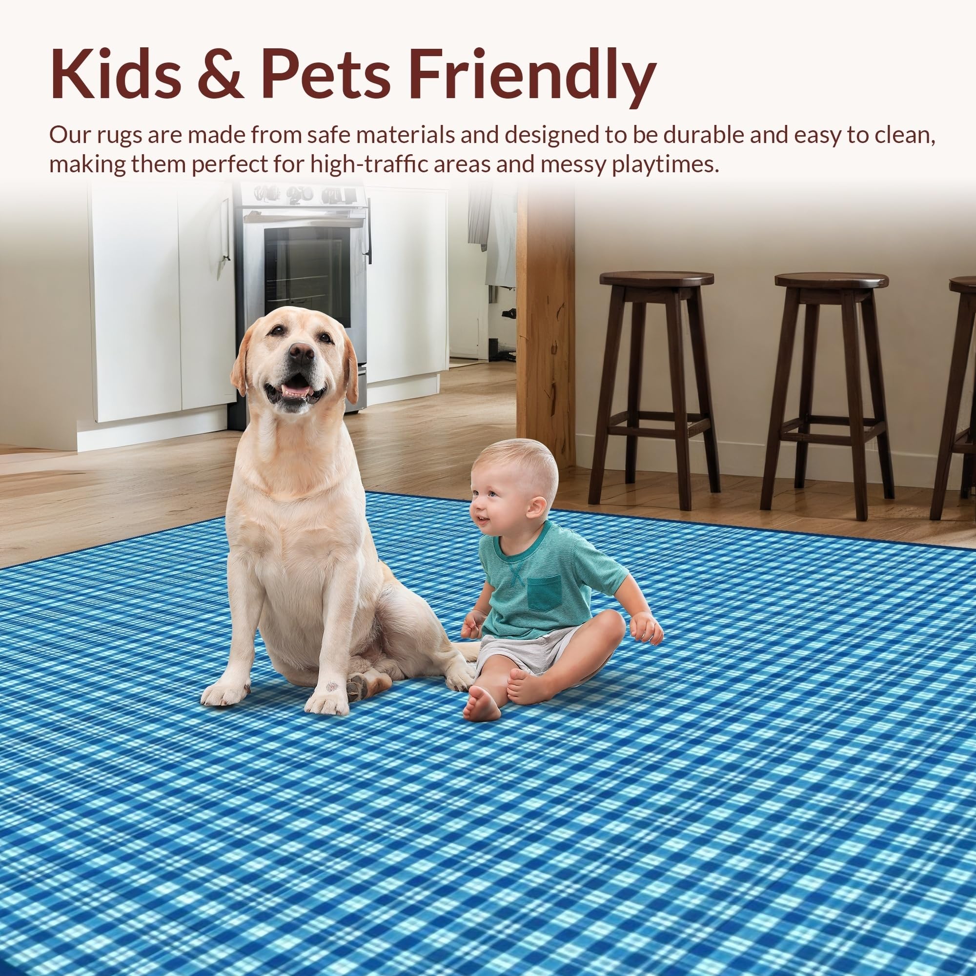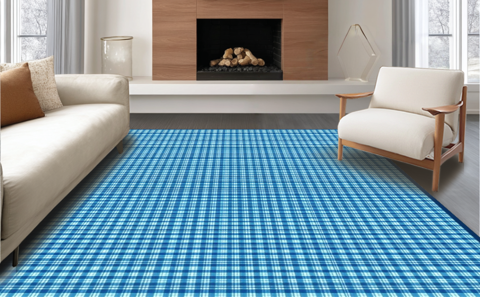 Ultra Soft Area Rug, Non Slip, Stain Resistant, Washable Area Rugs for Living Room, Bedroom, Classic Neutral Checkerboard Style(Blue) Overview: