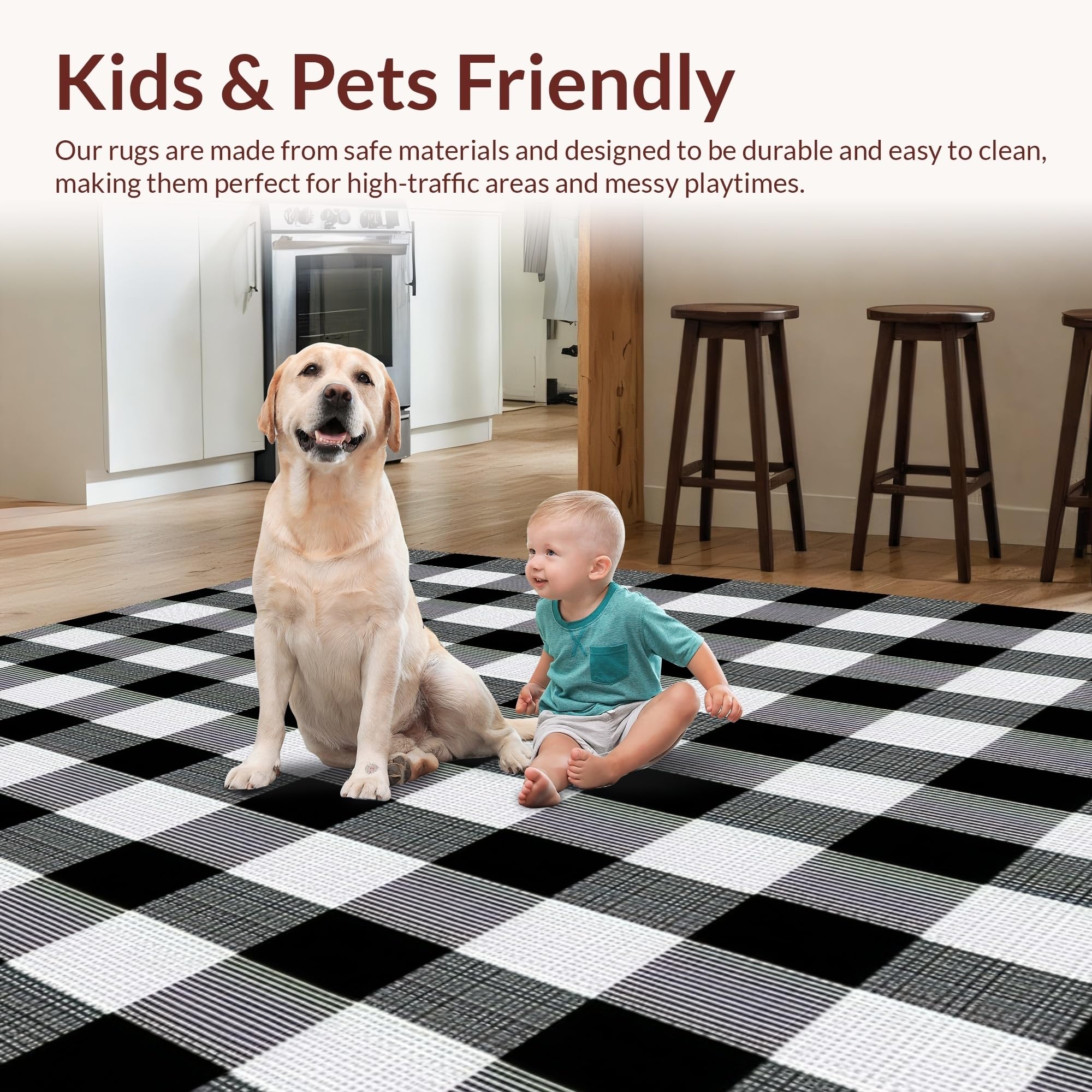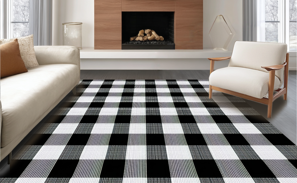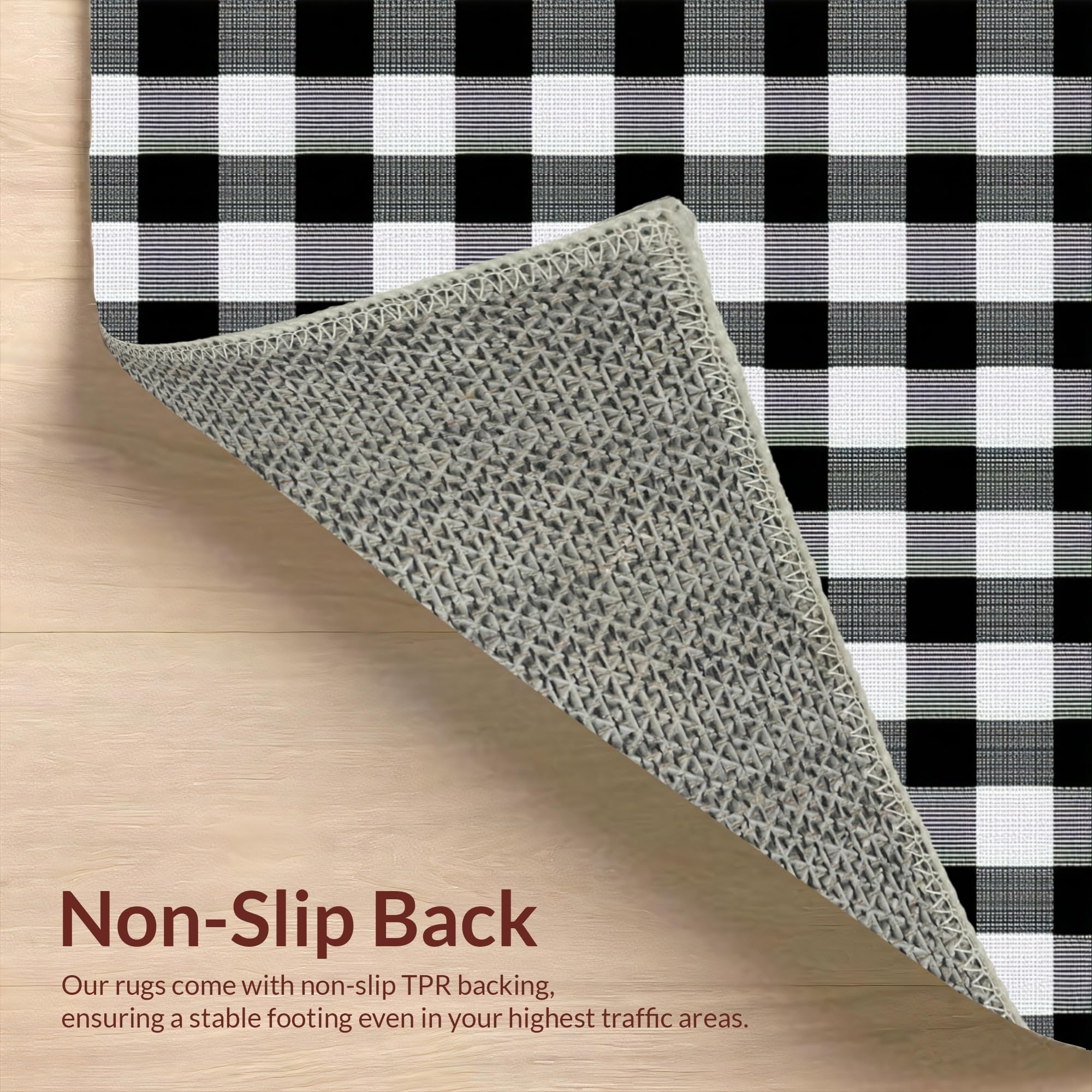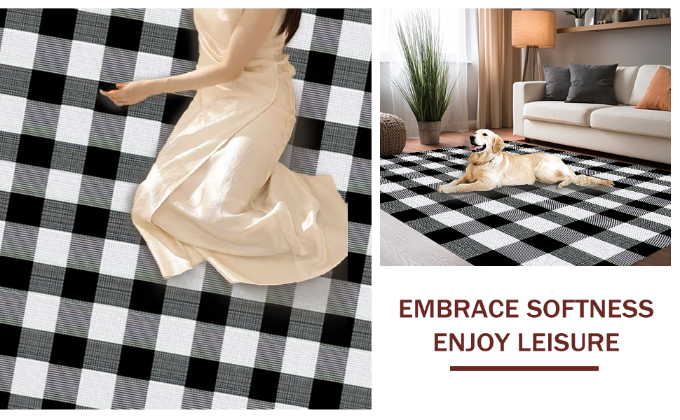Ultra Soft Area Rug, Non Slip, Stain Resistant, Washable Area Rugs for Living Room, Bedroom, Classic Outdoor Plaid Charm(Black) Overview: