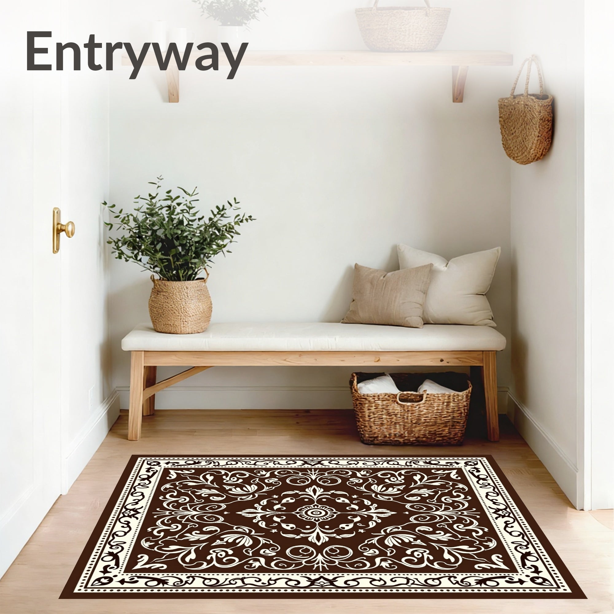 Classic Paisley Swirl Anti Skid Accent with Rubber Backing(Brown)