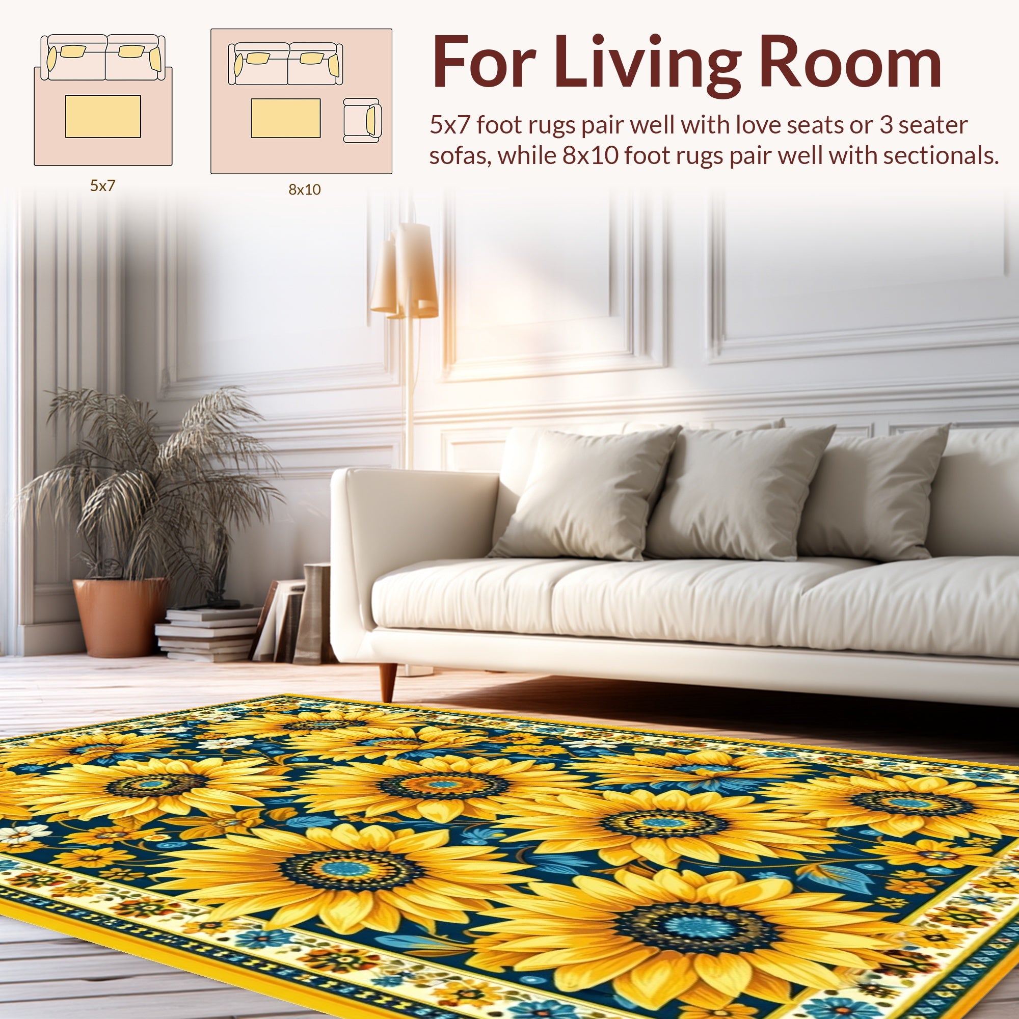 Flatwoven High Traffic Area Rug, Classic Toned Nature Motif, Non Slip, Stain Resistant, Washable Area Rugs for Living Room, Bedroom (Yellow) Overview: