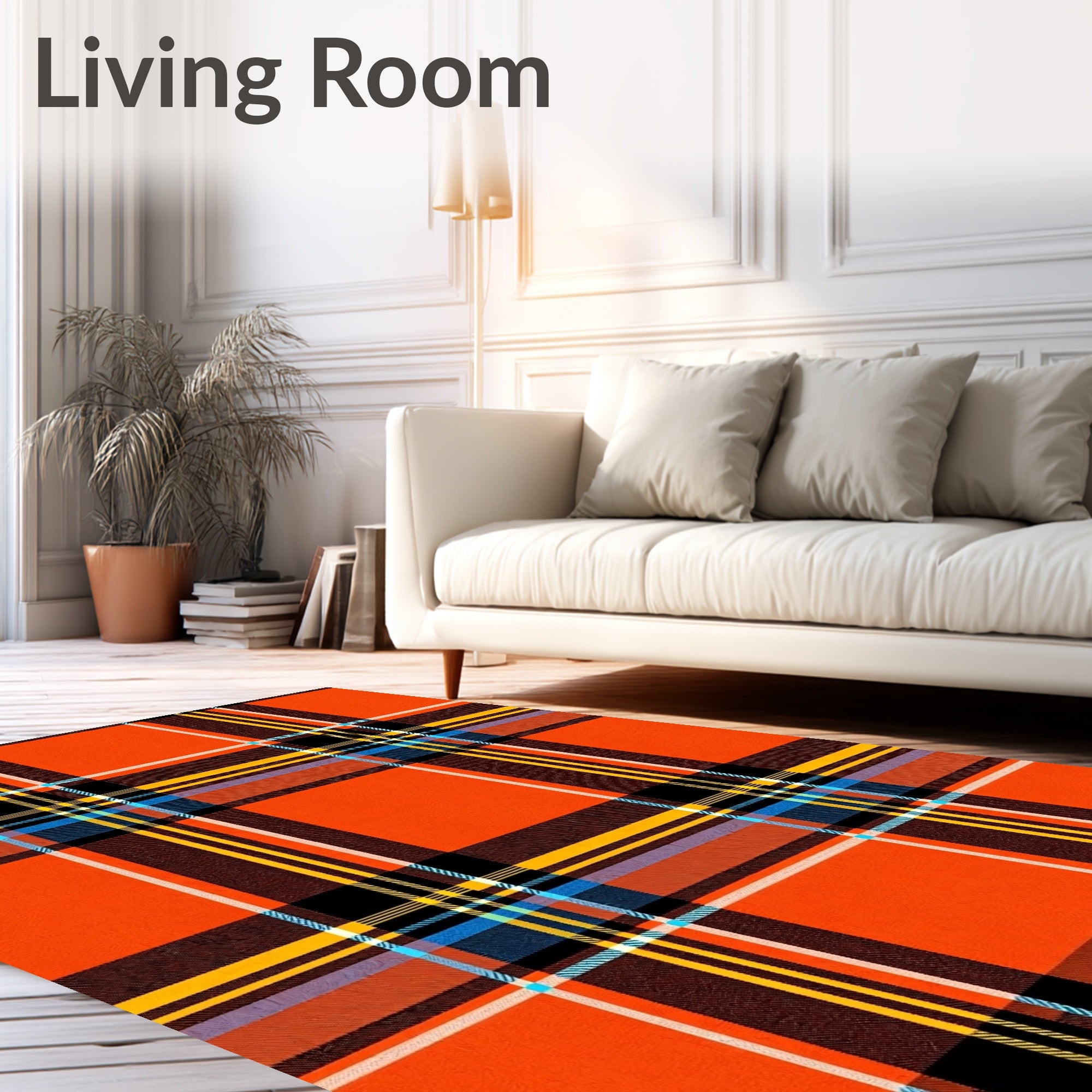 Ultra Soft Area Rug, Non Slip, Stain Resistant, Washable Area Rugs for Living Room, Bedroom, Classic Tartan Plaid with Vibrant Autumnal Color Blocks(Orange) Overview: