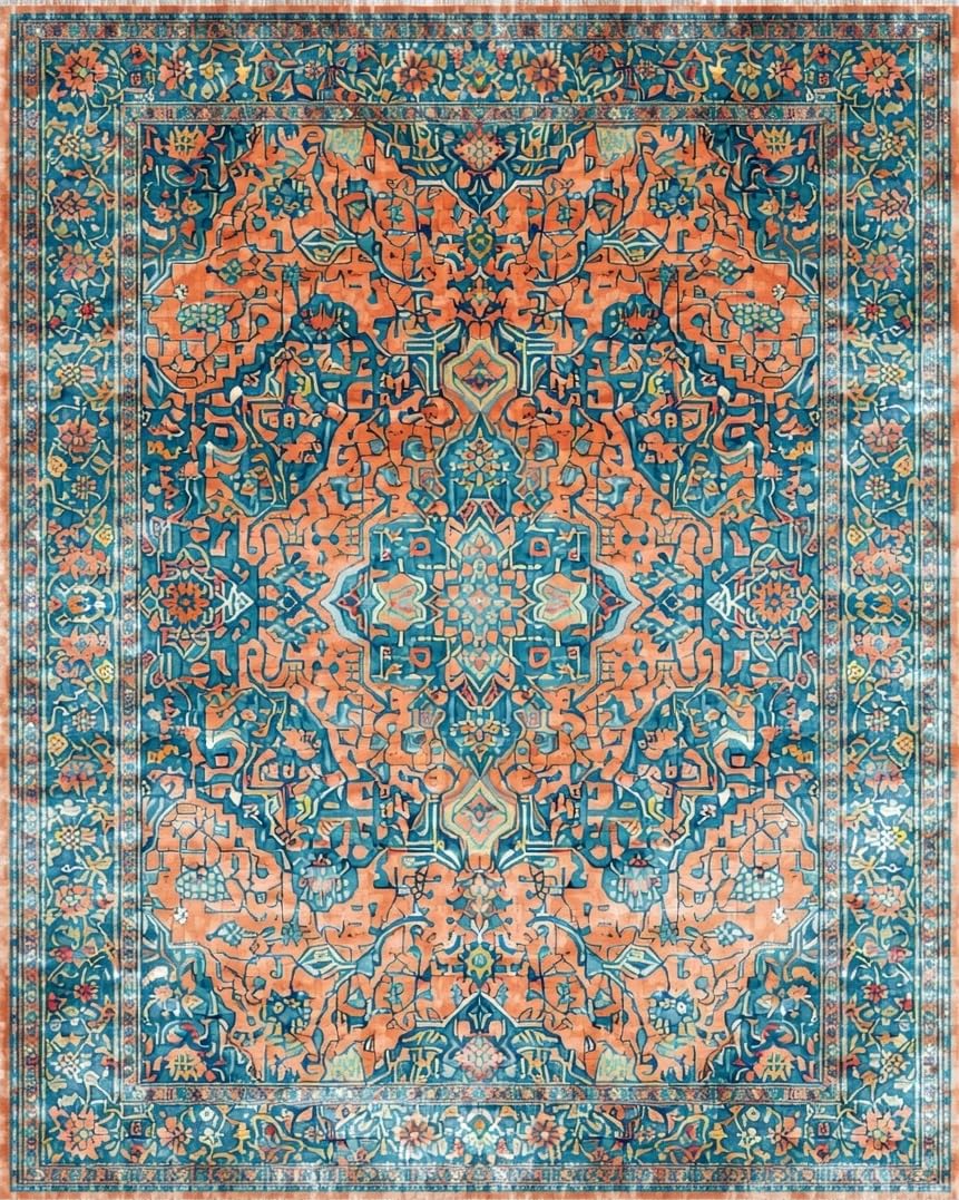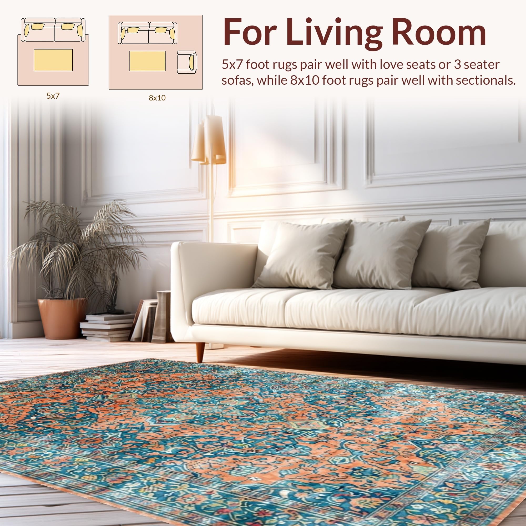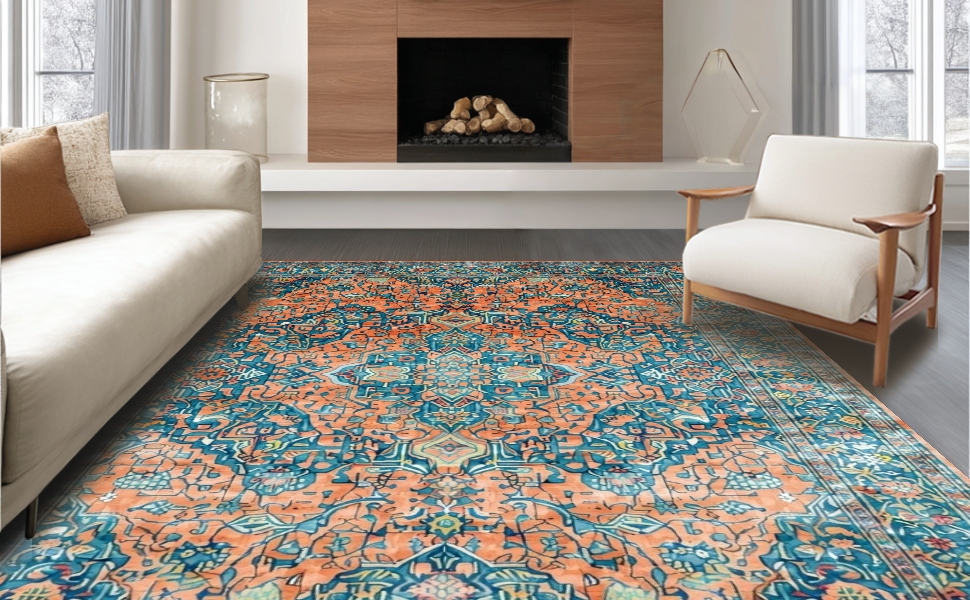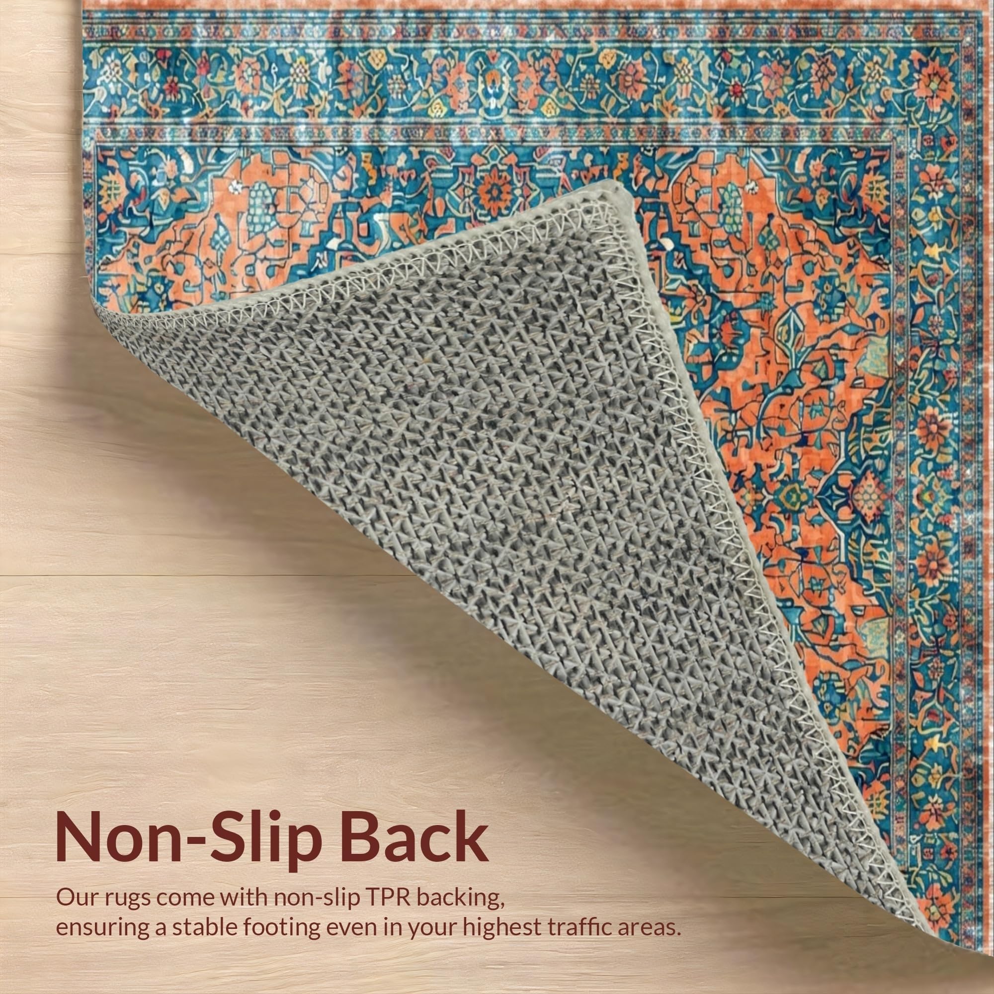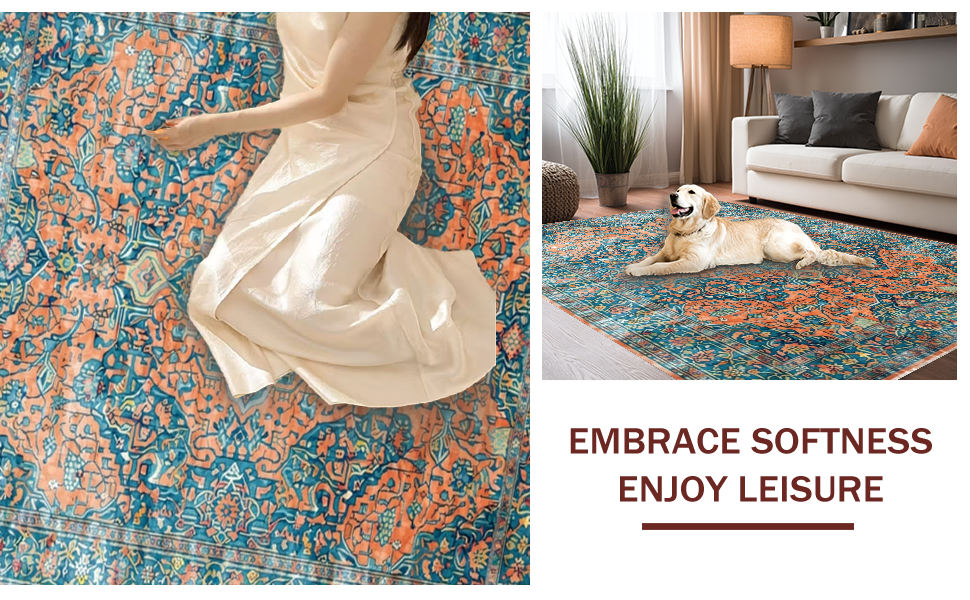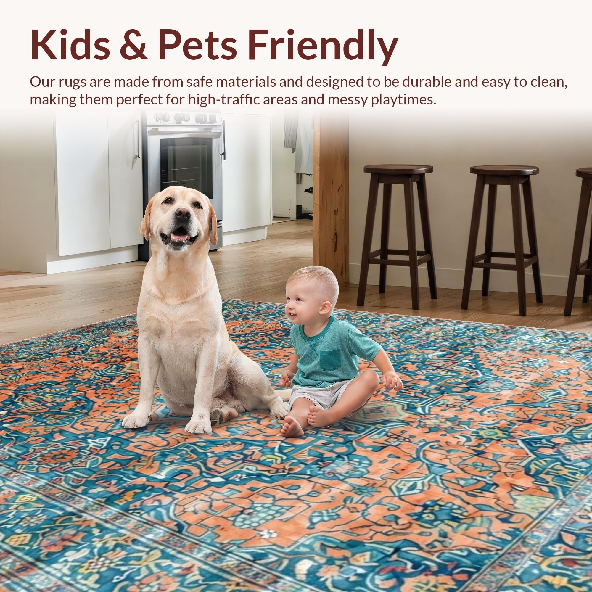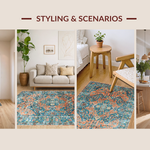 Ultra Soft Area Rug, Non Slip, Stain Resistant, Washable Area Rugs for Living Room, Bedroom, Classic Trellis Distressed Appeal(Blue) Overview: