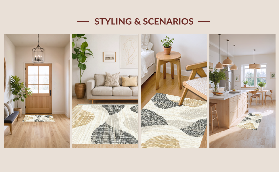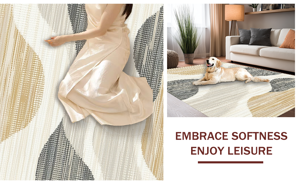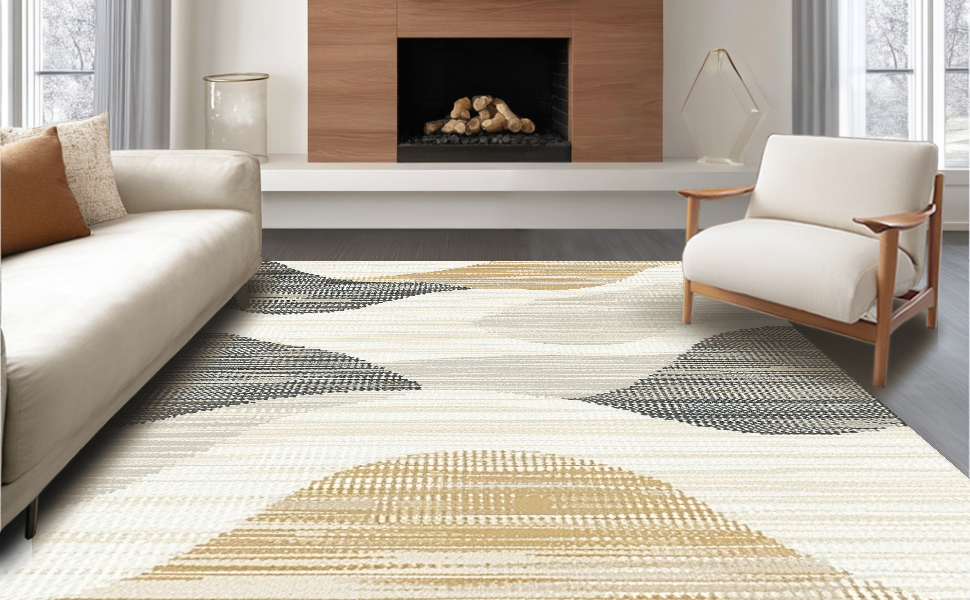 Ultra Soft Area Rug, Non Slip, Stain Resistant, Washable Area Rugs for Living Room, Bedroom, Classic Vintage Woven Texture(Beige) Overview: