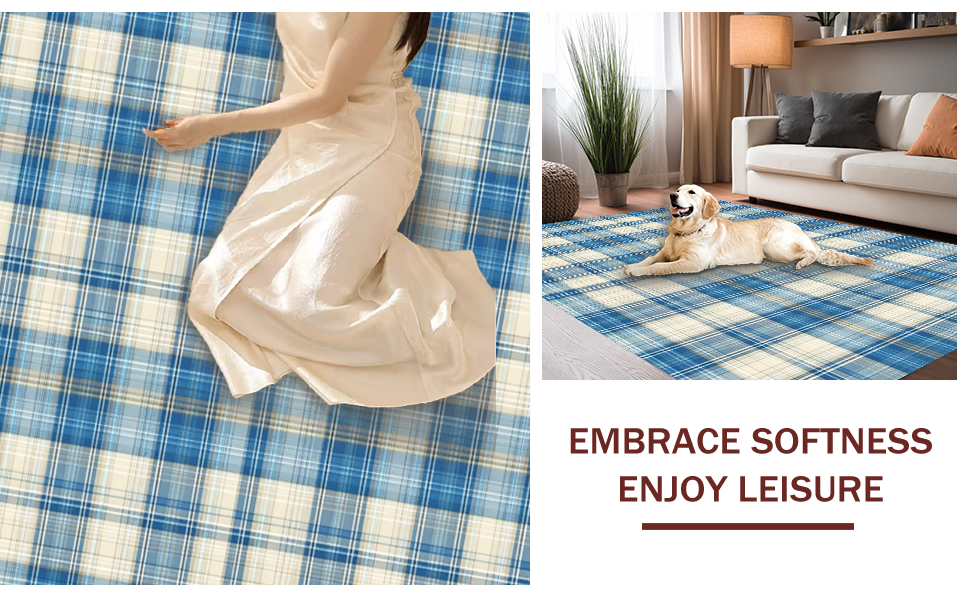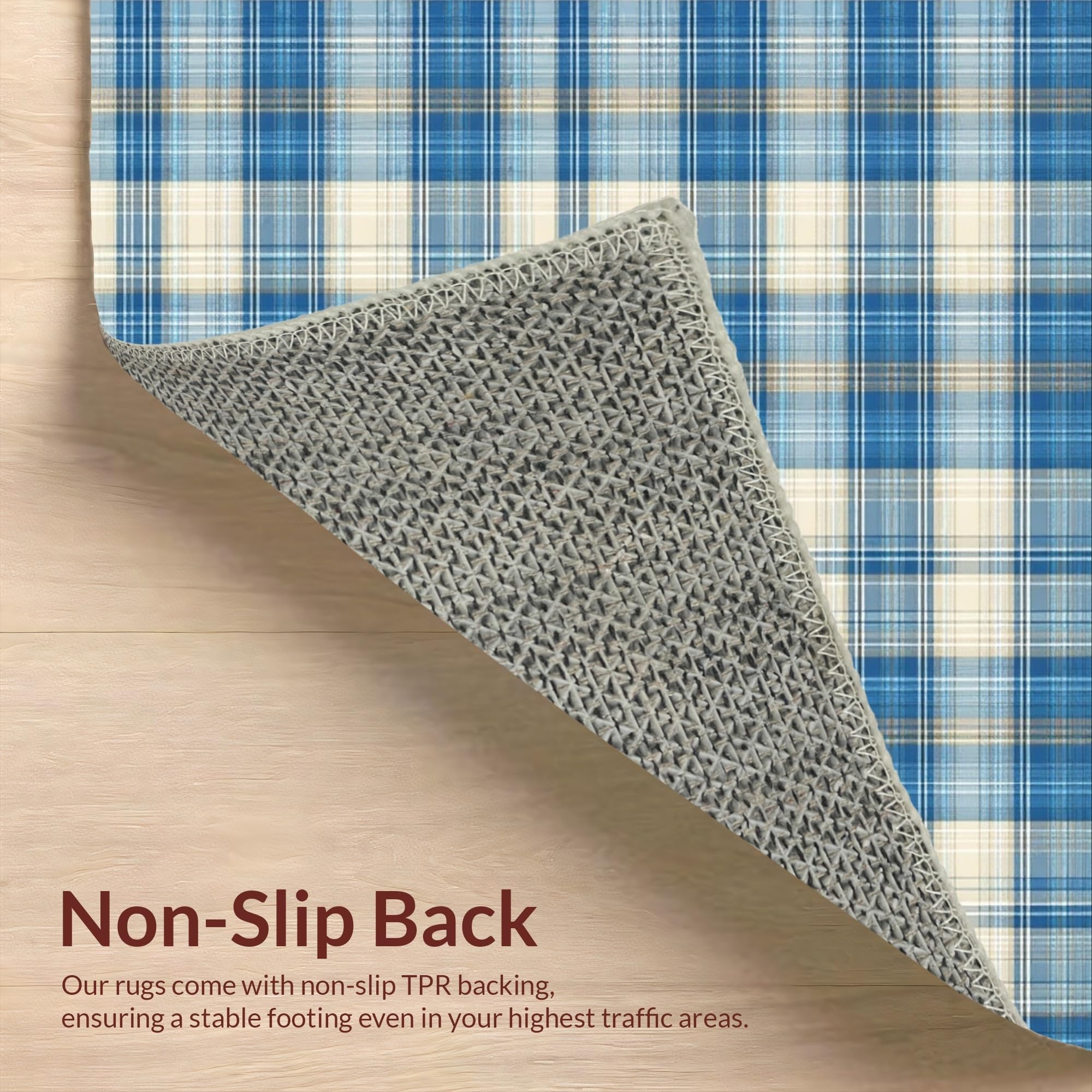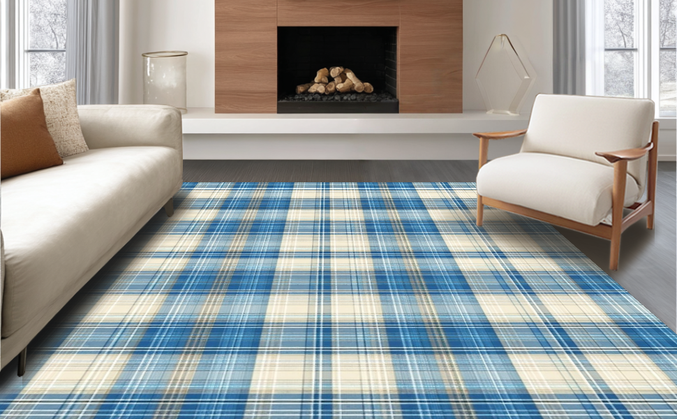 Ultra Soft Area Rug, Non Slip, Stain Resistant, Washable Area Rugs for Living Room, Bedroom, Classic Windowpane Chic Design(Beige) Overview: