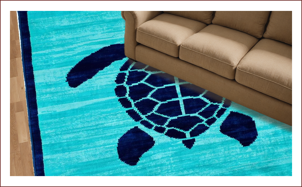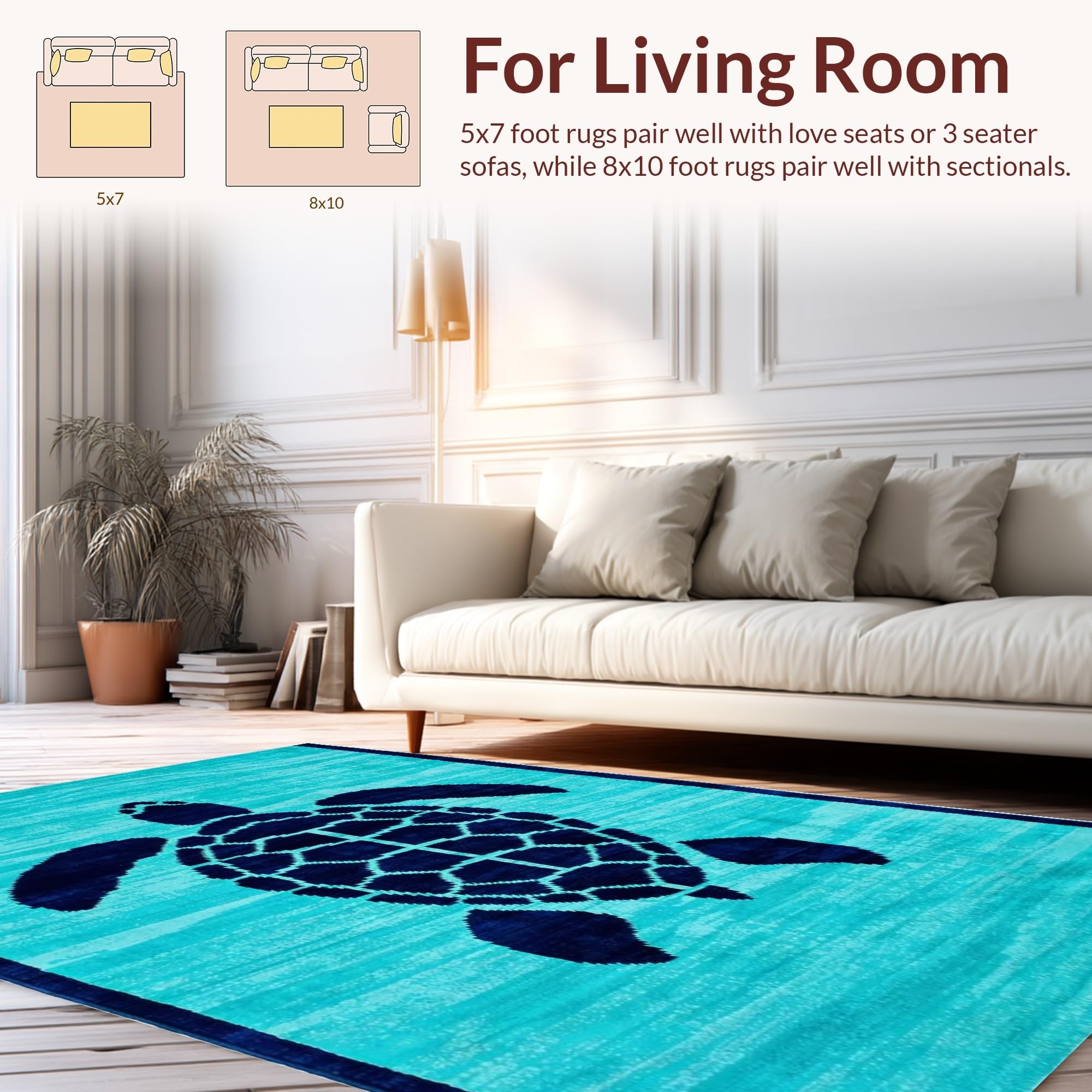 Ultra Soft Area Rug, Non Slip, Stain Resistant, Washable Area Rugs for Living Room, Bedroom, Coastal Blue Abstract Waves(Blue) Overview: