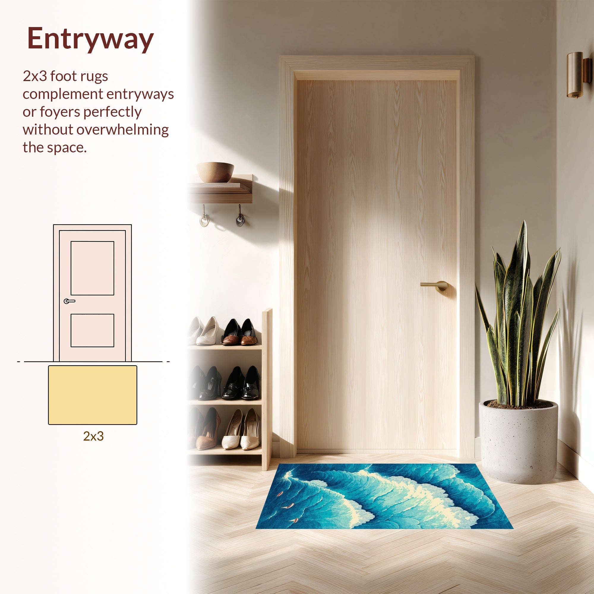 Flatwoven High Traffic Area Rug, Ocean Wave, Non Slip, Stain Resistant, Washable Area Rugs for Living Room, Bedroom (Blue) Overview: