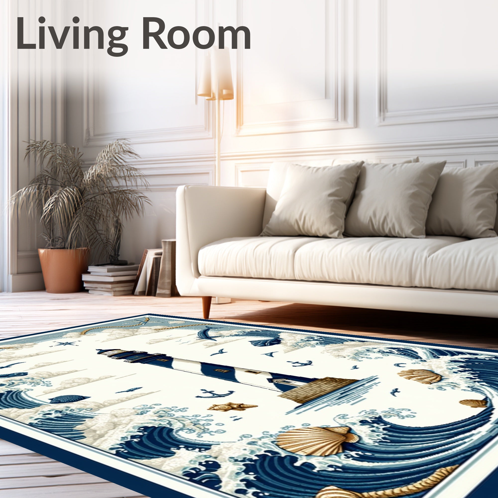 Flatwoven High Traffic Area Rug, Haven Nautical with Lighthouse for, Non Slip, Stain Resistant, Washable Area Rugs for Living Room, Bedroom (Blue) Overview: