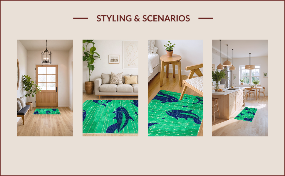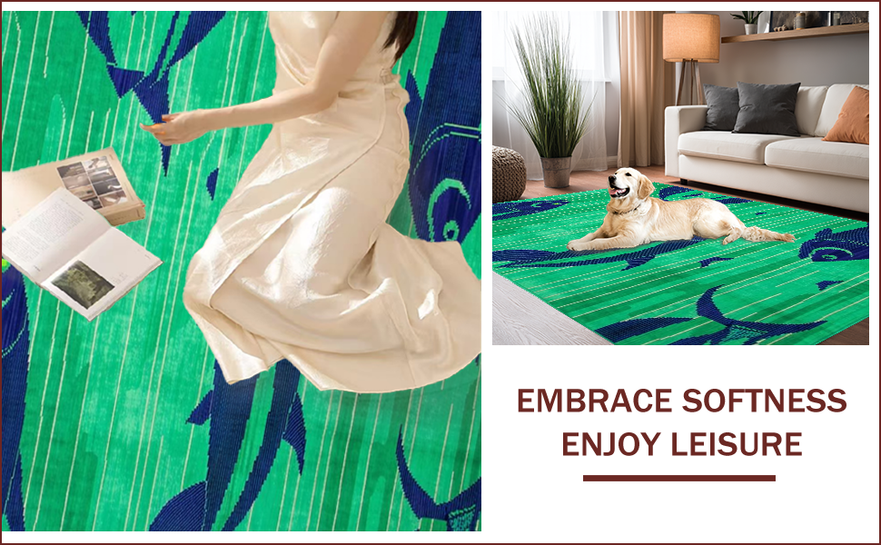 Ultra Soft Area Rug, Non Slip, Stain Resistant, Washable Area Rugs for Living Room, Bedroom, Coastal Inspired Nautical Aesthetic(Green) Overview:
