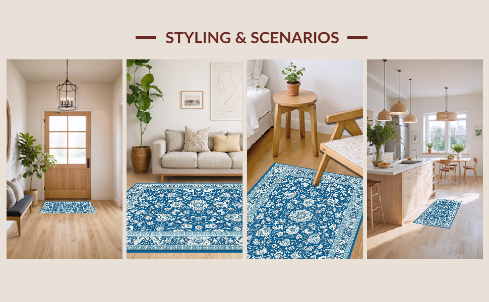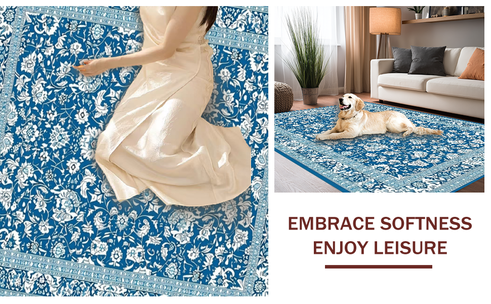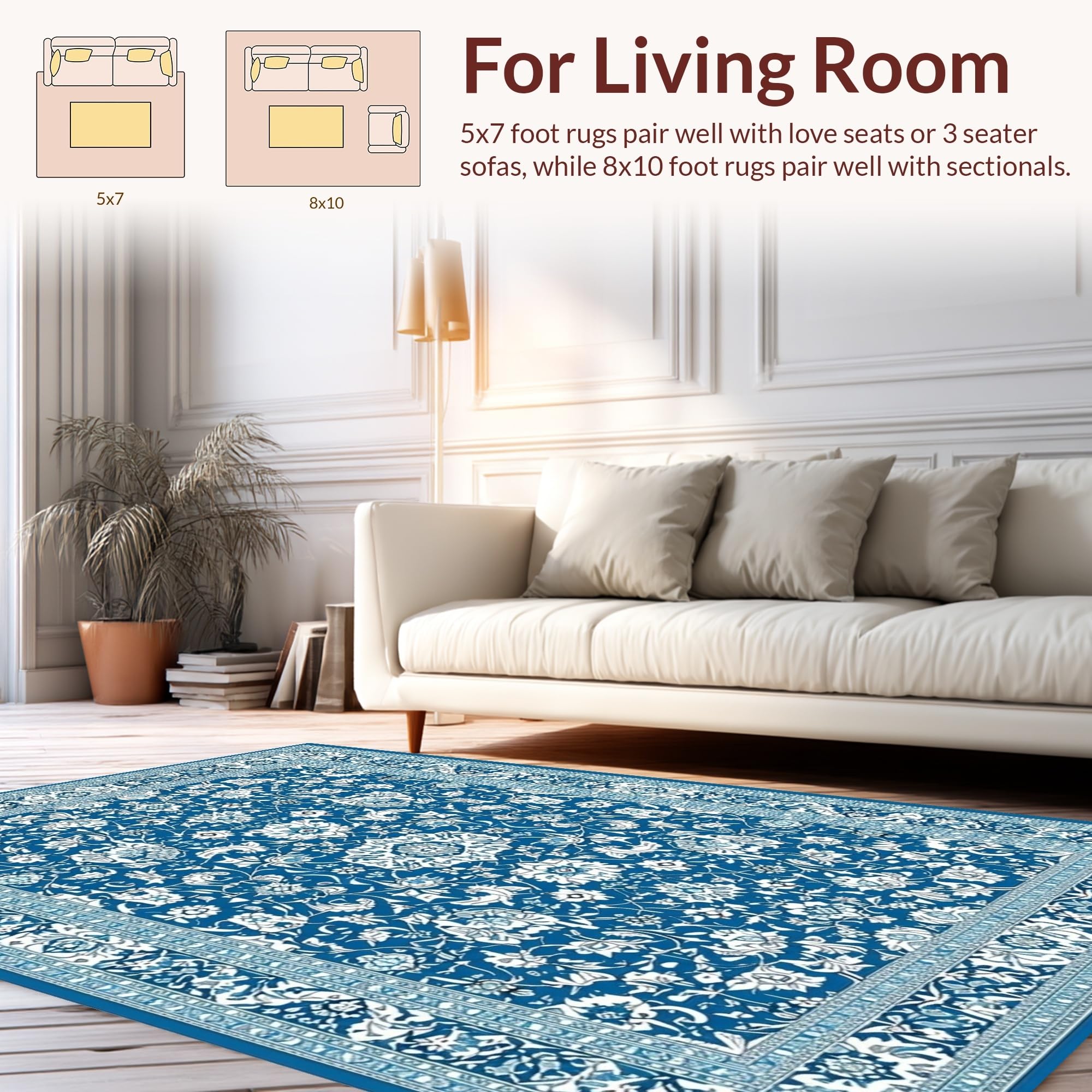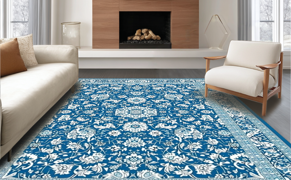 Ultra Soft Area Rug, Non Slip, Stain Resistant, Washable Area Rugs for Living Room, Bedroom, Coastal Inspired Ocean Hues(Blue) Overview: