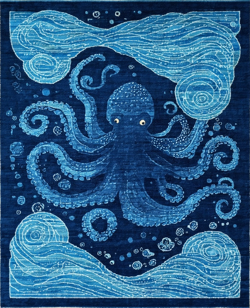 Flatwoven High Traffic Area Rug, Kraken Adventure Deep Sea Floor Covering, Non Slip, Stain Resistant, Washable Area Rugs for Living Room, Bedroom (Blue) Overview: