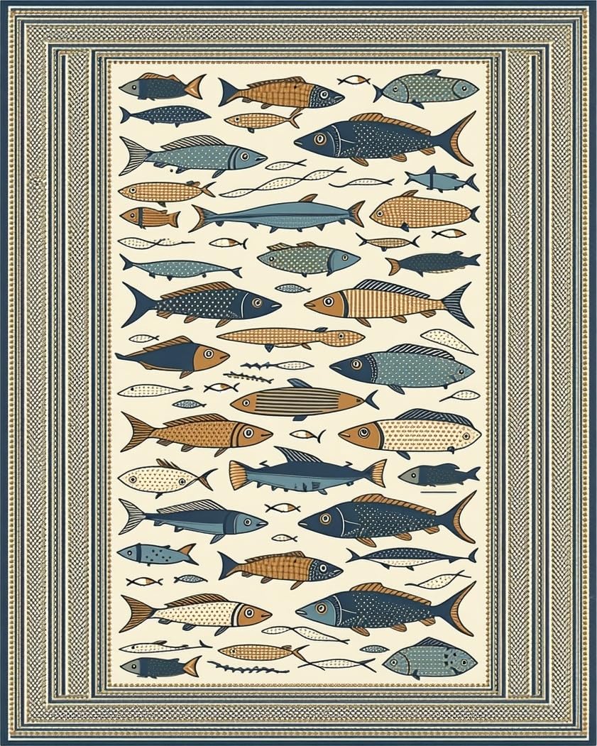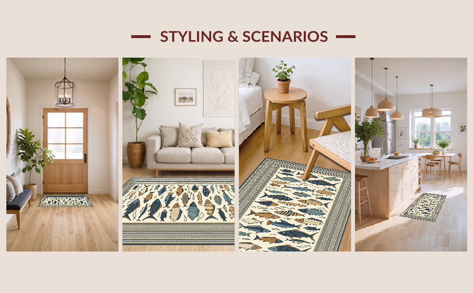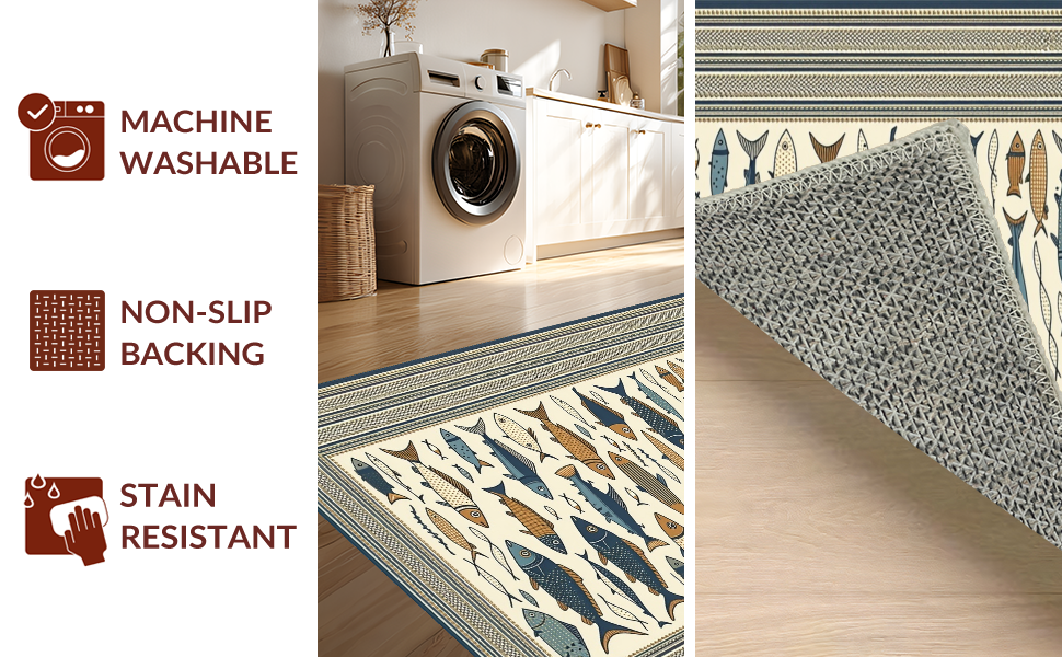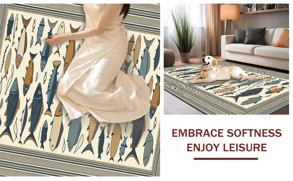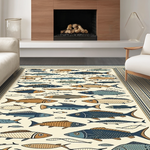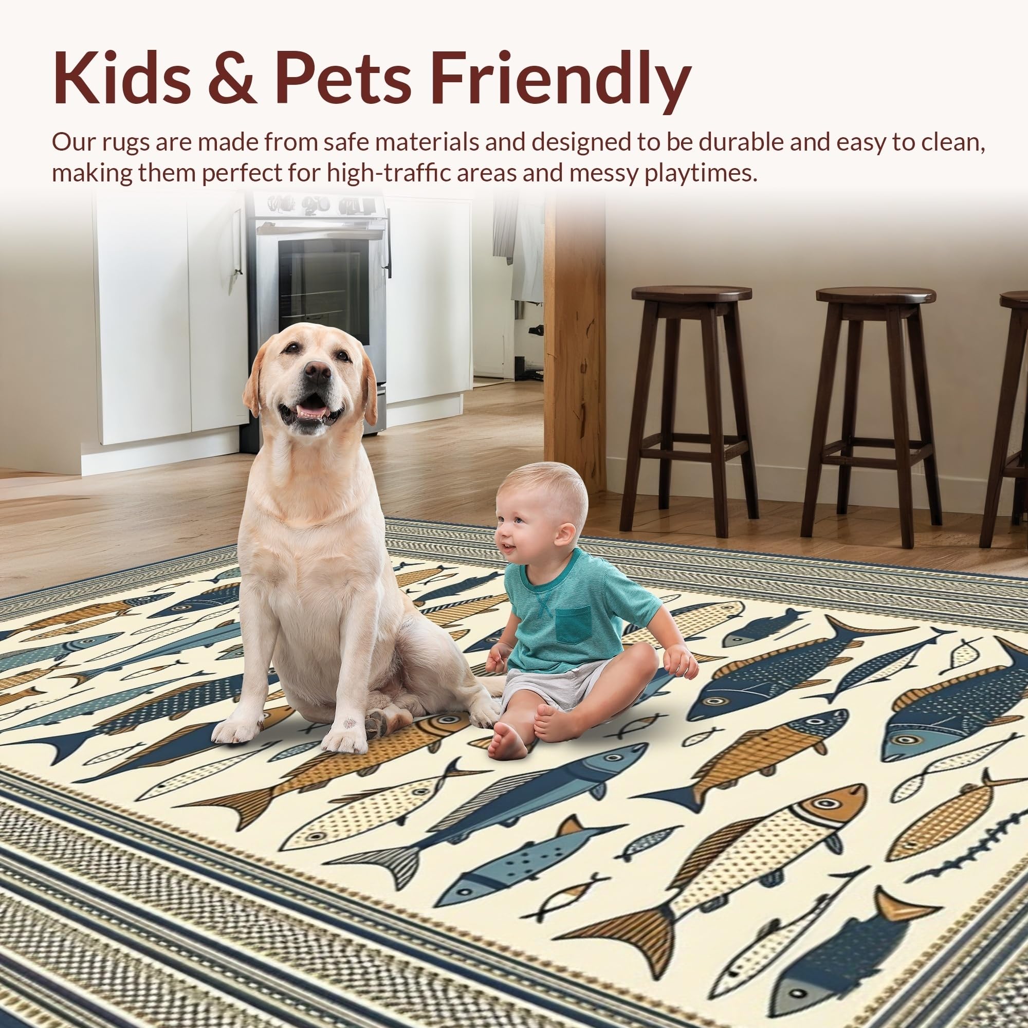 Ultra Soft Area Rug, Non Slip, Stain Resistant, Washable Area Rugs for Living Room, Bedroom, Coastal Nautical Fish Motif(White) Overview: