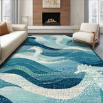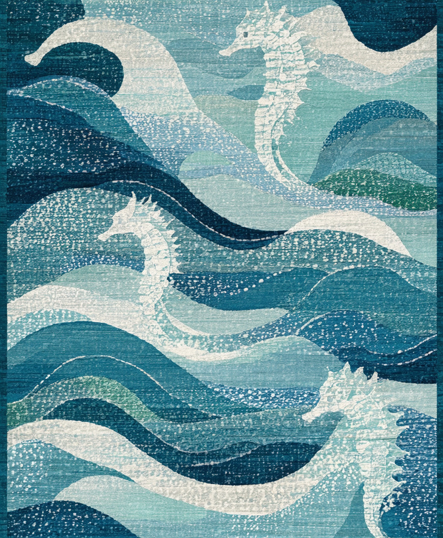 Coastal Seahorse Low Pile with Oceanic Blue Swirls and Nautical Motifs(Blue)