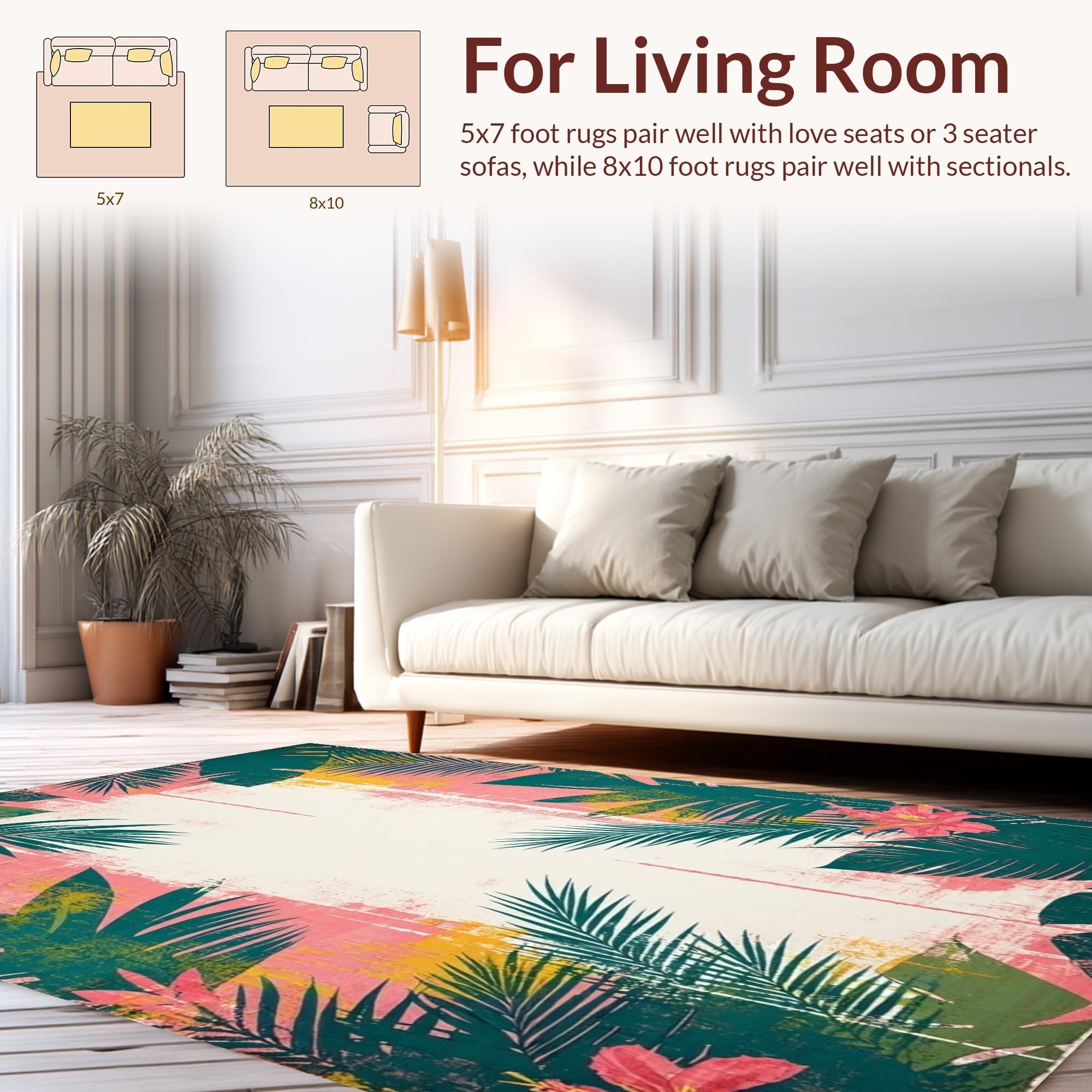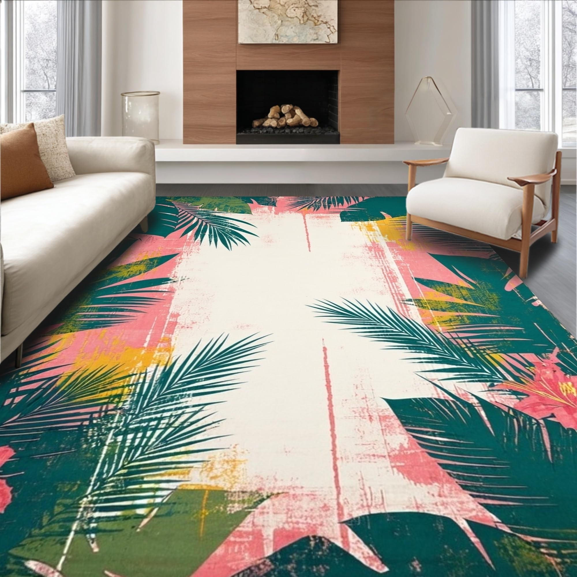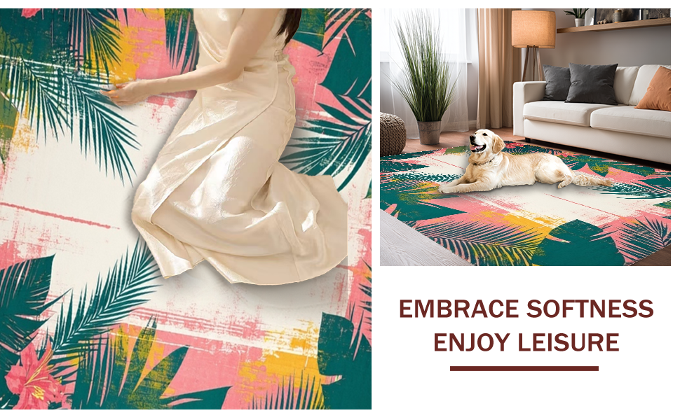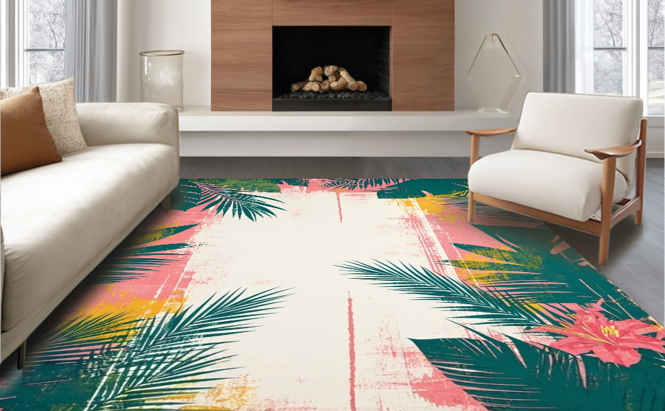 Ultra Soft Area Rug, Non Slip, Stain Resistant, Washable Area Rugs for Living Room, Bedroom, Colorful Abstract Boho Tapestry(Pink) Overview: