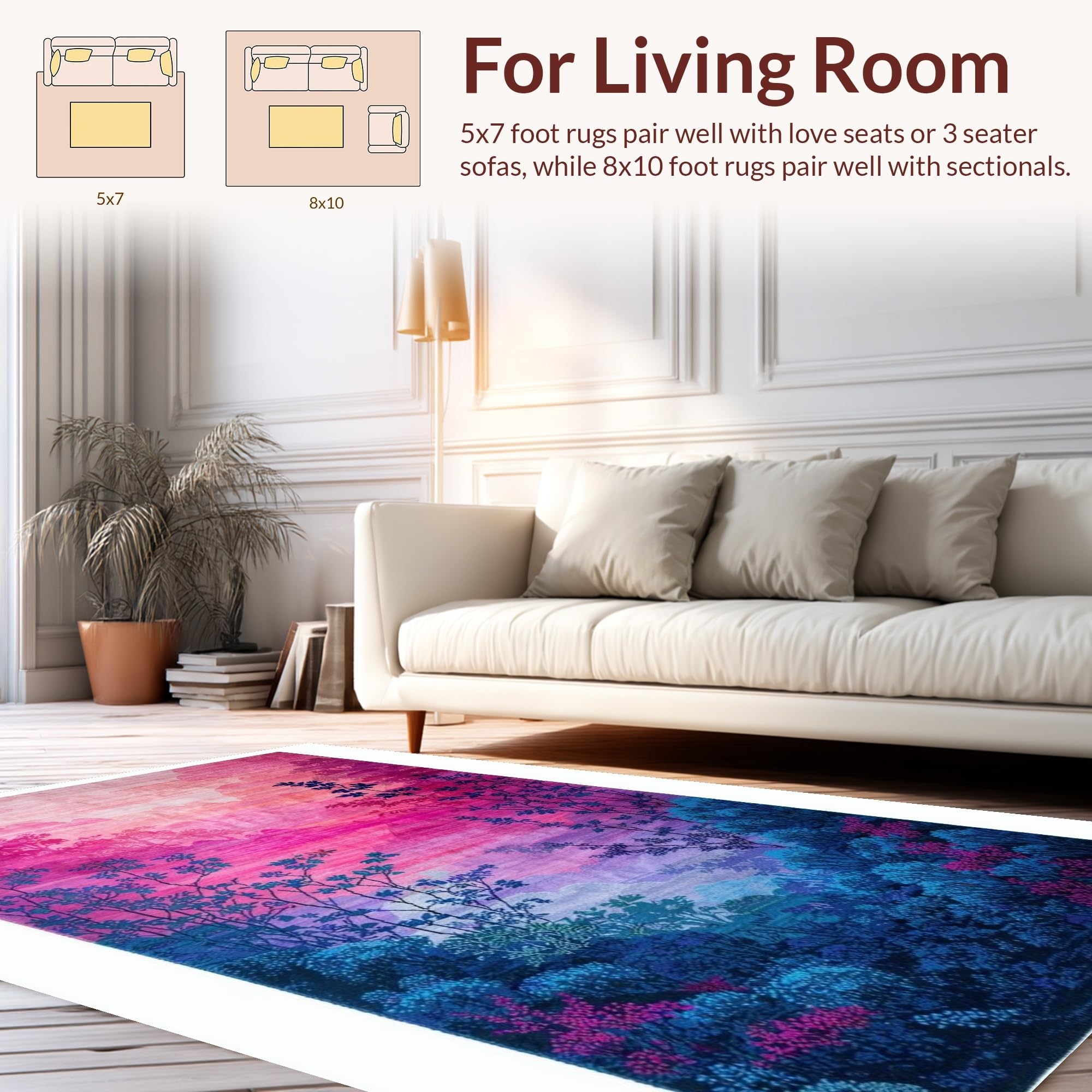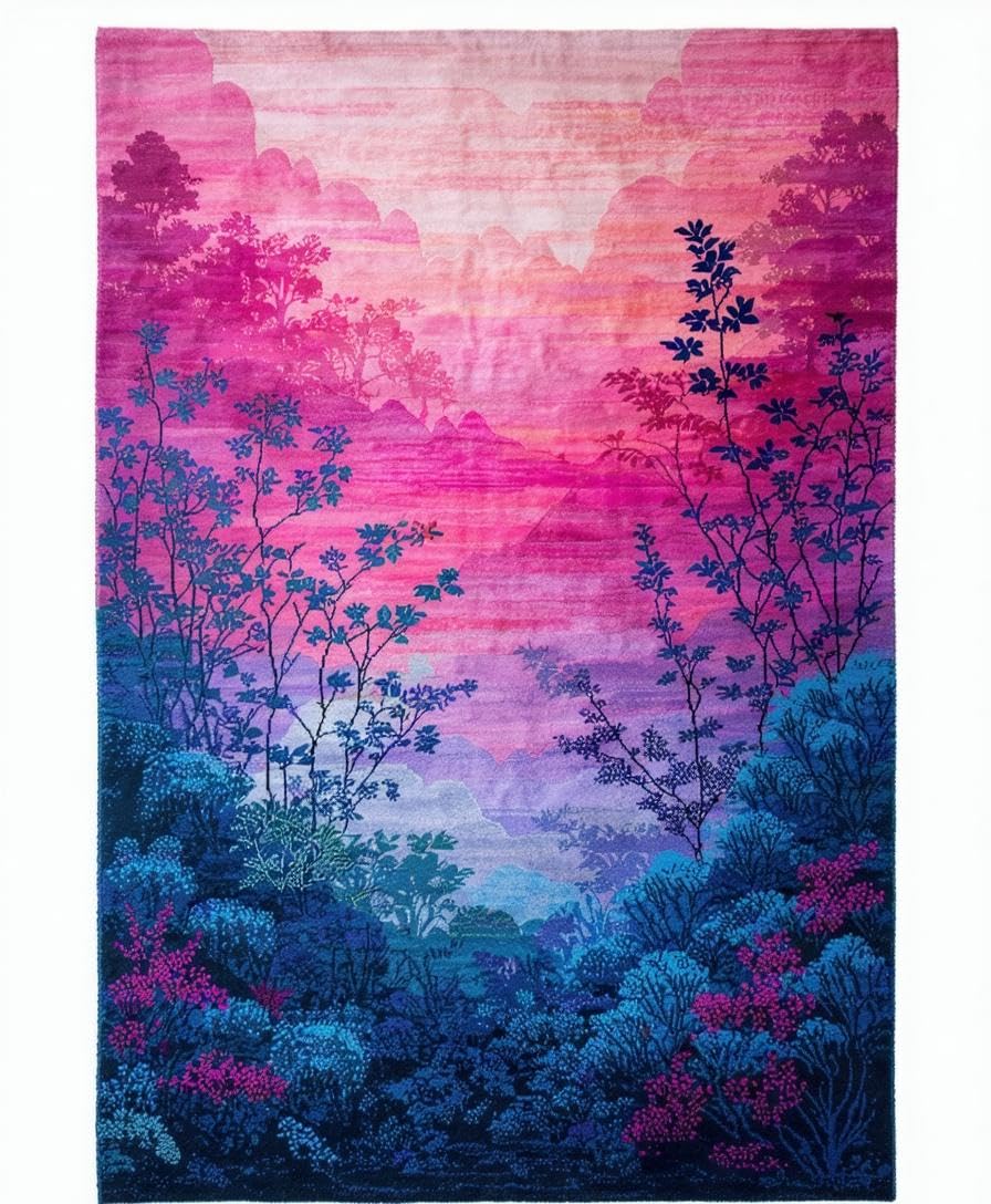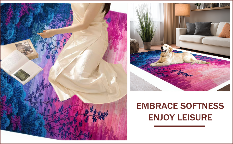 Ultra Soft Area Rug, Non Slip, Stain Resistant, Washable Area Rugs for Living Room, Bedroom, Colorful Abstract Moss Motif(Pink) Overview: