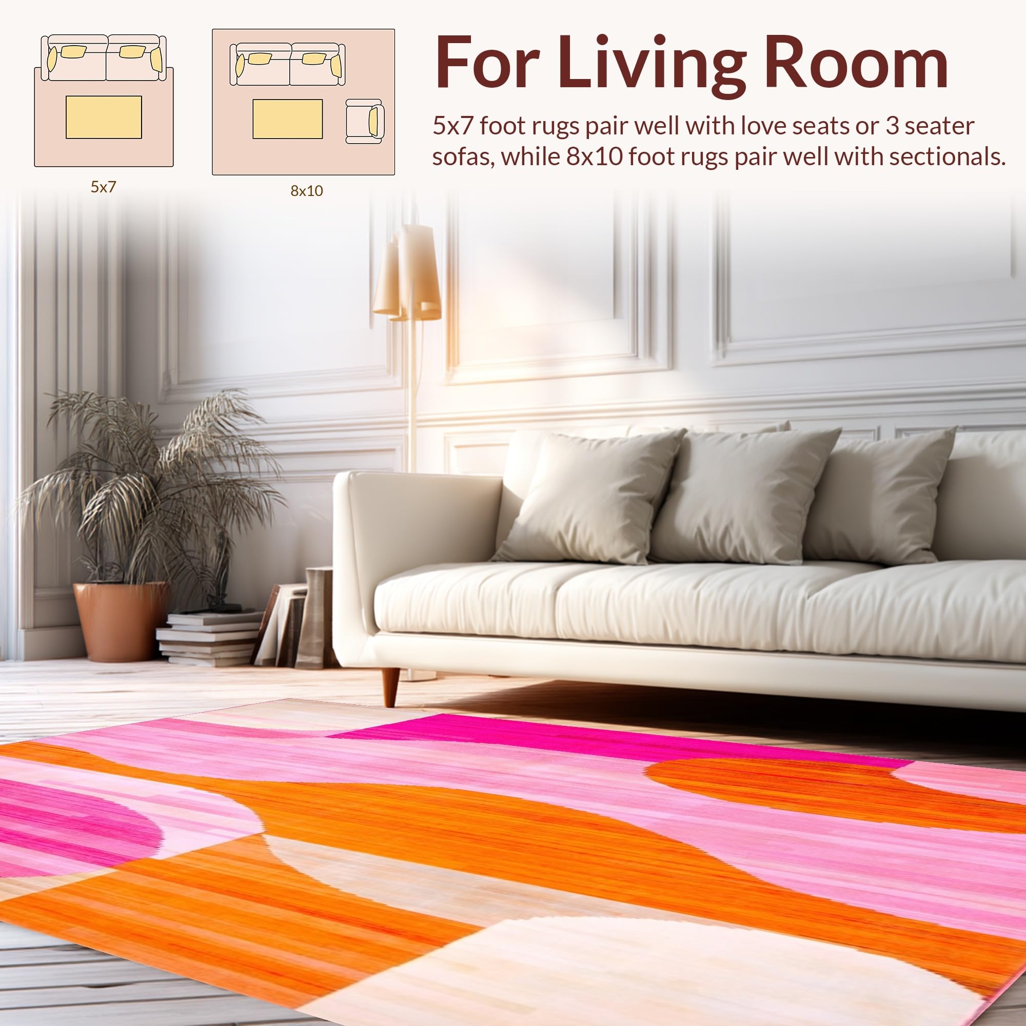 Ultra Soft Area Rug, Non Slip, Stain Resistant, Washable Area Rugs for Living Room, Bedroom, Colorful Abstract Pastel Washable Carpet(Orange) Overview: