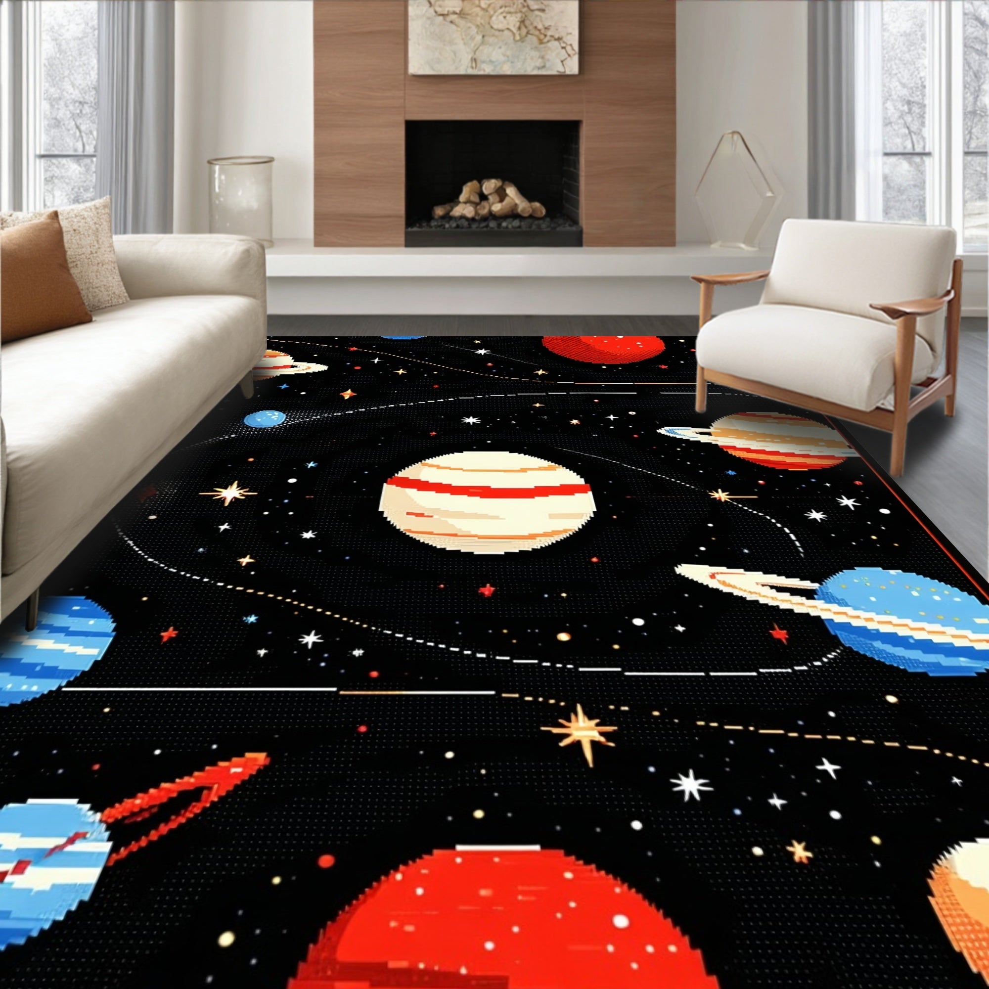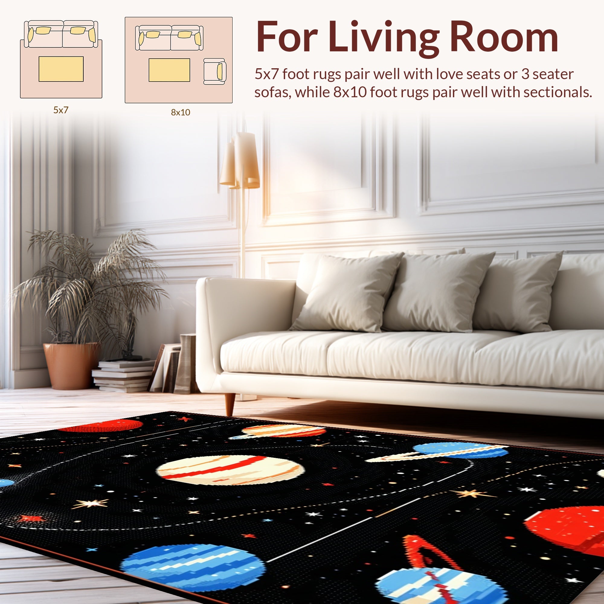 Flatwoven High Traffic Area Rug, Colorful Astronomical Art Design, Non Slip, Stain Resistant, Washable Area Rugs for Living Room, Bedroom (Red) Overview: