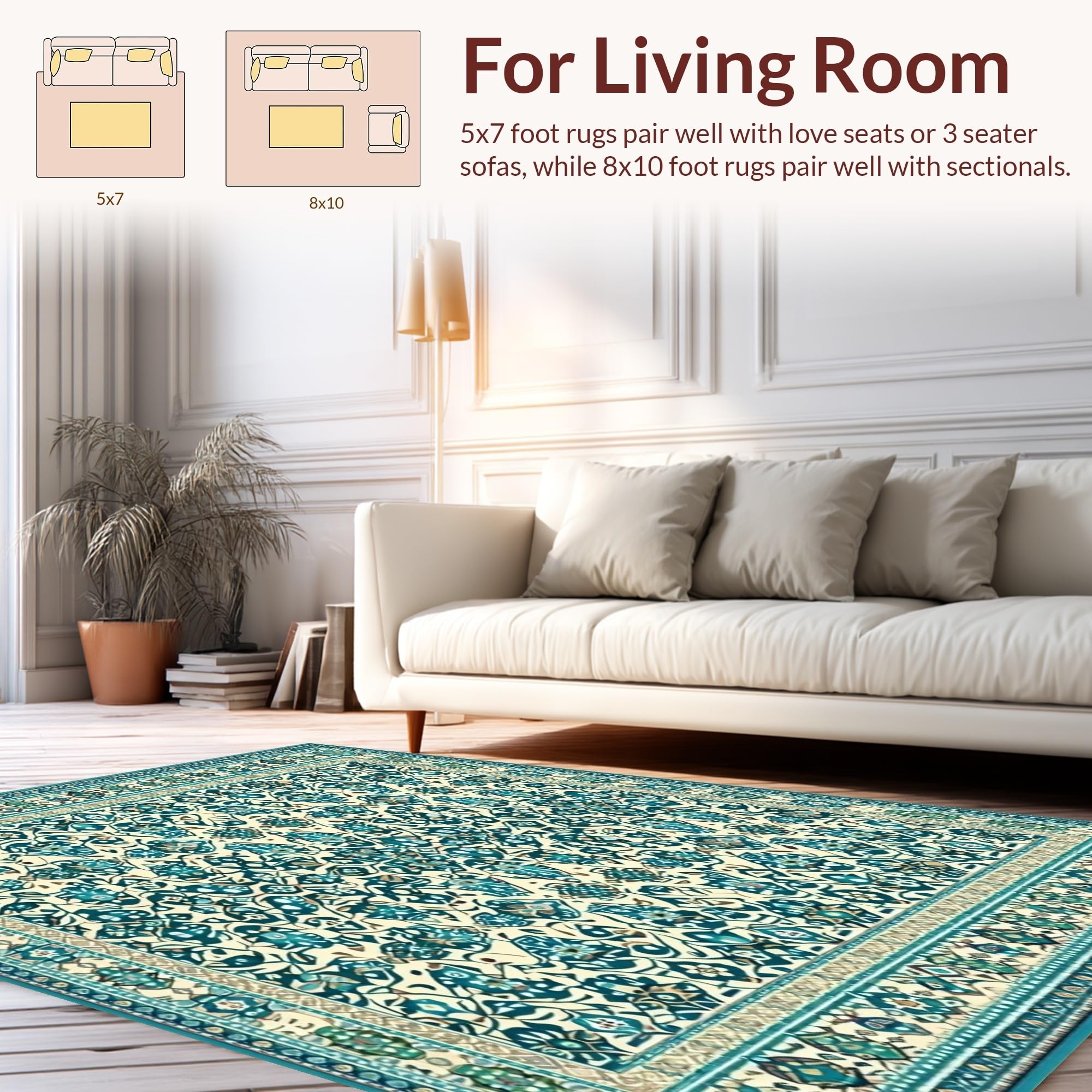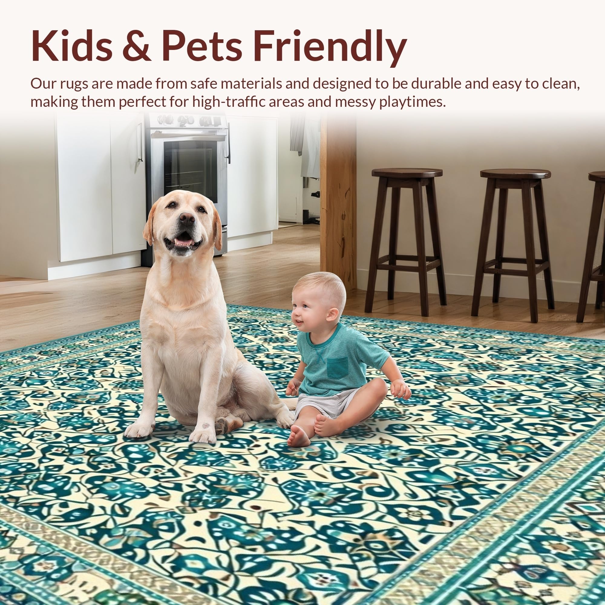 Ultra Soft Area Rug, Non Slip, Stain Resistant, Washable Area Rugs for Living Room, Bedroom, Colorful Boho Chic Area(Beige) Overview: