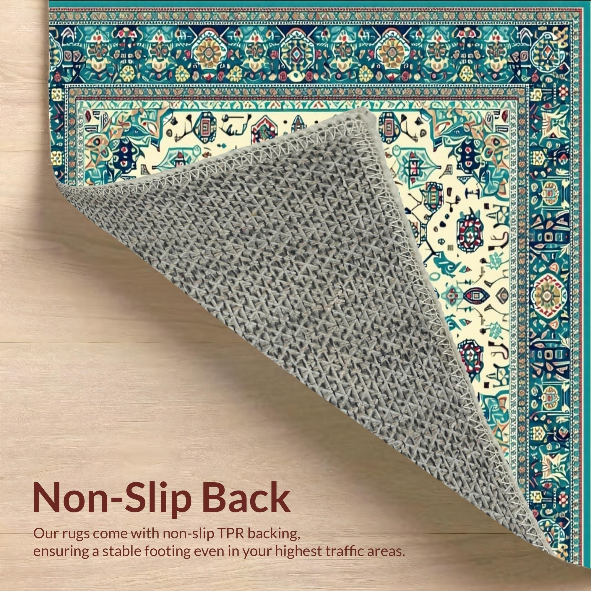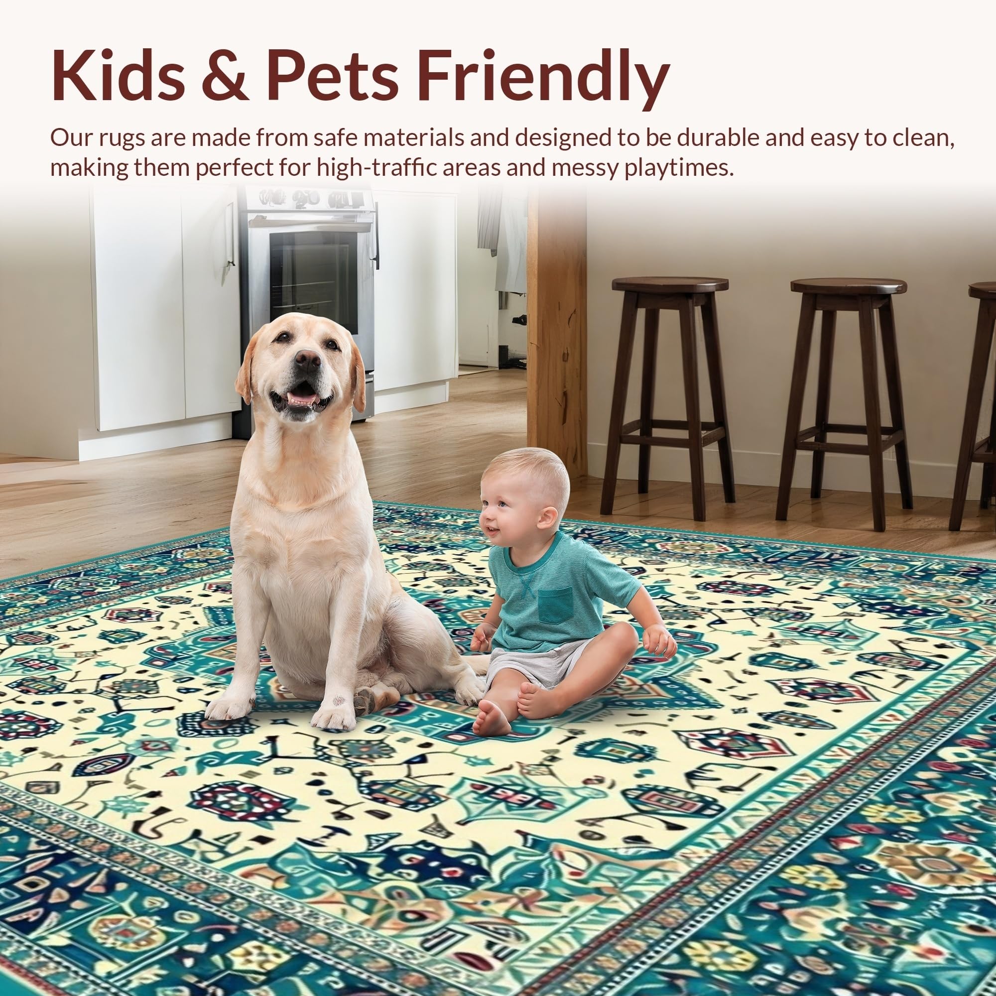 Ultra Soft Area Rug, Non Slip, Stain Resistant, Washable Area Rugs for Living Room, Bedroom, Colorful Boho Chic Geometric Medallion Area(White) Overview: