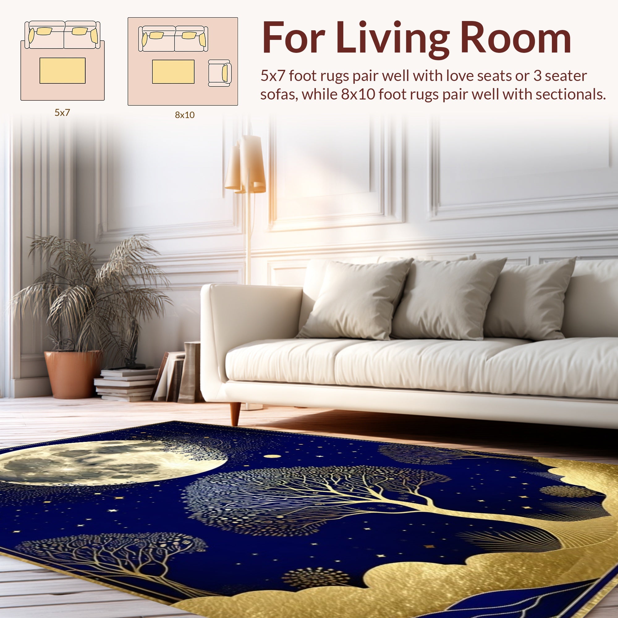 Flatwoven High Traffic Area Rug, Colorful Ethereal Nature, Non Slip, Stain Resistant, Washable Area Rugs for Living Room, Bedroom (Blue) Overview: