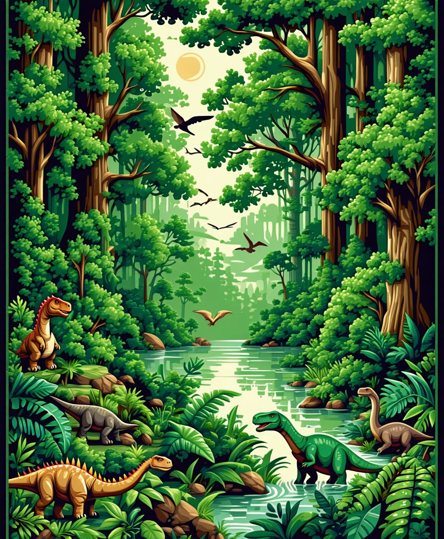 Flatwoven High Traffic Area Rug, Colorful Forest Adventure Illustration, Non Slip, Stain Resistant, Washable Area Rugs for Living Room, Bedroom (Green) Overview: