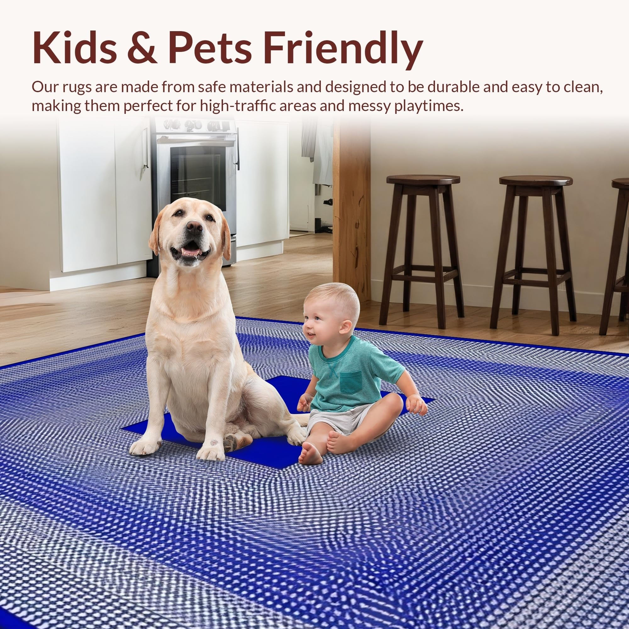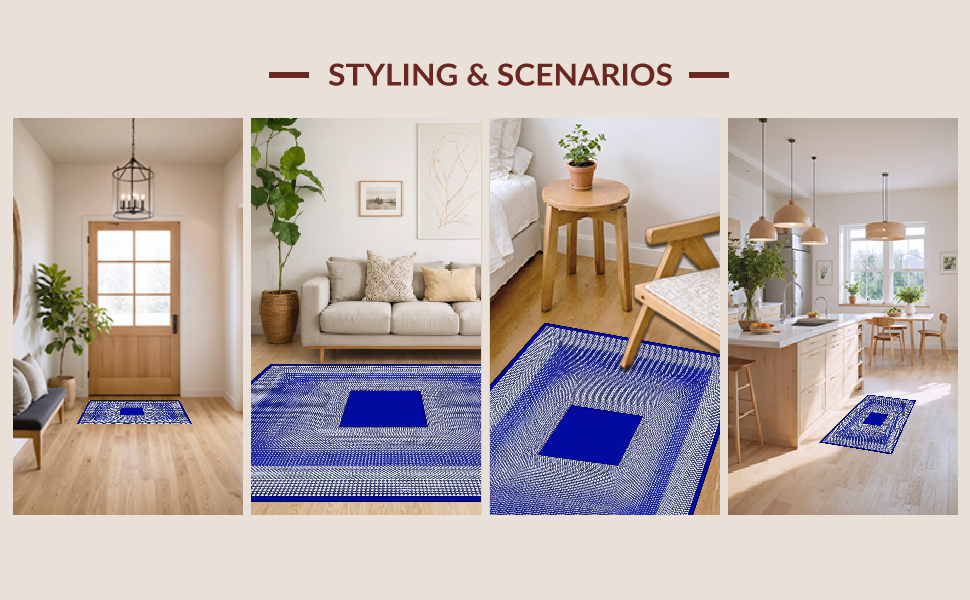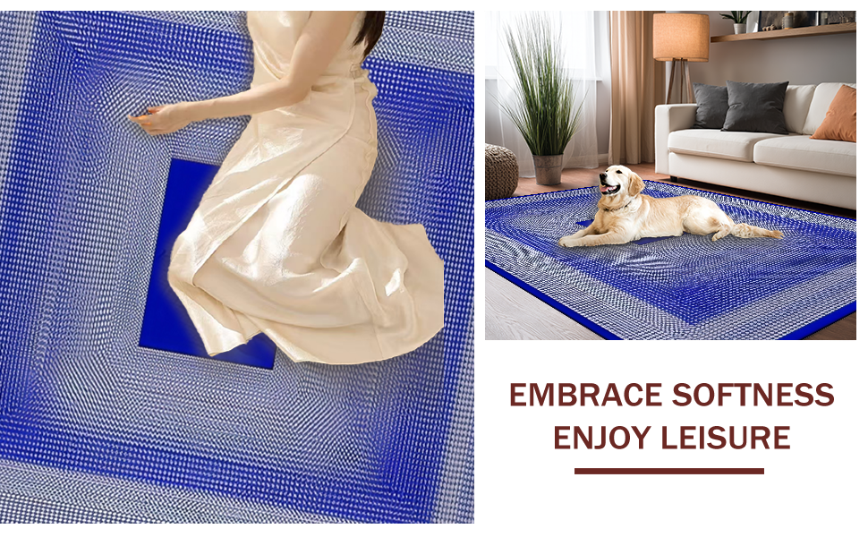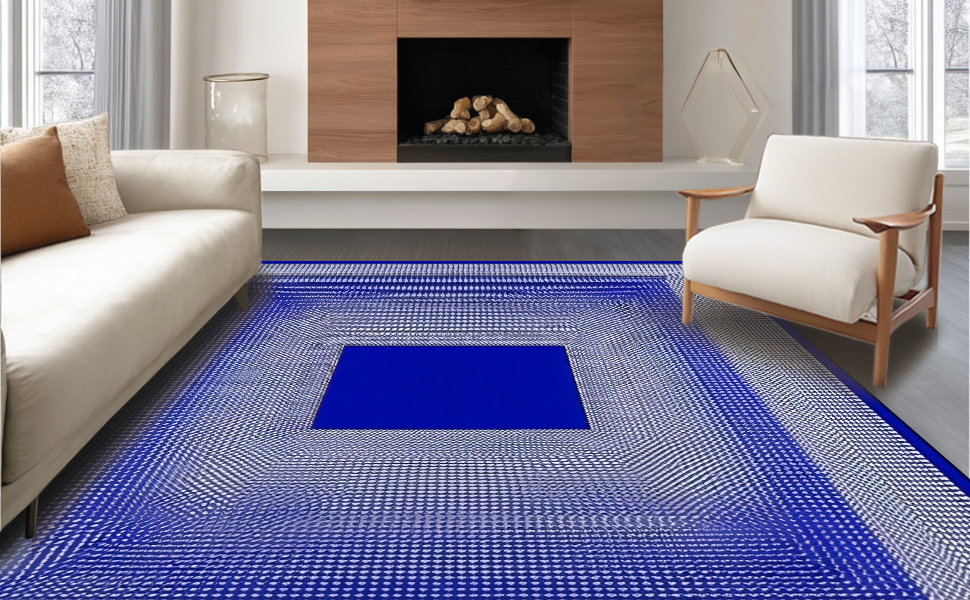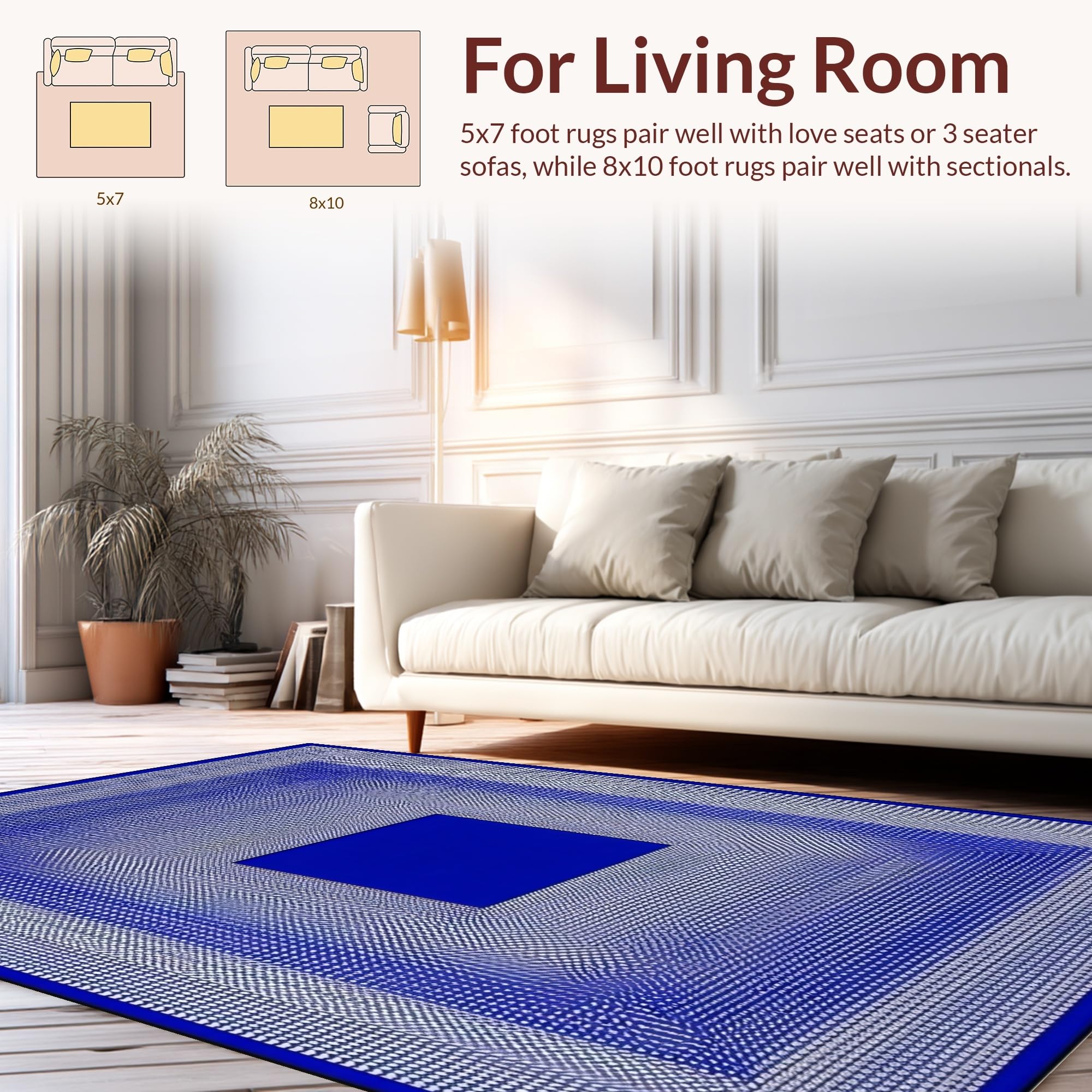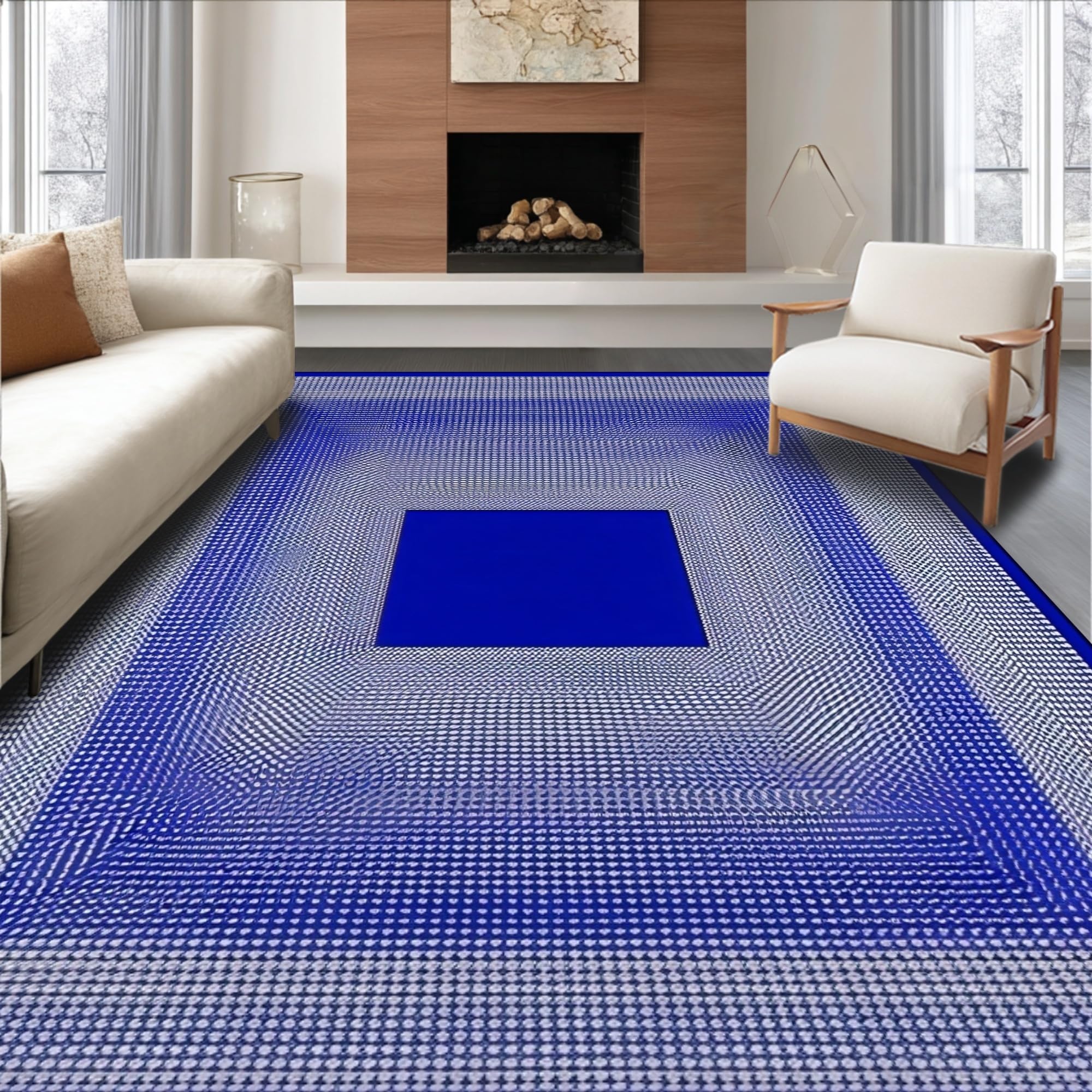 Ultra Soft Area Rug, Non Slip, Stain Resistant, Washable Area Rugs for Living Room, Bedroom, Colorful Geometric Illusion Motif(Blue) Overview: