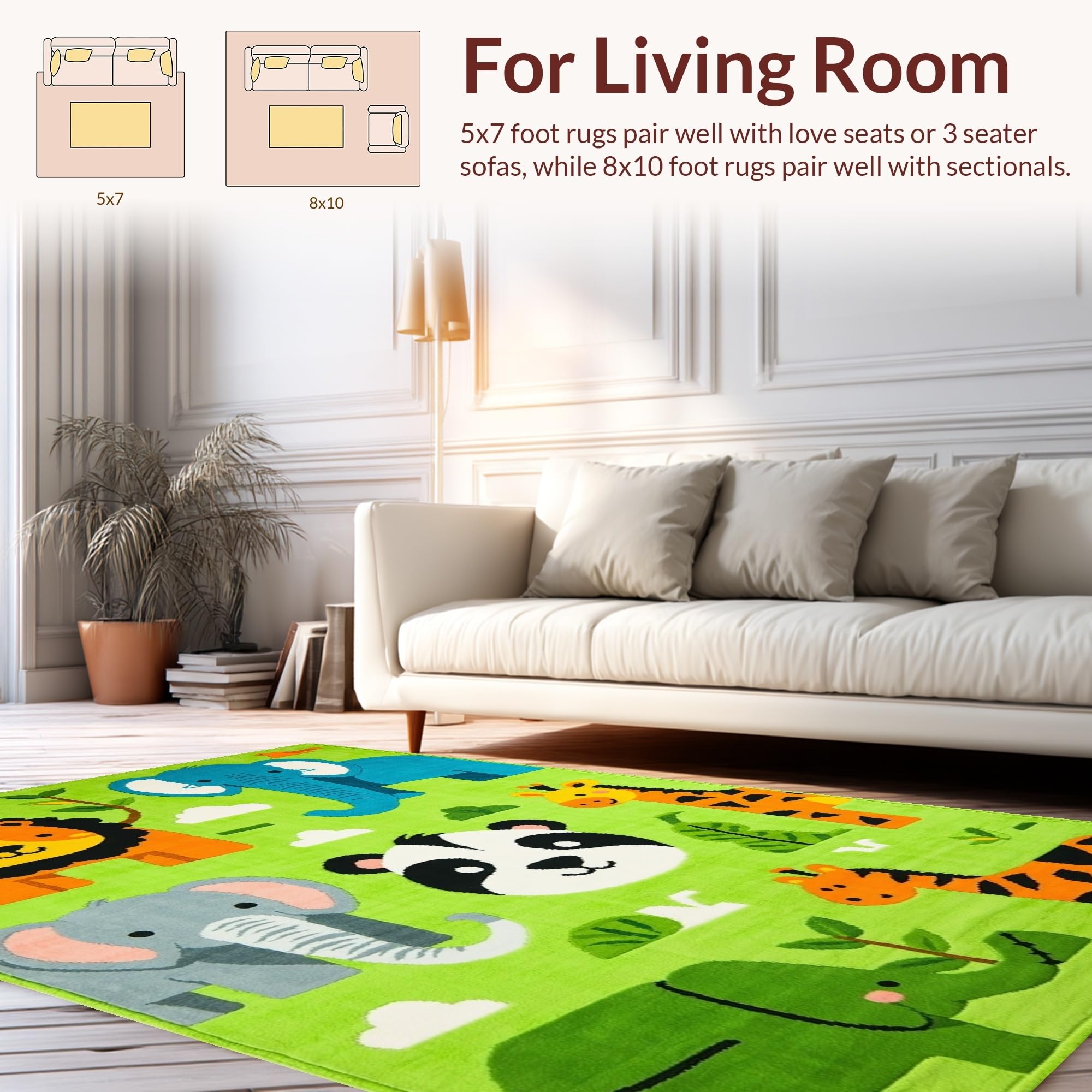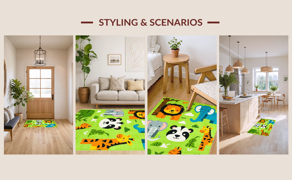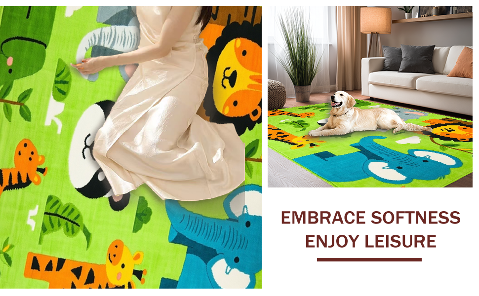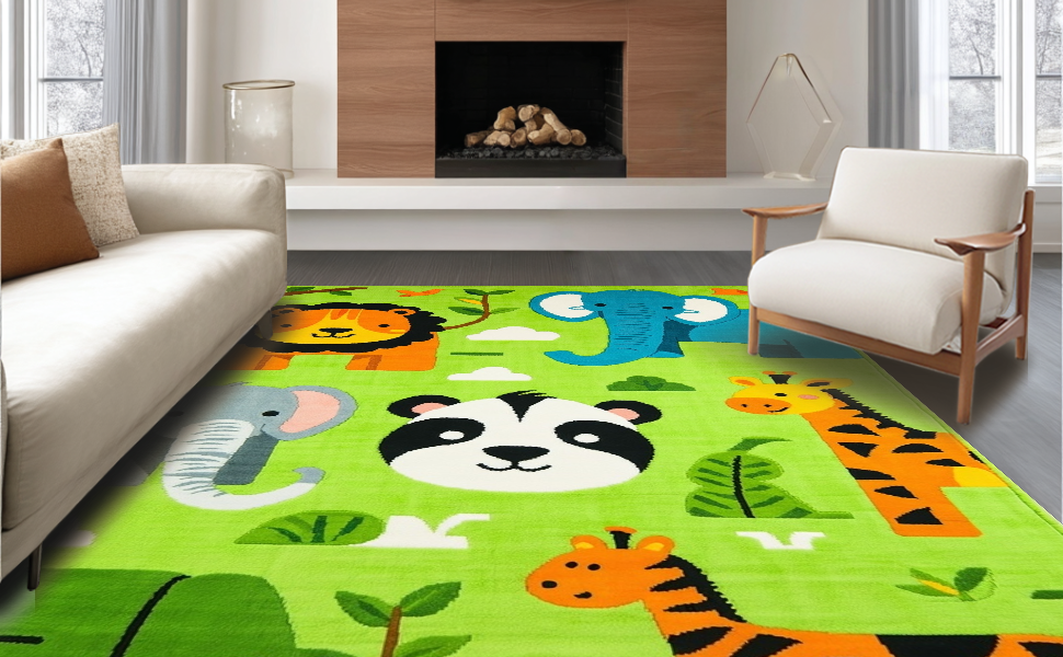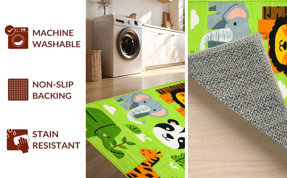 Ultra Soft Area Rug, Non Slip, Stain Resistant, Washable Area Rugs for Living Room, Bedroom, Colorful Nature-Inspired Nursery Design(Green) Overview: