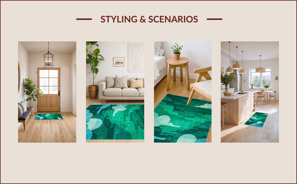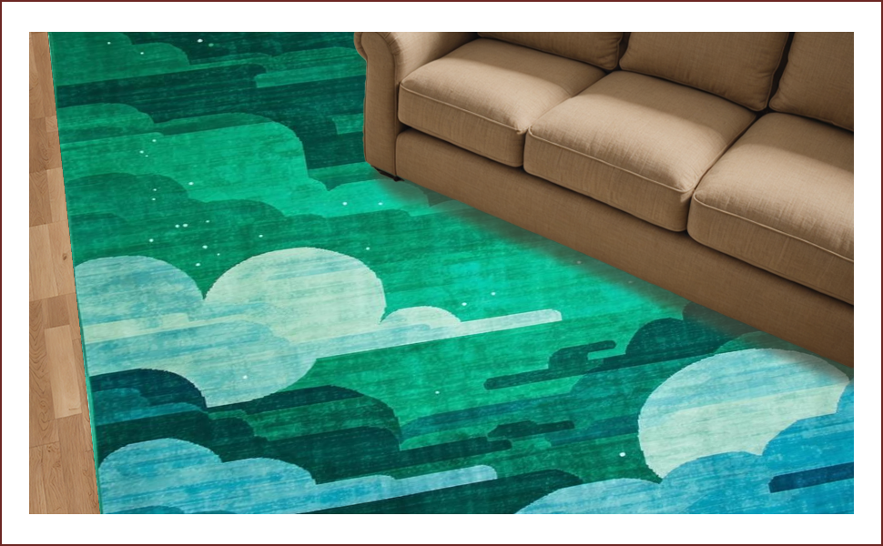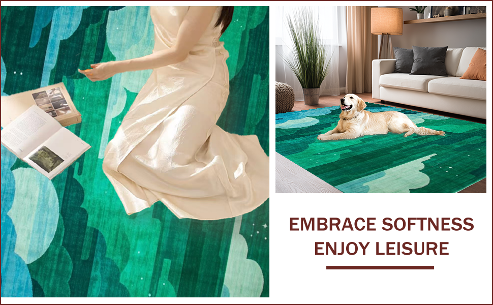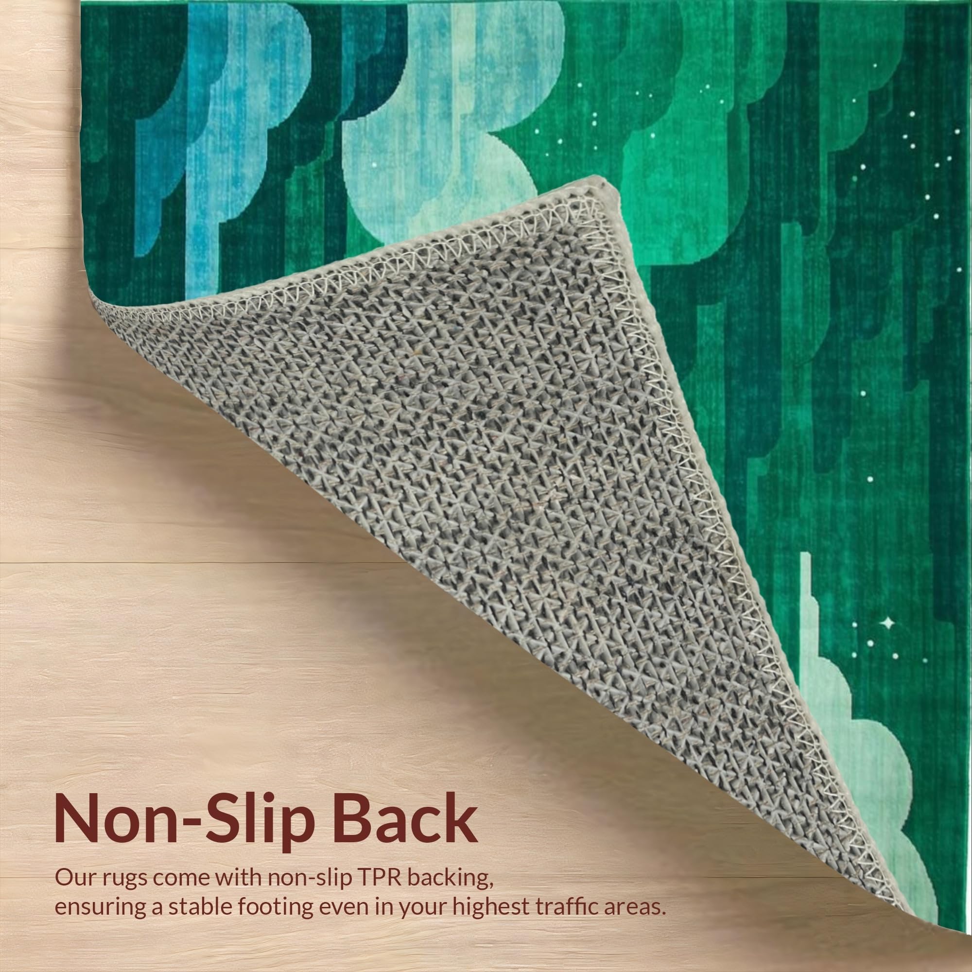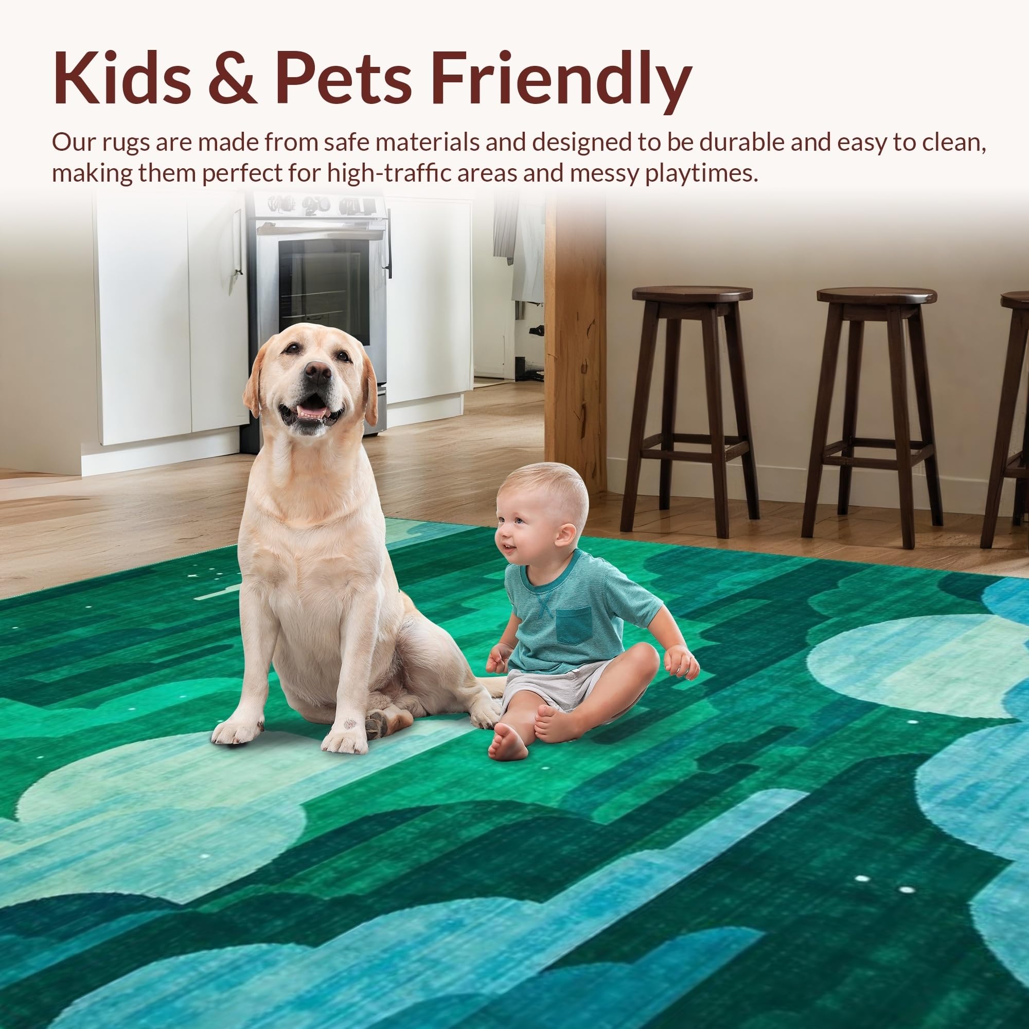 Ultra Soft Area Rug, Non Slip, Stain Resistant, Washable Area Rugs for Living Room, Bedroom, Colorful Playful Earth Motif Aesthetic(Green) Overview: